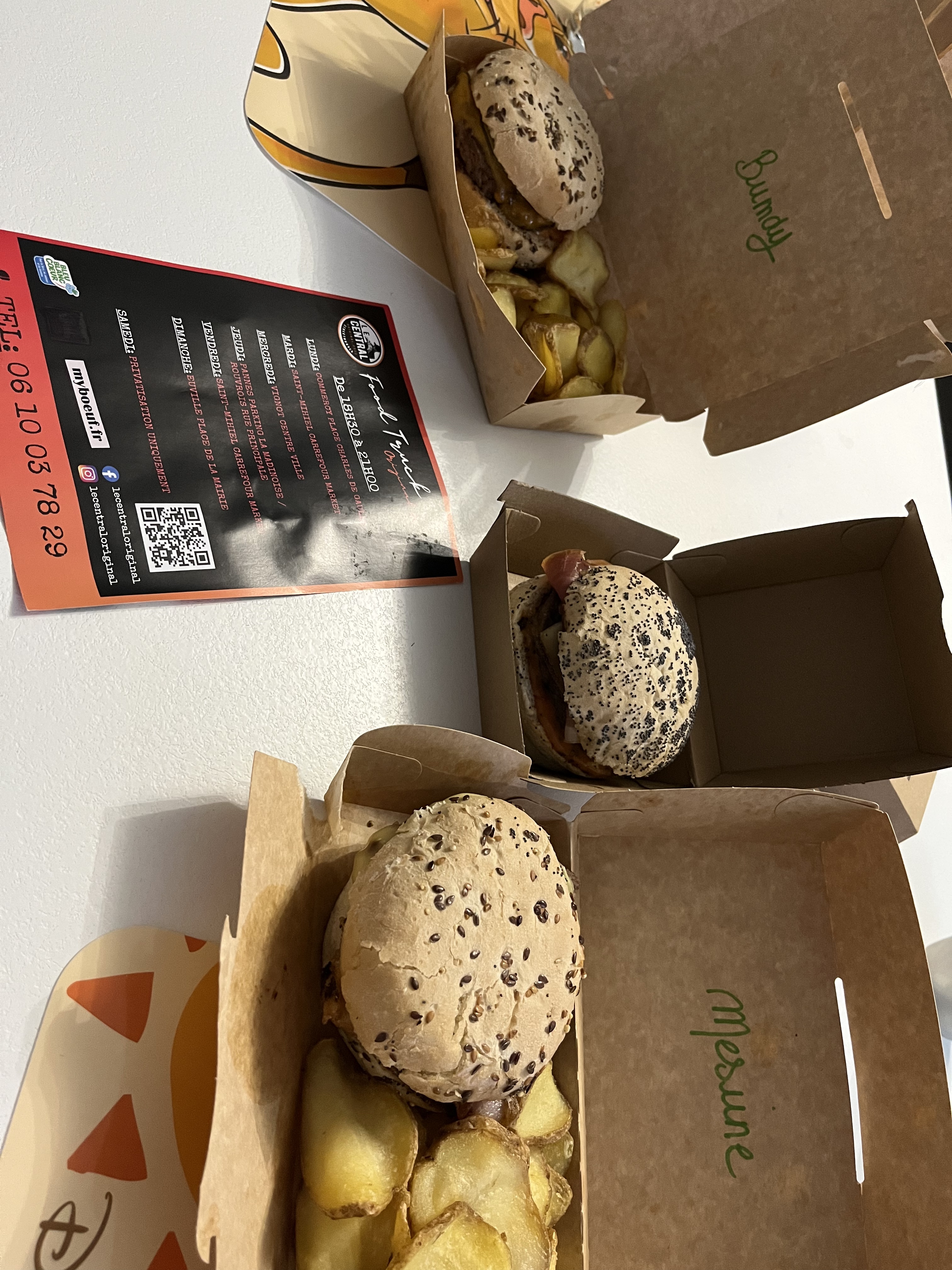Nous sommes venus sur Saint mihiel pour 1 semaine. Nous avons commandé ces hamburgers. Une tuerie 😍😍.C'est vraiment un délice gustatif tant par les ingrédients ( variés et originaux) que la qualité des aliments. Les pommes de terre en accompagnement étaient excellentes. Bravo pour votre originalité pour la confection de vos hamburgers.