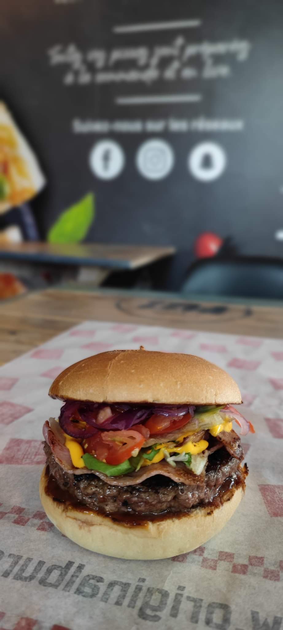 Quel plaisir d'avoir de bons burgers! Un vrai régal, une viande super bonne le pain est de qualité l'accompagnement frites est parfait. De quoi satisfaire les papilles des plus gourmands Tout est au top, de quoi passer un très bon moment en alternant avec vos pizzas qui sont tout aussi delicieuses Continuez, en plus d'etre une équipe super sympa , vous êtes des vrais pros du Burger !!! Je recommande !!!