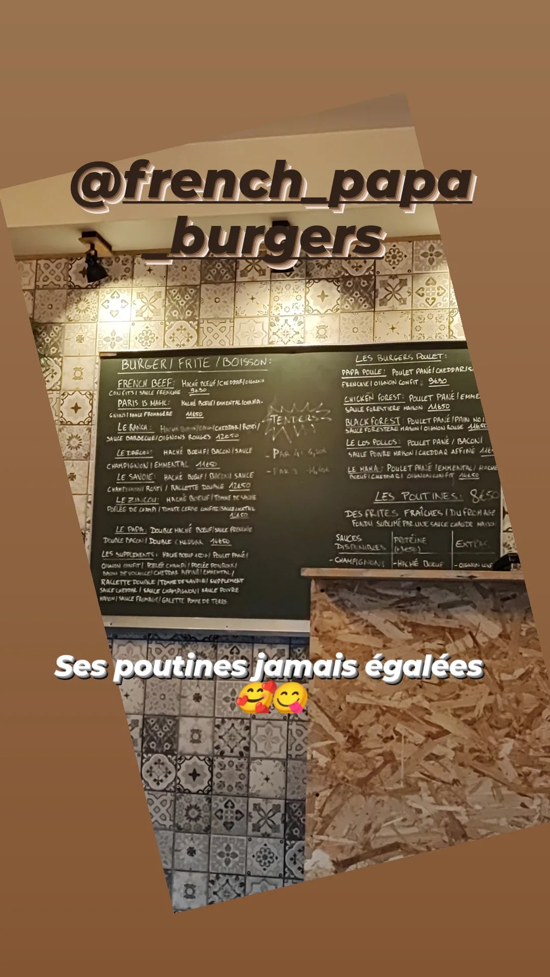 Malgré la qualité photo pas terrible je ne peux que vous sommer d'aller chez french papa. La poutine papapapapaaaaaaaaa c'est juste une bombe. Ne vous méprenez pas, tout est fait maison y compris les sauces et ca se ressent à la 1ere bouchée. Qualité des ingrédients et donc qualité du produit fini. Merci french papa ♡♡♡