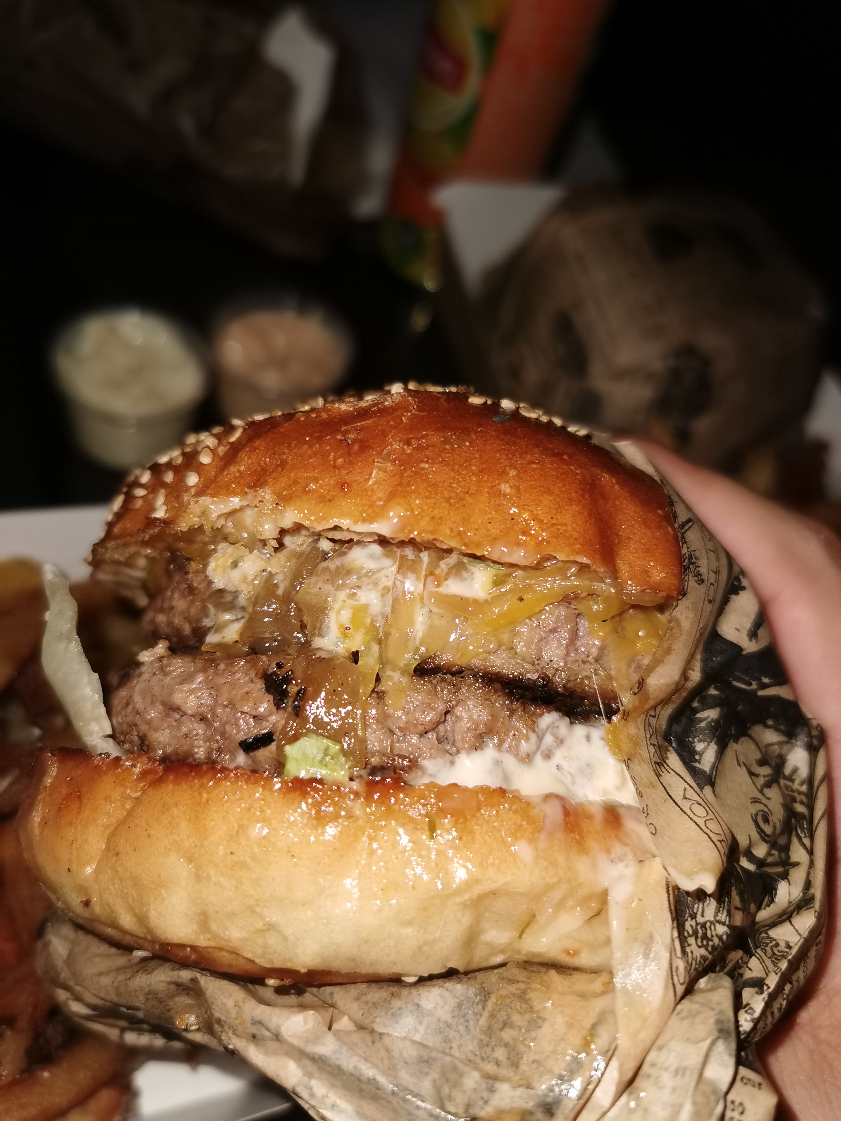 Merci pour le compliment 🙏 et sinon Nos Burger sont faits à la commande vous pouvez nous spécifier si vous voulez moins de sauce😉On vous le fera avec plaisir #5starsgoal