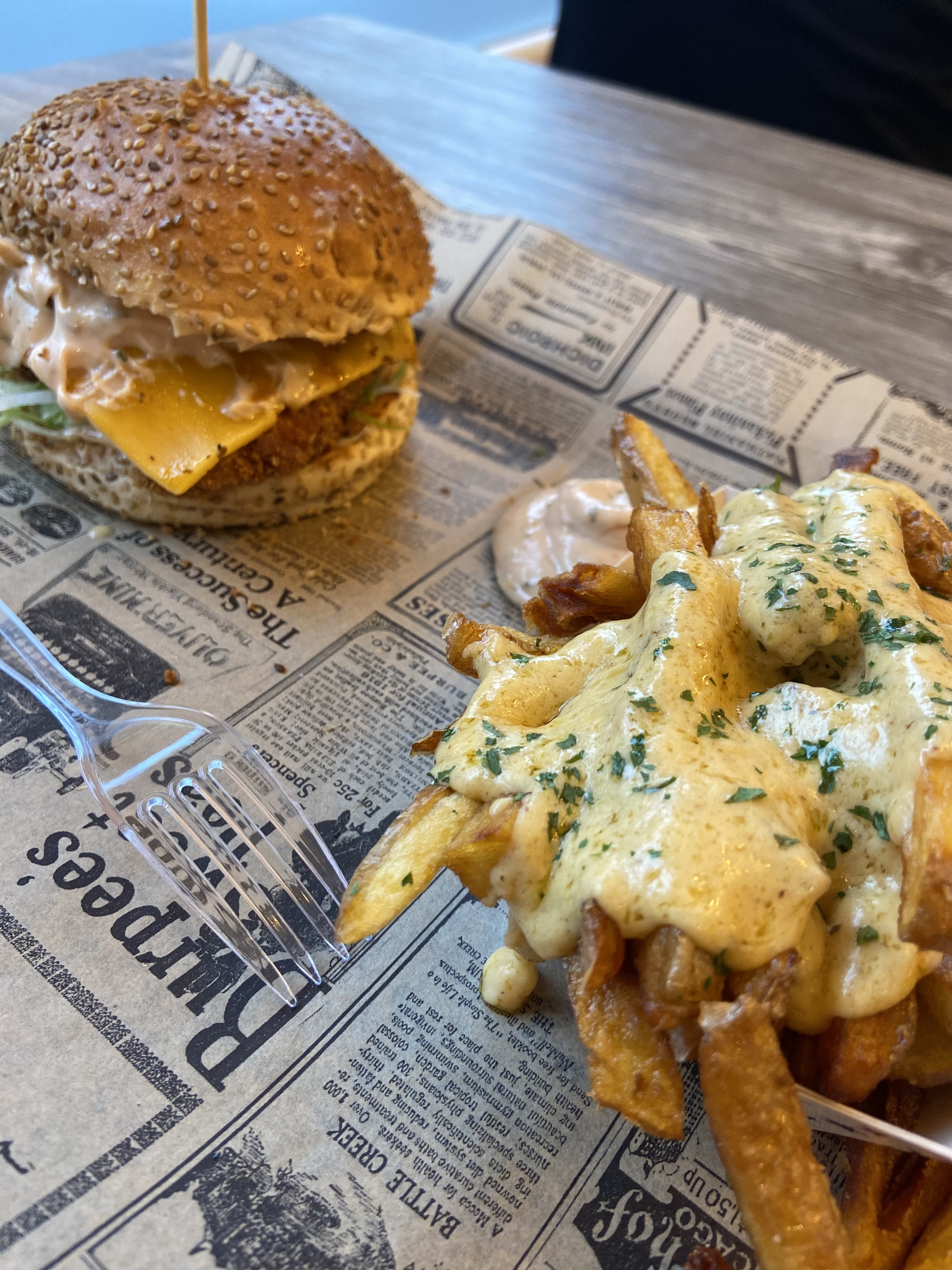Burger végé très bon, c'est rare, les autres burgers également très bons. Vraies frites, pas celles du McDo. Très bonne surprise. Bravo!