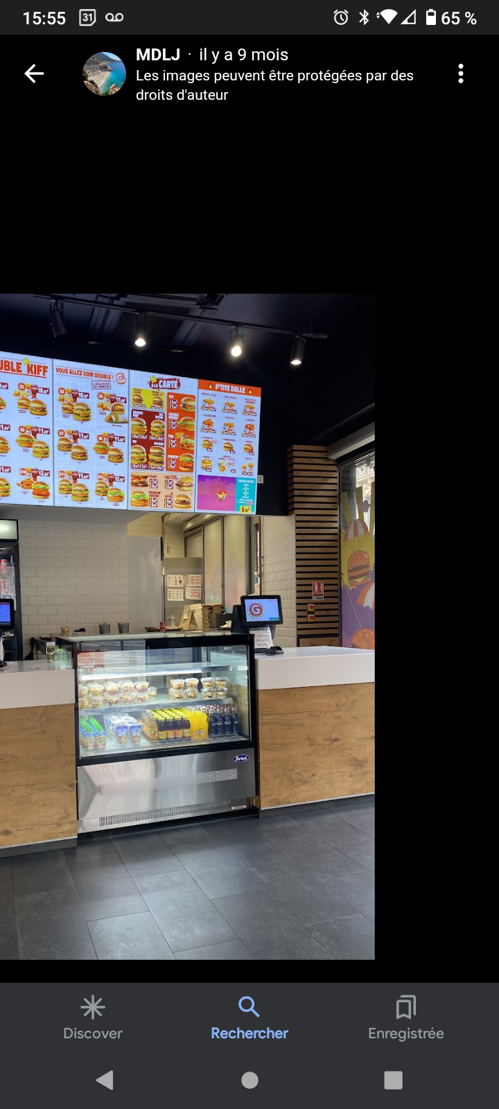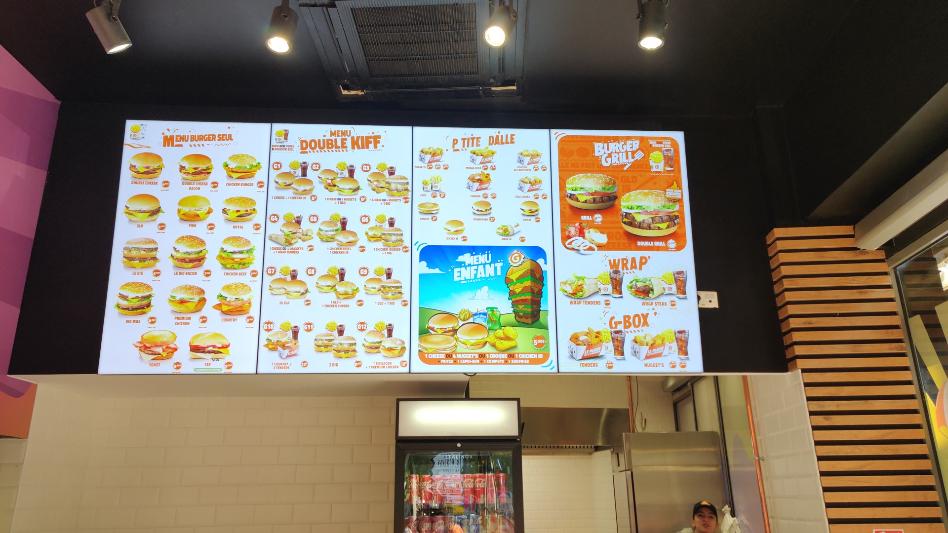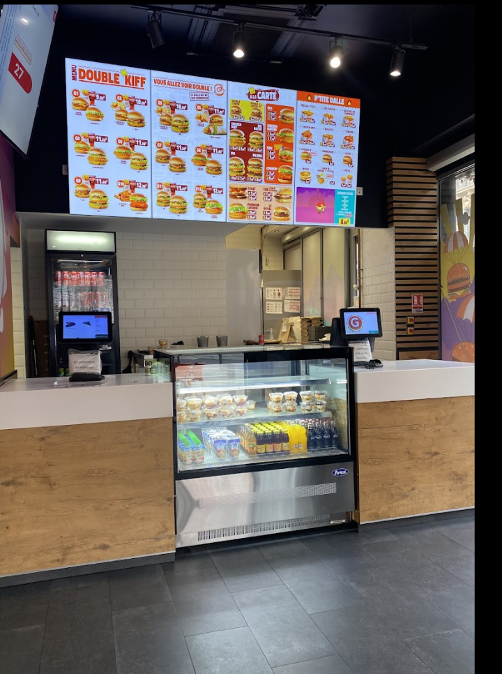 Très décevant. Restaurant très sale, à l'abandon, poubelles pleines, chaleur insupportable car les portes du RC sont grandes ouvertes et la clim. de la salle haute (pour nains) fuit et est mal positionnée. 1 menu d'une complexité incroyable et seulement 2 bornes de commande ! Les frites sont les moins bonnes que j’ai jamais mangées, le pain des (petits) burgers est archi-blanc, caoutchouteux, 100 % gluten industriel ! L'équivalent du Mac Do (qui au passage est considéré comme 1 fast food pour clochards aux US) en Halal, en vraiment moins bien. A côté, Burger King est 1 fast food gastronomique ! Seuls points positifs, les boissons sont des cannettes, (par contre, ni glaçons ni verre d’eau) et les serviettes en papier sont de qualité, mais il semble que ce soit ici une exception.