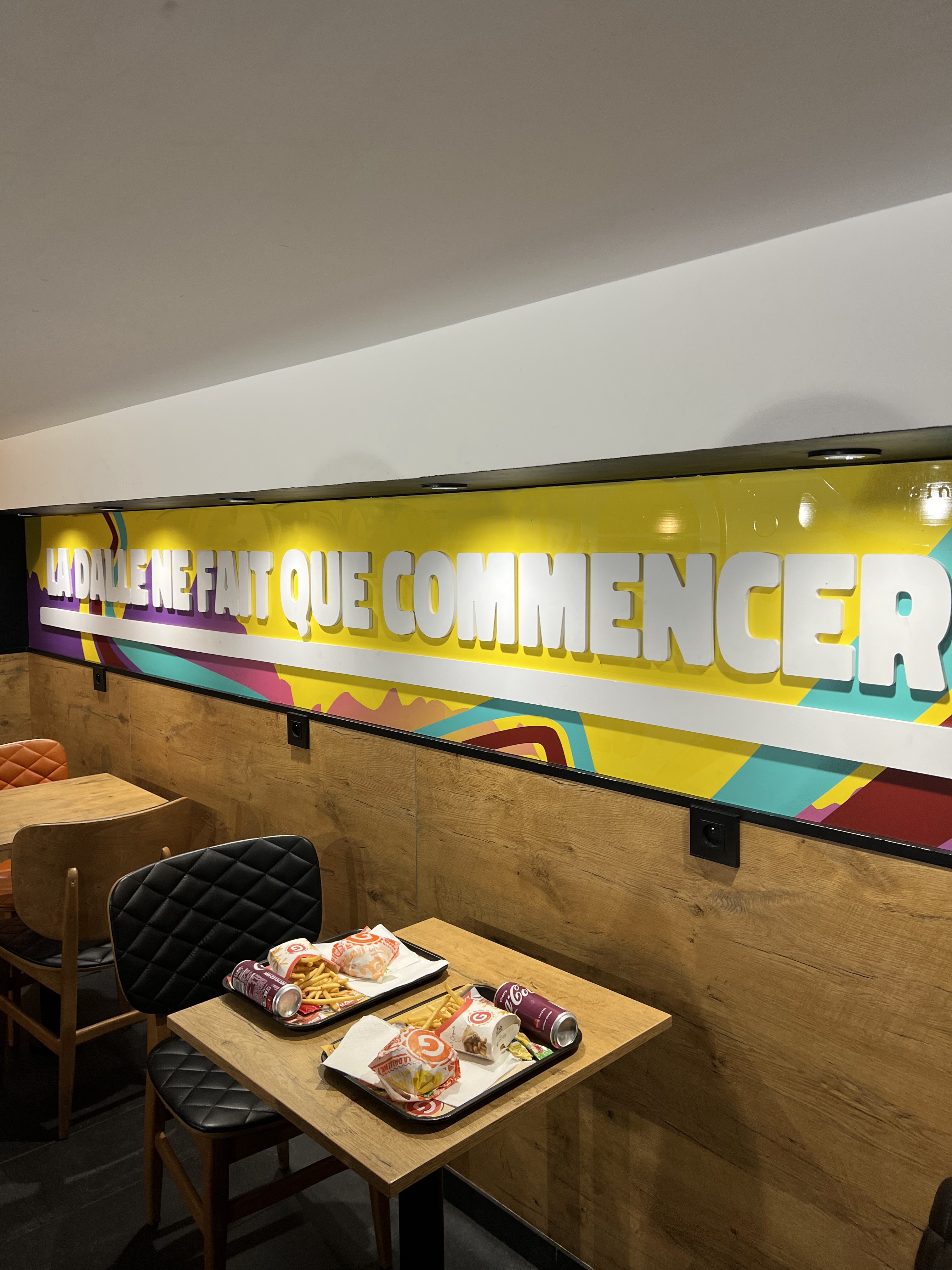 Un fast food parmi d’autres.. pas de la grande cuisine, du plastique sous la dent. Cela dit, le resto est fréquenté par des racailles sous ballons (protoxyde d’azote)