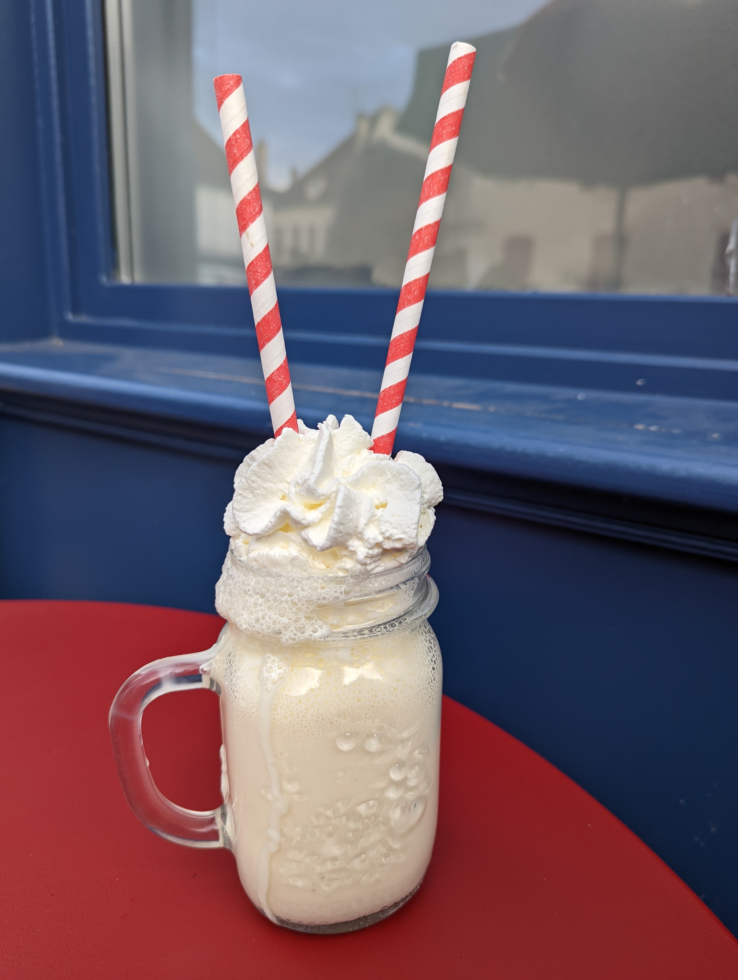 Bonjour merci pour votre visite et que malgré tout cela vous ai plu. Pour répondre aux points négatifs de base ce ne sont pas des assiettes mais des plateaux, nous ne pensions pas que les clients allaient manger leurs burgers a la fourchette mais juste le couper en deux par ex comme cela ce fait dans beaucoup d enseignes de meme type qui utilise un plateau metal et une feuille papier burger au fond. Du coup peut etre que les plateaux ne sont pas adéquats pour ça. Pour ce qui est du milkshake vous étiez dans les 1ers a qui nous en avons servi ( c était le 1er jour )il y a l équivalent de 3 boules de glaces dans le verre donc une assez bonne quantité mais vu la chaleur nous les passons moins longtemps au blender maintenant car effectivement nous avons remarqué que cela fond assez vite. Le principal reste que vous ayez trouver le burger et les frites bonnes :-). A bientôt ☺️