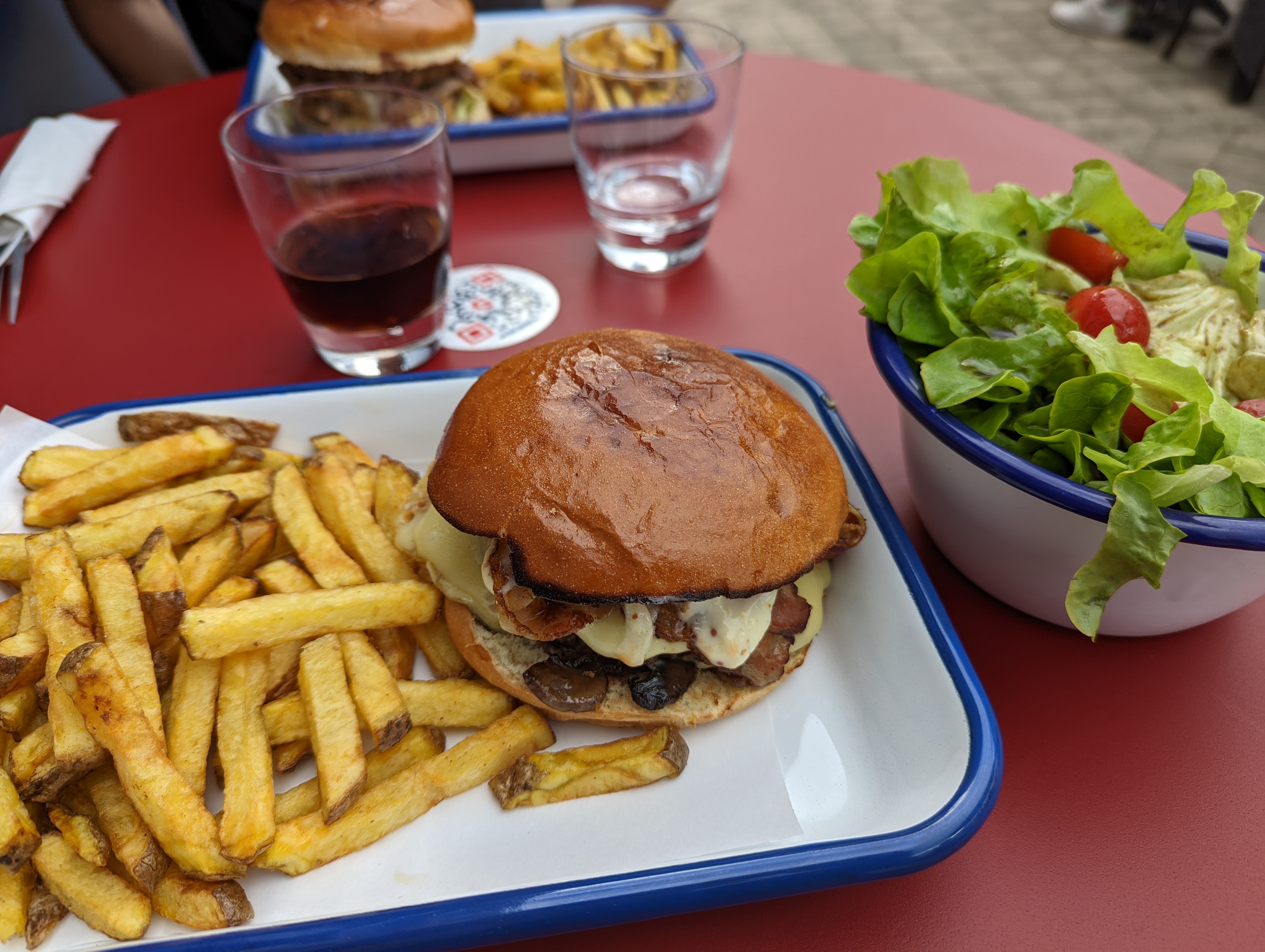 Très bon Hamburger et frites faites maison. Terrasse agréable qui donne sur une jolie place. Le personnel jeune et très professionnel. Je recommande.