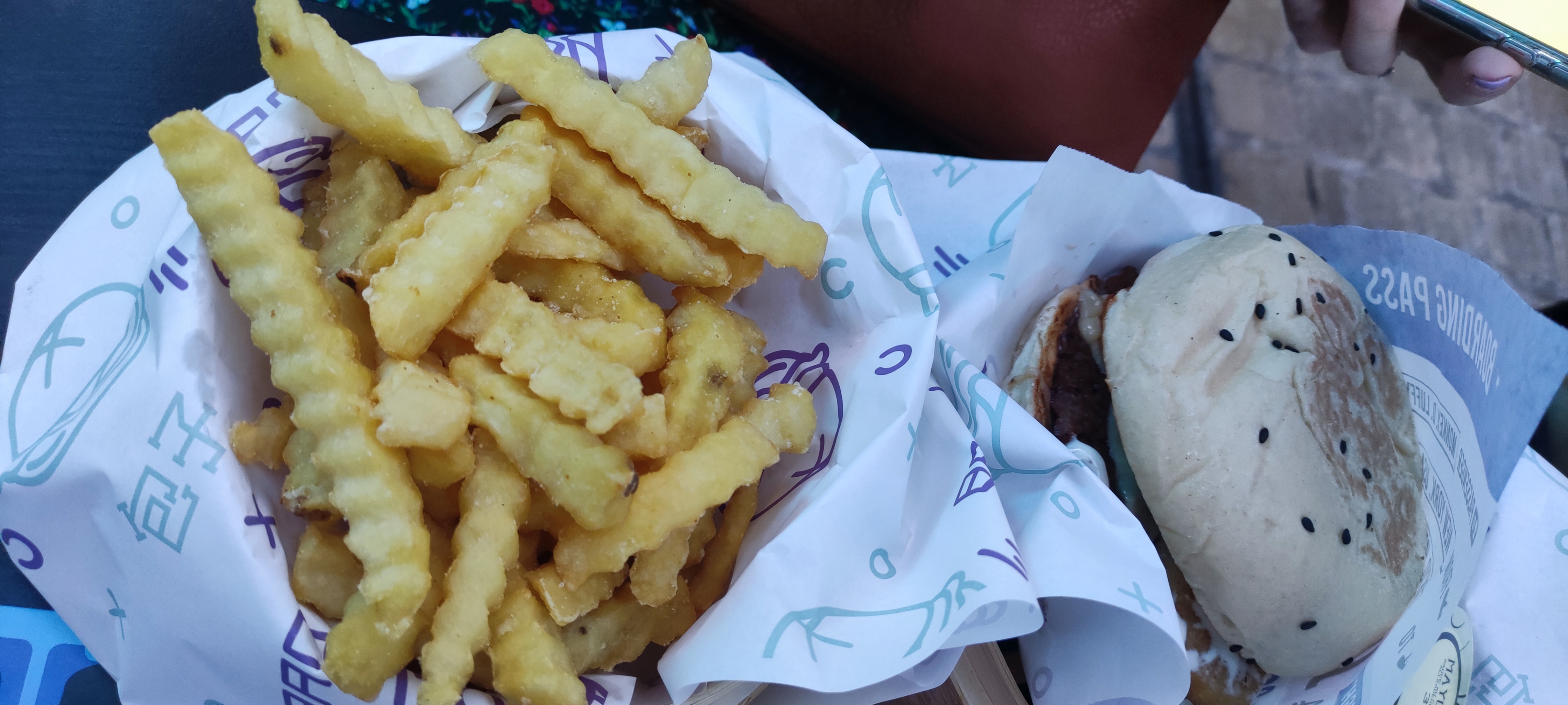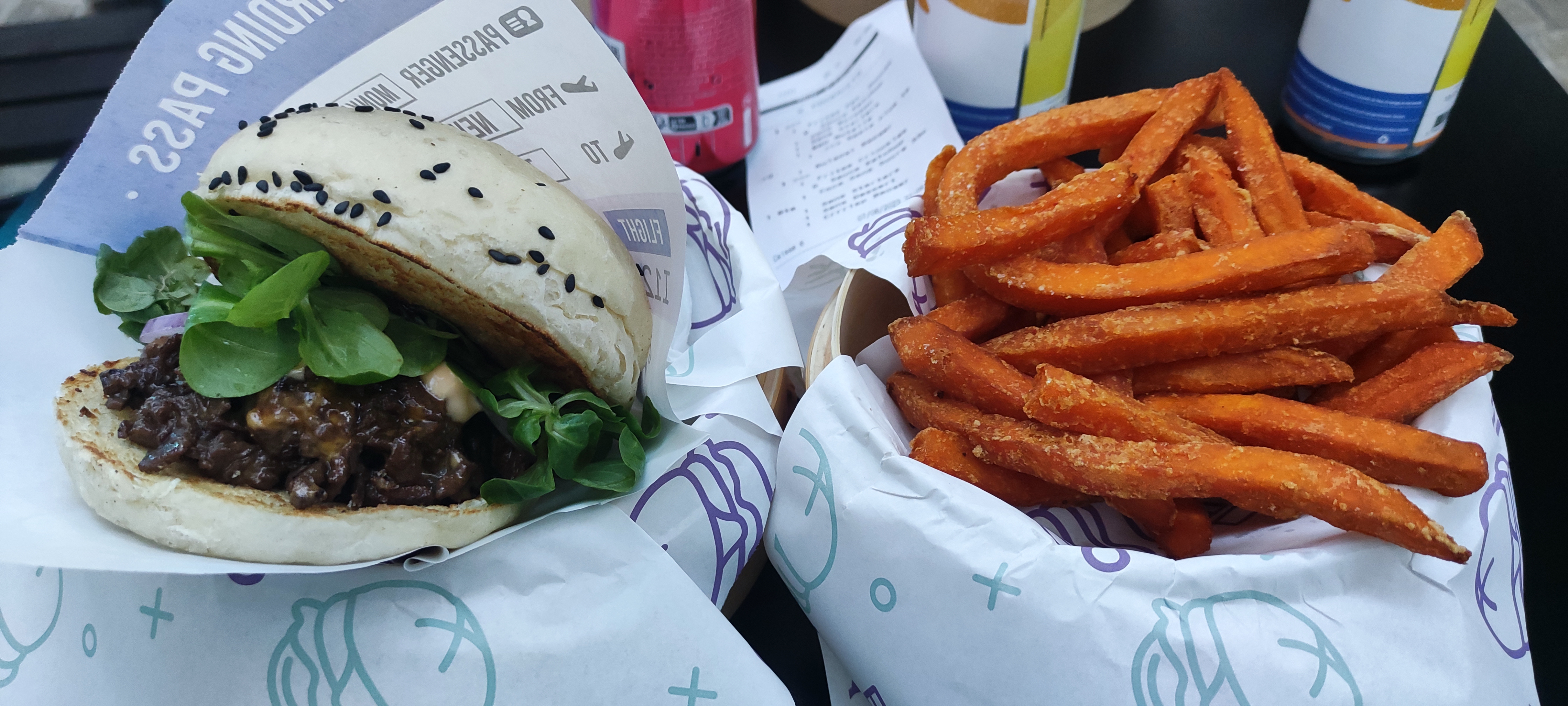 4€ pour une poignée de frites de patates douces pas salées et sans goût + une canette de coca a 2€. Très cher pour la quantité… De plus, les burgers ne correspondent pas à l’image vu sur internet, dommage également pour le prix.