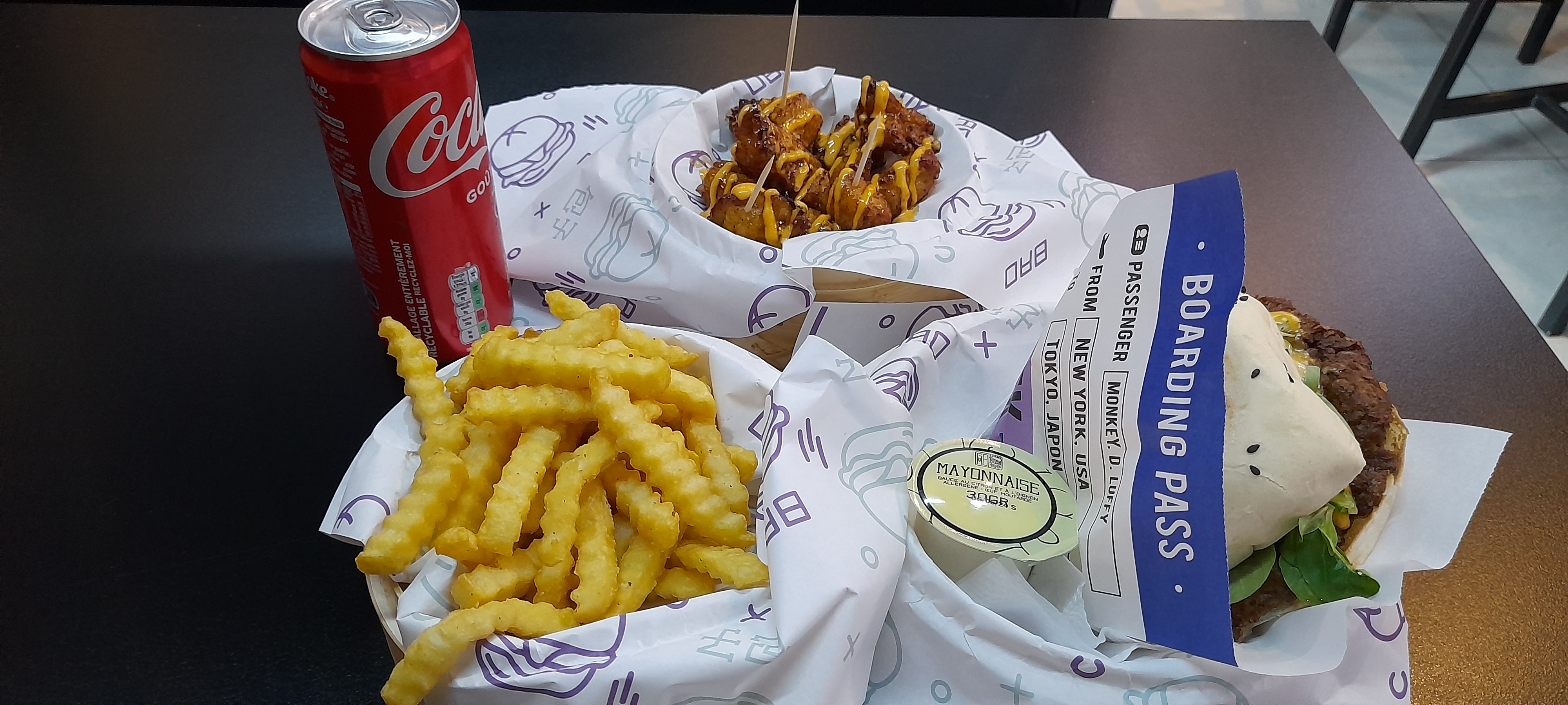 J’y suis aller parce que la déco style One piece est sympa. J’ai pris un Burger que j’ai commandée au borne j’ai choisi un truc au bœuf sans oignons. Une fois que j’ai reçu ma commande j’ai été étonné de trouver un Burger très petit pour le prix c’est étonnant quand même. Et surtout que sur les ingrédients il n’y figurais pas de bacon et au final je me retrouve avec du bacon dans mon Burger je ne mange pas de porc malheureusement j’ai du laisser mon sandwich et manger que les frites. Et puis à part ketchup & mayonnaise les autres sauce sont payant alors qu’on paye un Burger à 14€ quand même au final avec boisson 3€ de plus et sauce on fini à un menu Burger à 18€ bref déçu.