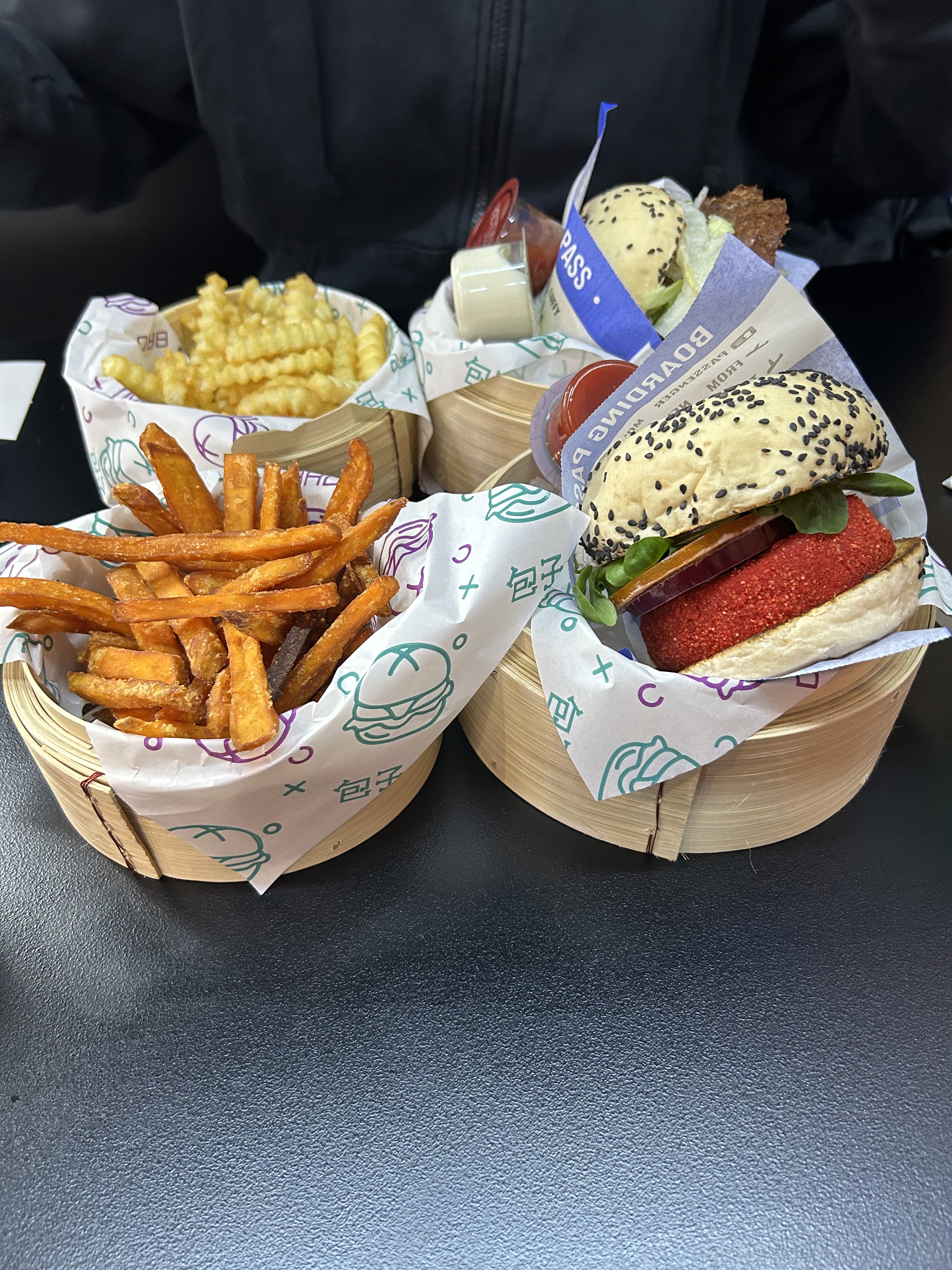 Personnel souriant et sympathique. Des recettes sympas et bonnes même pour les végétariens. Le pain bao est ultra moelleux. Les frites sont un peu trop grasses et salées. Mais je recommande.