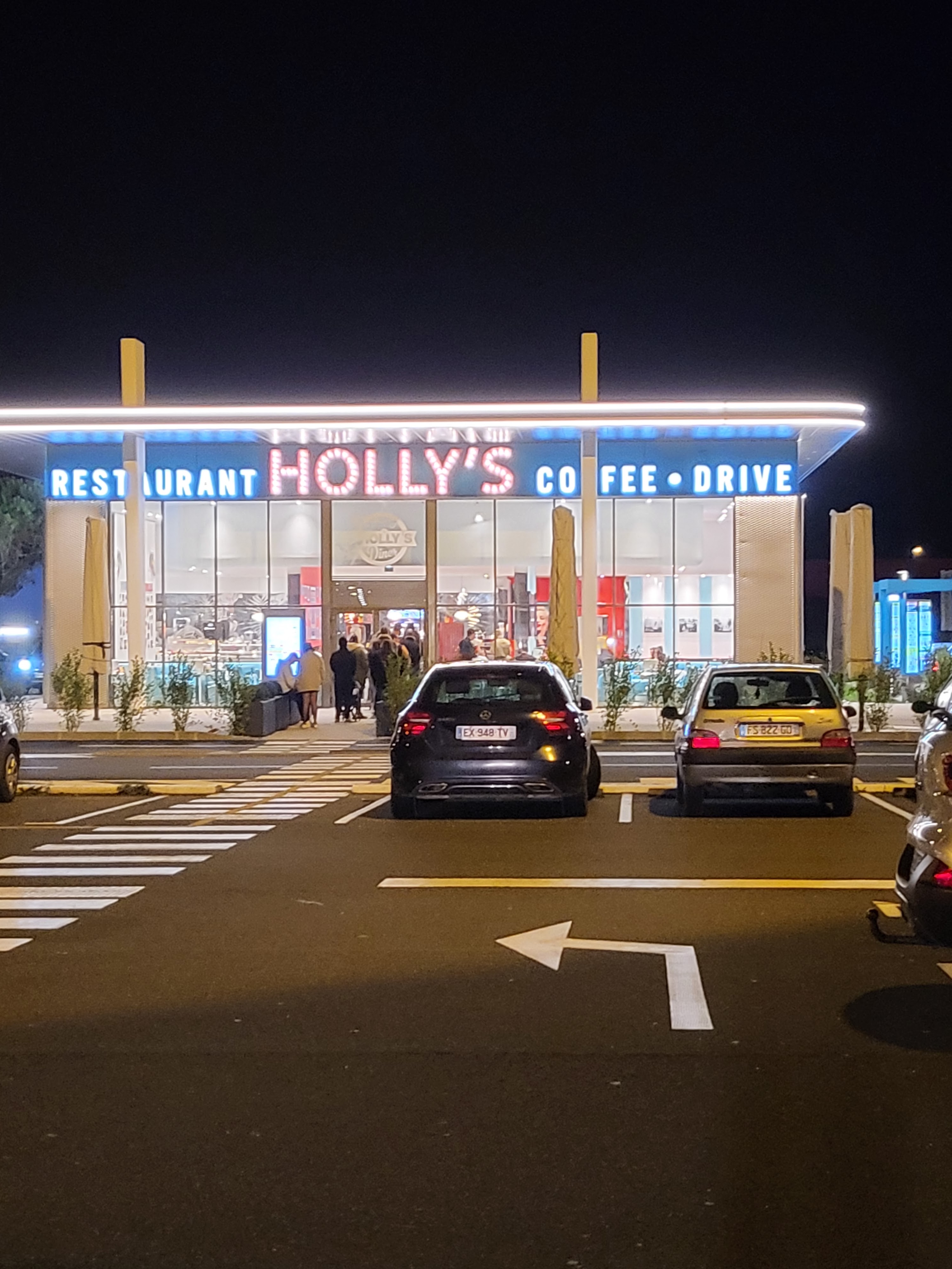 Nous venons de passer un excellent moment au Holly’s Coffe Drive ! Super équipe avec un patron au top, super arrangeant car nous voulions boire nos apéros dehors pour profiter de la terrasse avant de manger ! Commande de repas faite très rapidement, claire et avec les conseils de la serveuse Kelly sur la carte, qui nous a aidé à faire notre choix tellement la carte propose divers choix qui donnaient tous envie ! Le service a été super ! Kelly était toujours souriante, avenante, aux petits soins pour nous ! Nous avons été ravie de notre soirée ! Les autres serveuses sont toutes aussi souriante et aimable ! Nous ne sommes que de passage en vacances et nous regrettons de ne pas avoir un Holly’s Coffee Diner dans notre ville (La Fleche 72) Mais nous reviendrons avec grand plaisir quand nous serons de retour dans la région ! Merci à toute l’équipe très professionnelles et adorable !