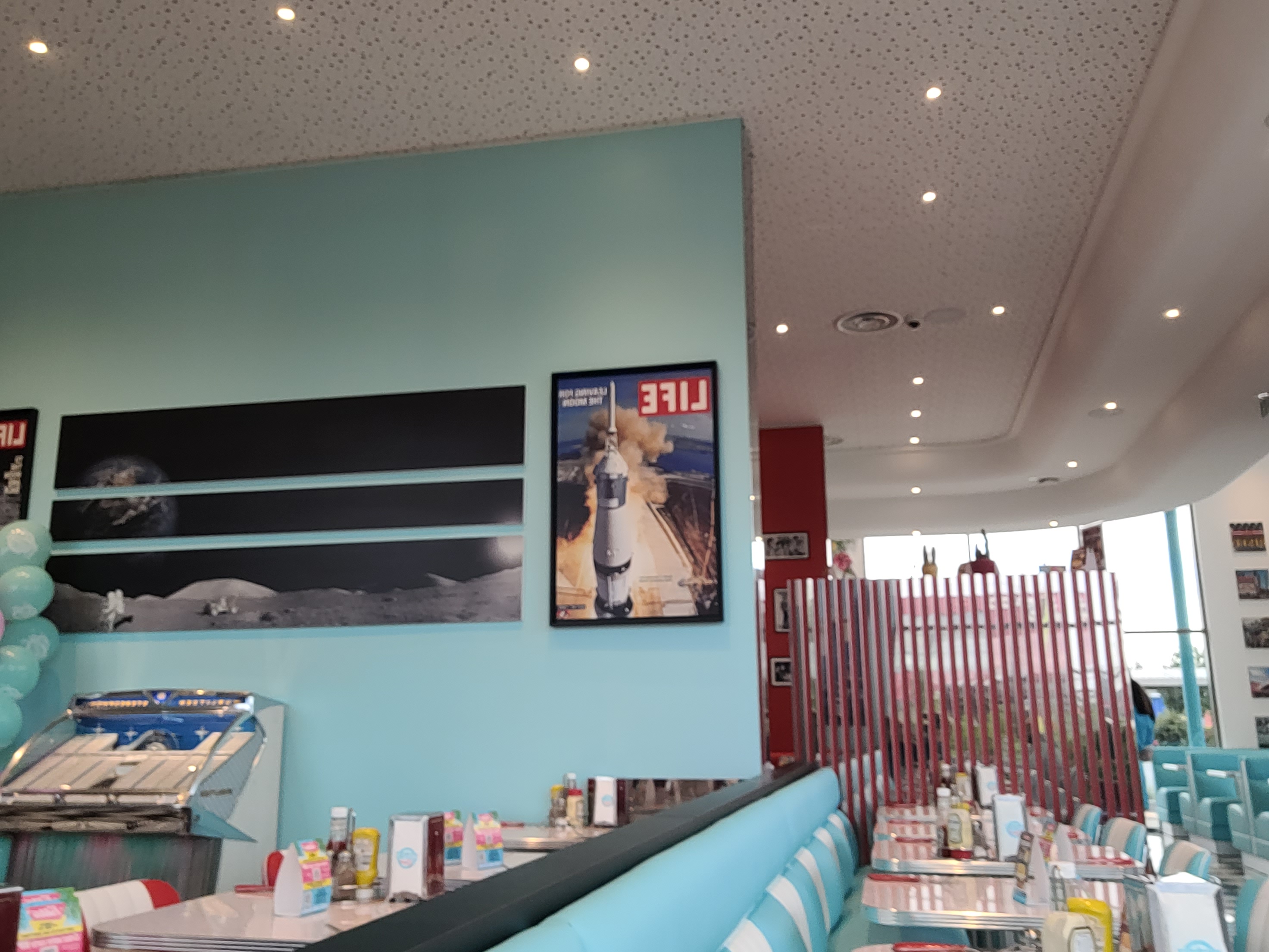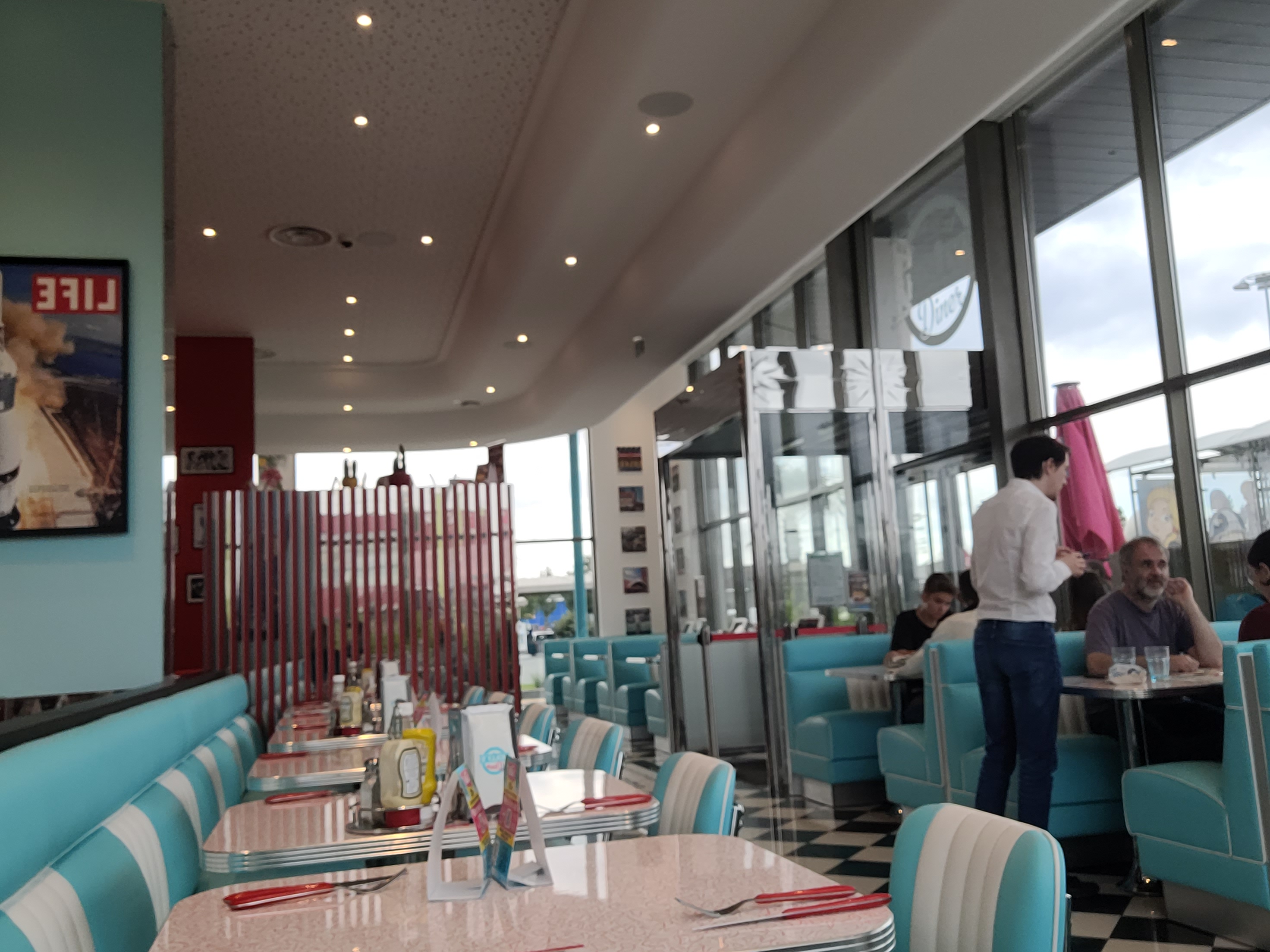 Le cadre et concept du restaurant : Les années 50 américaines Le personnel très sympathique et vous trouverez au menu : Burger, frites, steak House, Coffe shop, bière, glace, sundae... On y mange bien et c'est copieux.