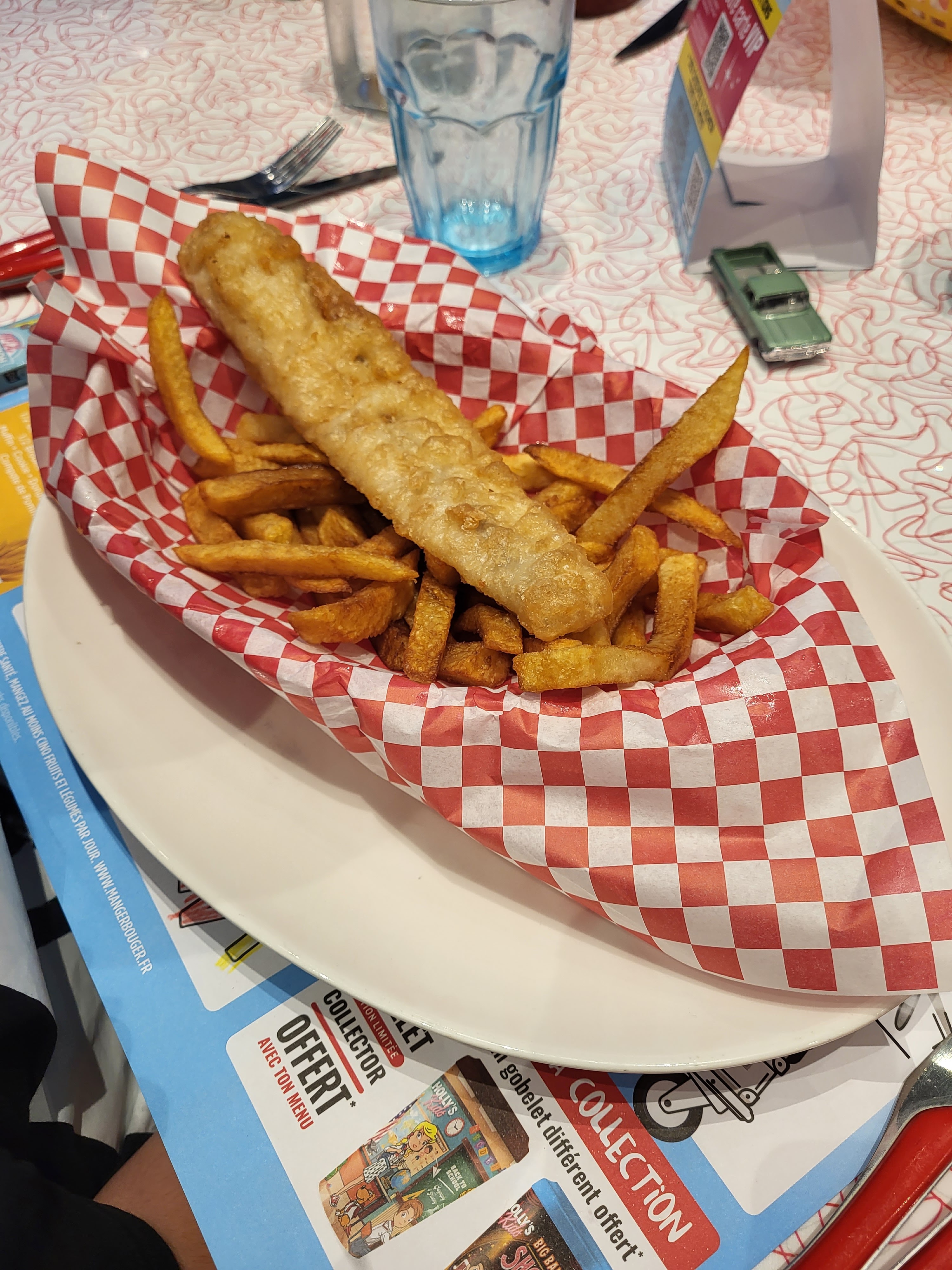 Nous avons était mon mari et moi avec nos deux enfants nous avons était placé rapidement et la carte directement et la une serveuse arrive avec sa tablette et nous demande si on on voulait des boissons et elle est revenu avec les boissons et nous a demandé si on avait choisi bien que non car pas eu le temps du coup elle prends les commandes des enfants je lui dis menu 6,90€ enfants en leur disant ce qu'il peuvent commandé, moi je crois que tout est dans le menu donc je dis rien après elle revient avec les assiettes des enfants, j'ai commandé un menu a 11,90€ fish and chips avec dessert muffin avec une boule de glace et mon mari a commandé un menu à 14,90€ etil prend une entrée salade de chèvre après plat cheese burger avec frites elle lui demande si il veut un deux steak haché et lui dis oui avec supplément lard (1,5€)et en dessert cookies avec une boule de glace . Résultats addition 50€ alors je trouve qu'il abuse pour ce que l'on à commandé alors que j'avais calculé après être parti 42,10€ donc je comprends pas . Je ne reviendrai plus c'est dommage car au niveau qualité c'était bien.