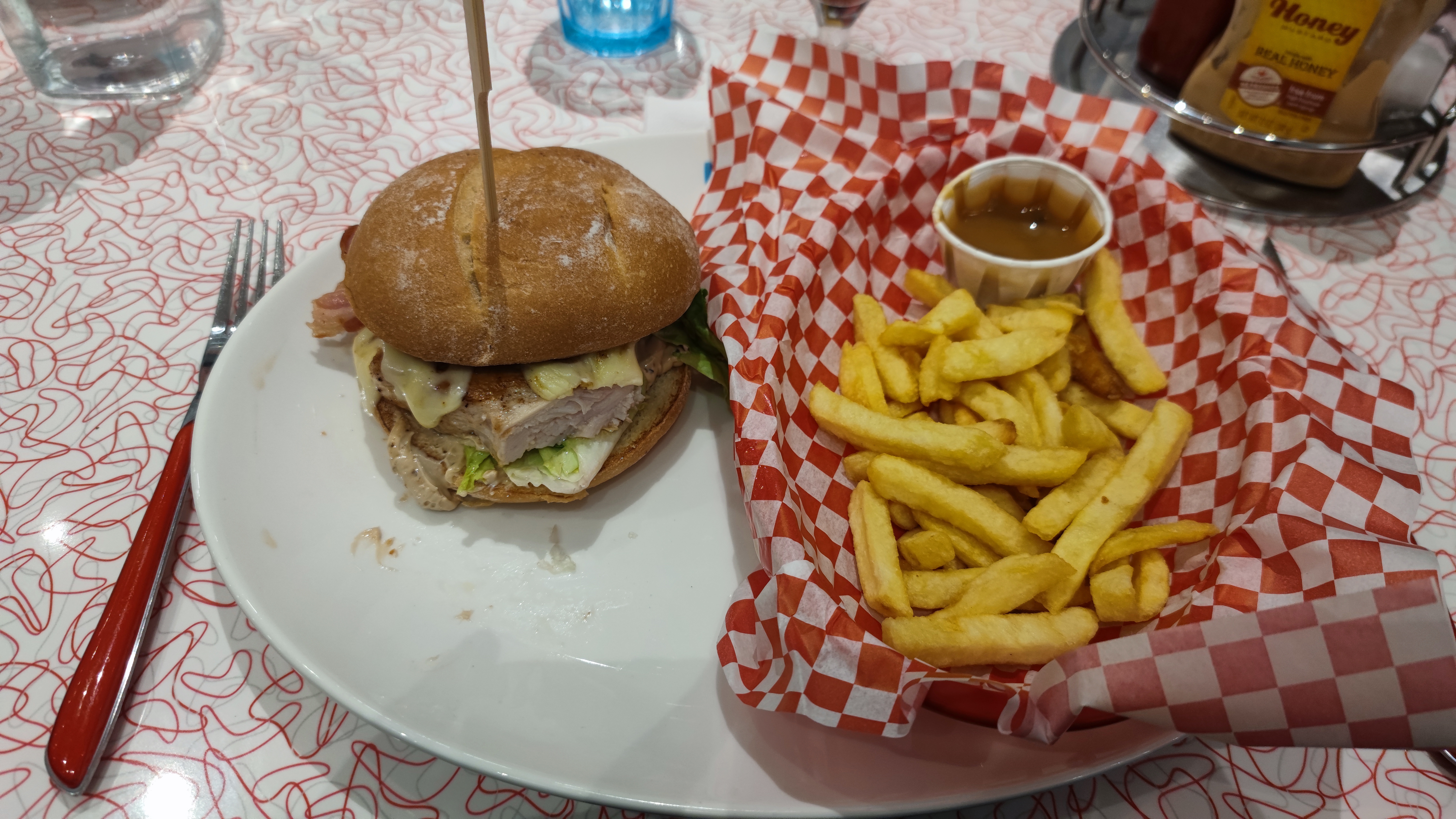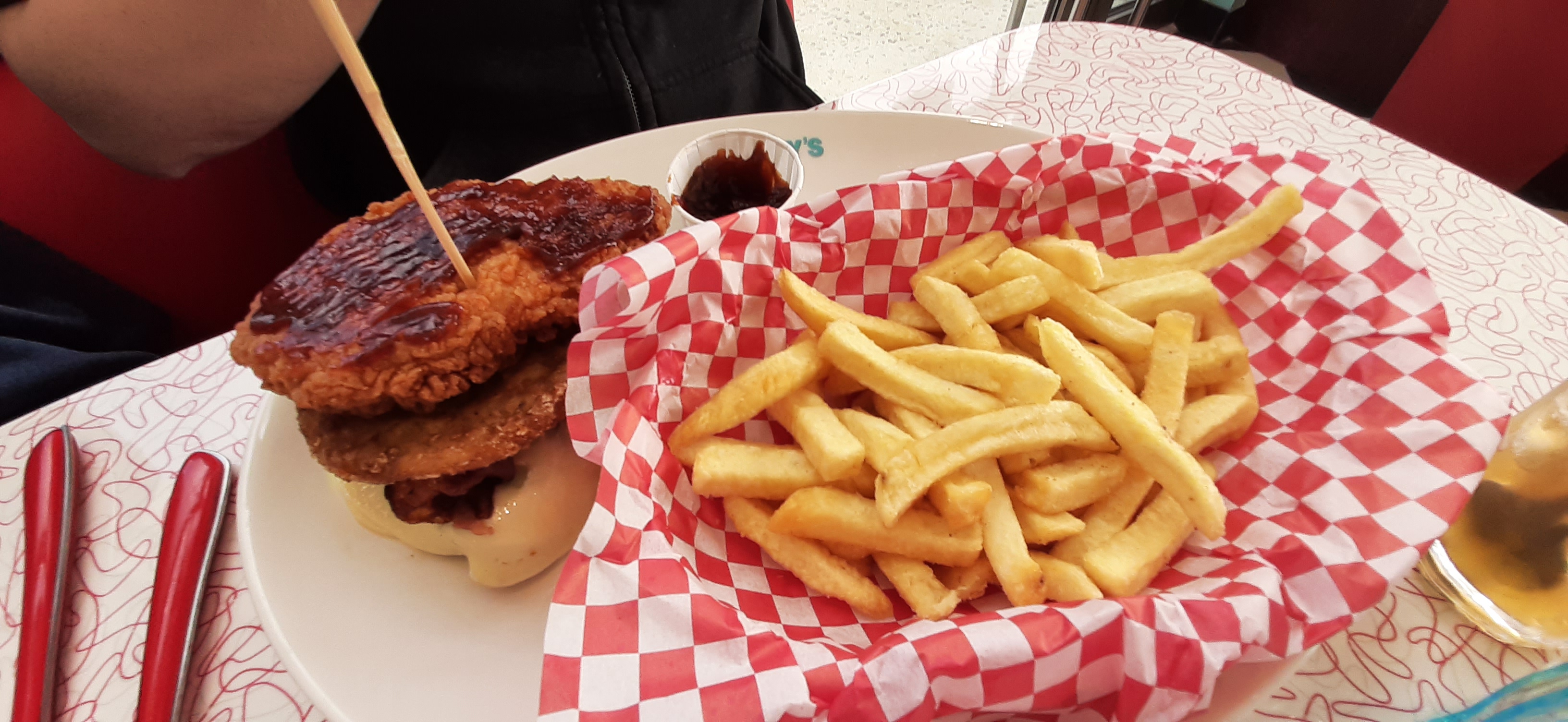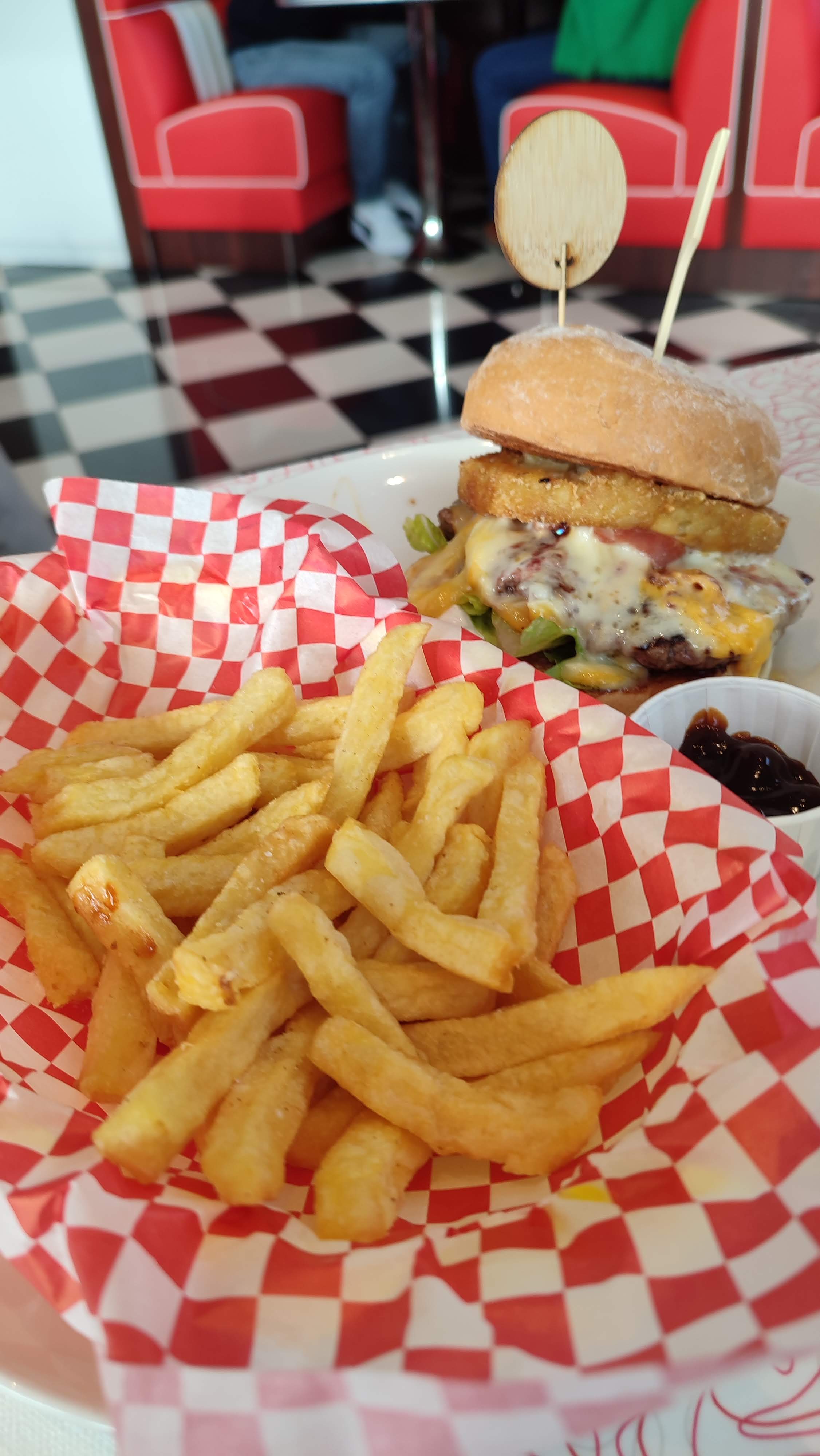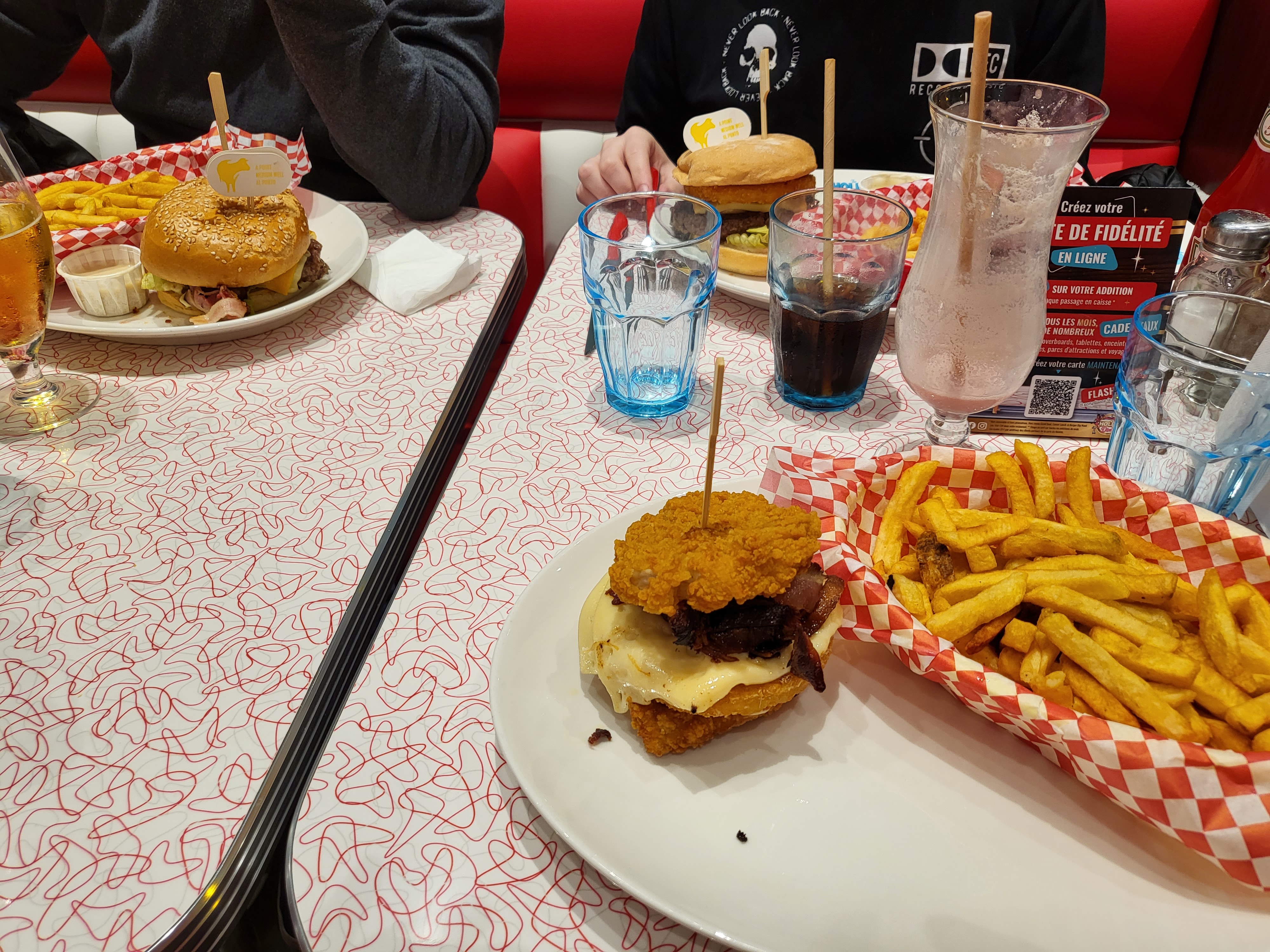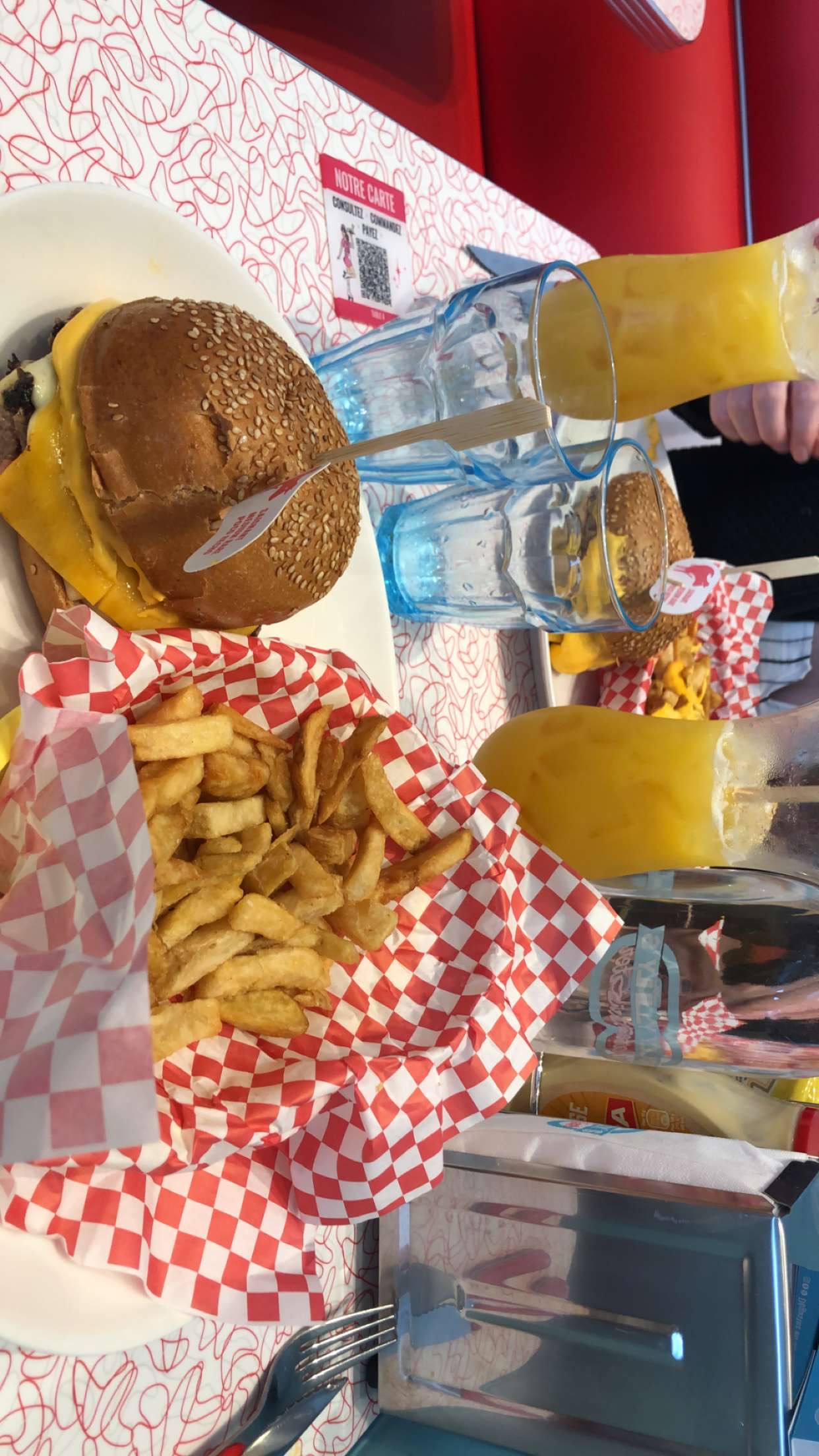 Bon restau style diner, les burgers sont très bons, la carte suffisamment fournie pour tout type de goûts, et on y mange largement à sa faim. À savoir que créer sa carte de fidélité se fait via un QR code et permet de payer moins cher des le premier jour ! Lionel possède un swag sans égal et nous a conseillé dans nos choix de burger 👌 je recommande sans problème Seul petit bémol, le manque de musique type 60's qui rajouterais un grand plus a l'ambiance du restaurant !