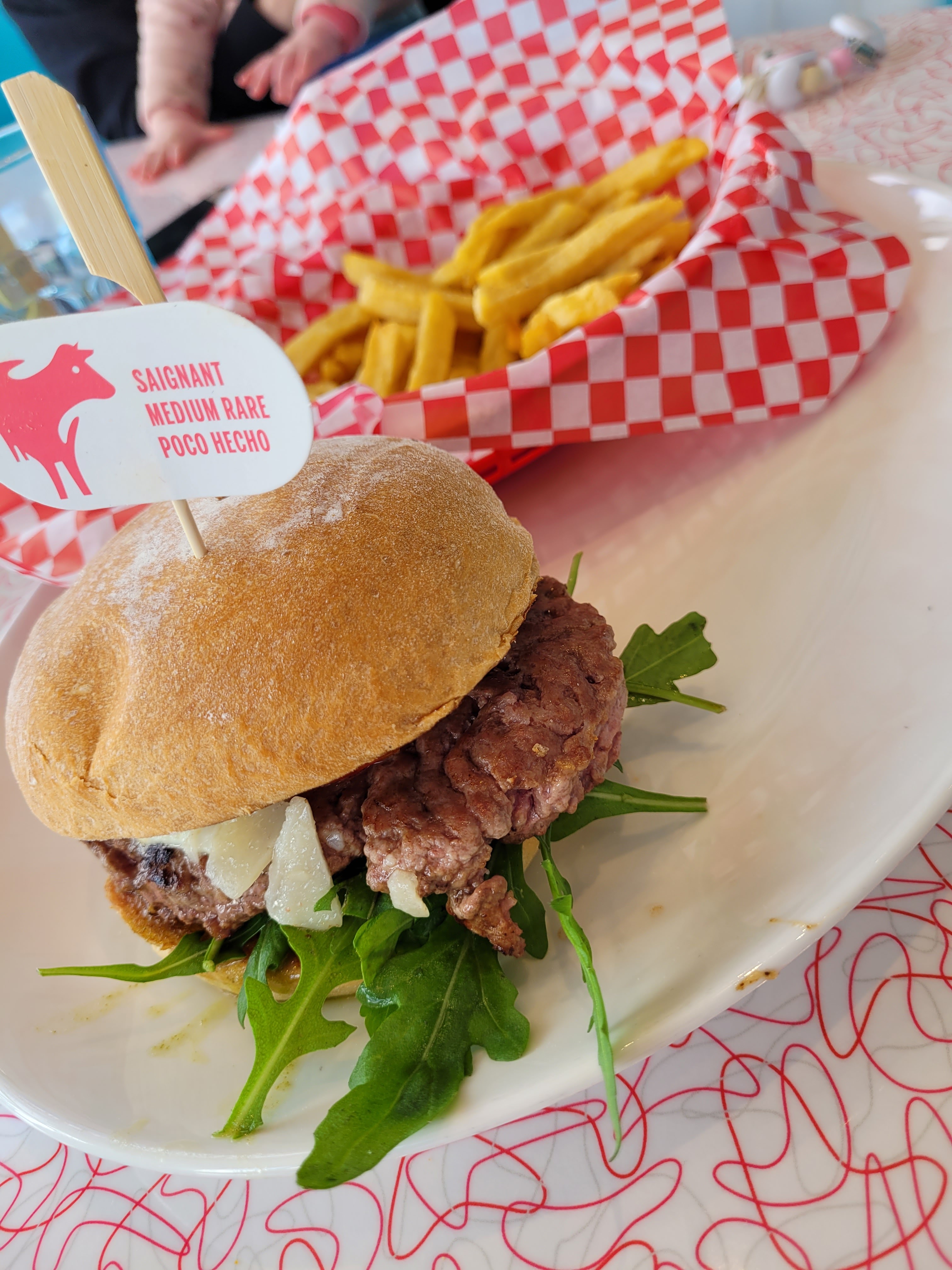 Bon restaurant avec une belle décoration. Nous avons dû faire la queue pour attendre une place, d'autant plus avec une poussette car la disposition des tables n'est pas avantageuse. Les burger étaient copieux et bons. Petit point négatif sur le cookie choco noisette qui n'était pas fameux. Les frites sont à volonté. Une carte de fidélité est disponible pour avoir des réductions. Nous y retournerons sans hésiter pour goûter d'autres choses de la carte