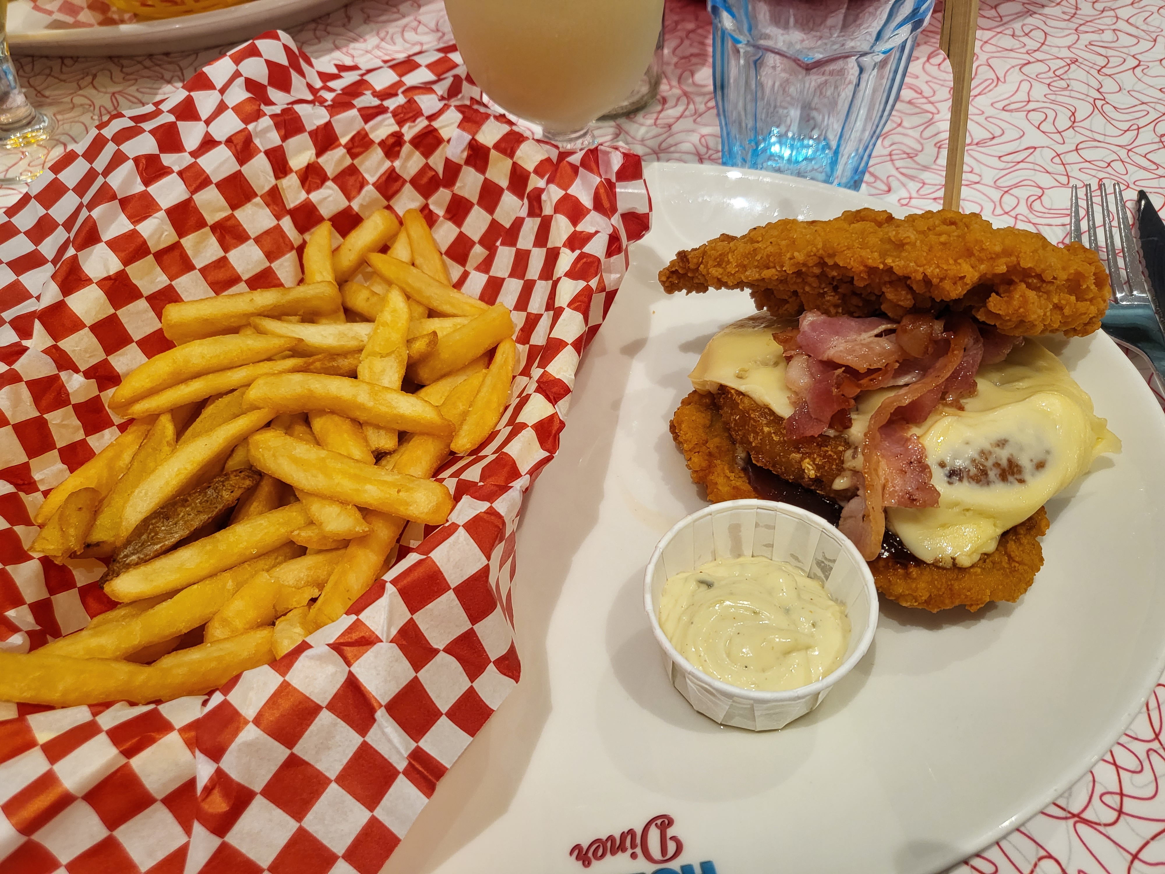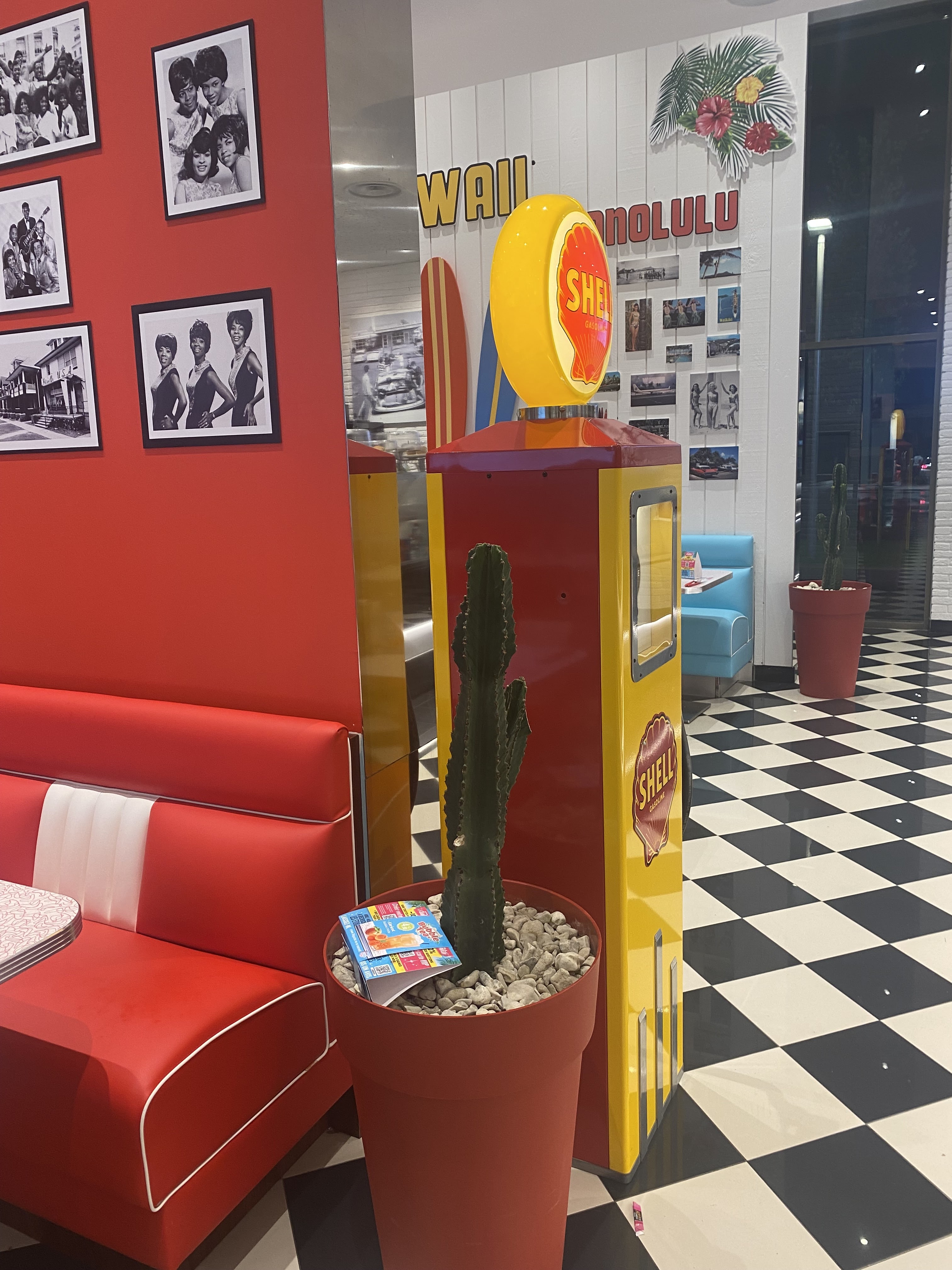 Serveurs super gentil et attentionnée. Un décors génial avec les tenues des employés accordé ! Un service très rapide malgré un monde fou ! Et un Burger juste excellent !! Je recommande totalement et je reviendrai avec grand plaisir vu le choix sur la carte !! Un grand merci
