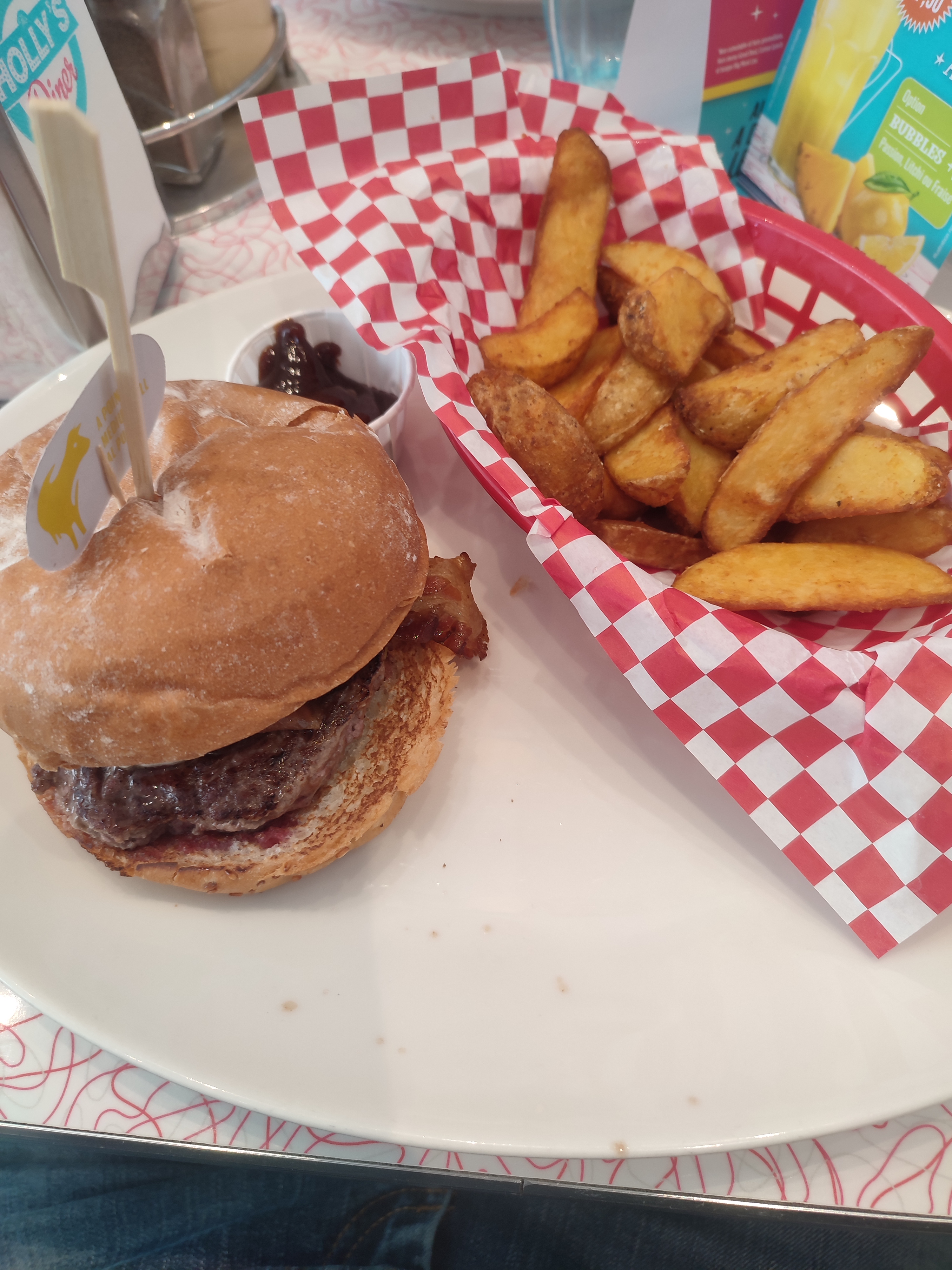 Je suis venu tester pour la première fois Holly's Dinner, j'ai été satisfait du burger que j'y ai dégusté. Mention spéciale à la serveuse Amel qui a été accueillante et souriante pour nous servir. Le service est rapide et les frites sont à volonté.