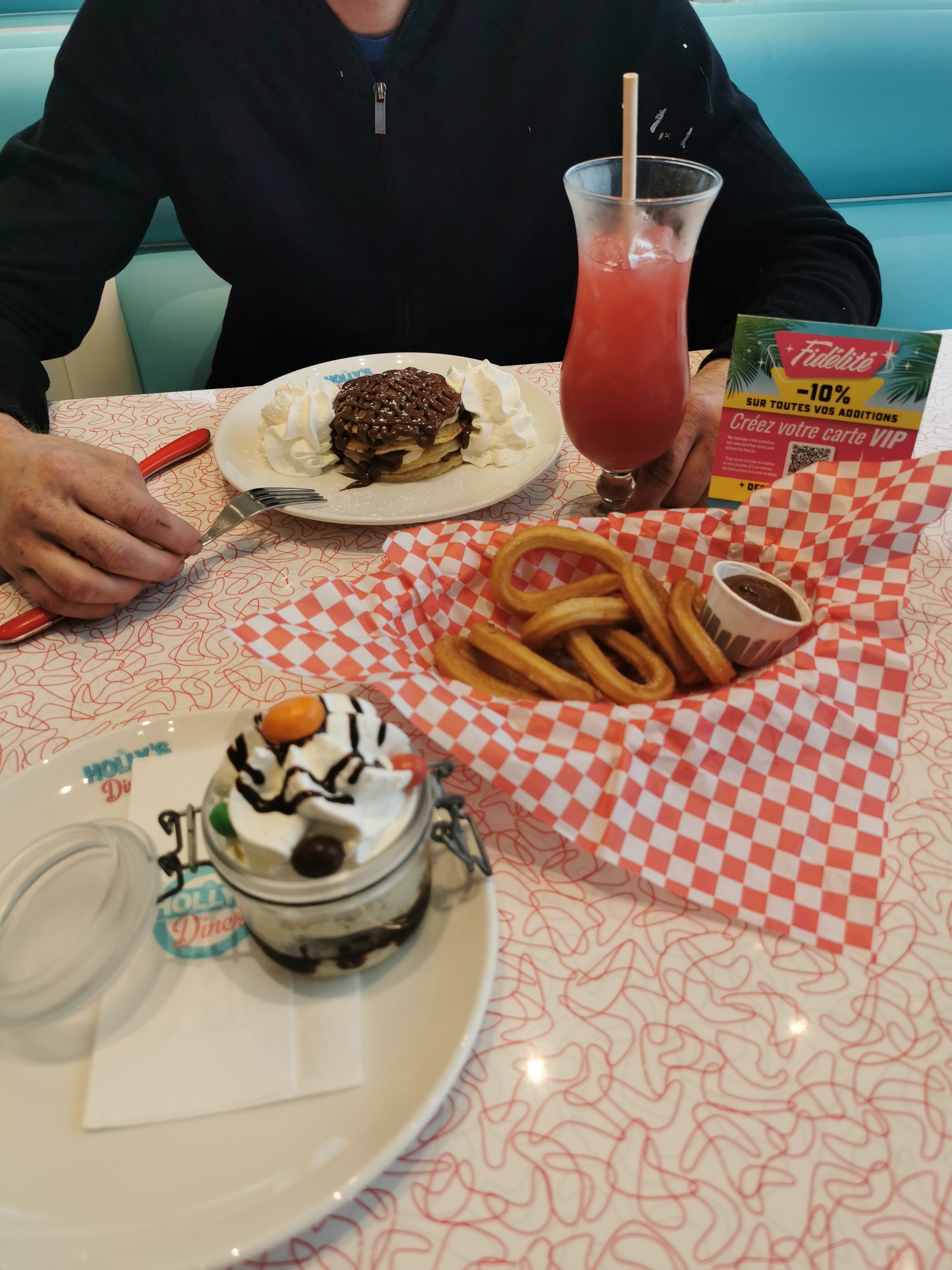 Nous venons de Tahiti, passer des vacances en France chez nos amies de cœurs en Bretagne. Et c’est un grand plaisir de déjeuner à Holly’s Diner, Langueux. L’ambiance de notre venue est super convivial merci l’équipe du restaurant à Janex et David qui montre que l’accueil, se doit toujours être un point positif pour bien commencer la journée. Le service est parfaitement actif pour prendre la commande par Bérénice et Shara. La carte du restaurant est super! Nous sommes vraiment très satisfaite les plats que nous avions choisis sont excellent… Merci pour cette amour qu’il y a dans nos assiettes BIG love à MOMO. On adore 💖💖💖 Nous manquerons pas d’y revenir Merci Holly’s Diner.