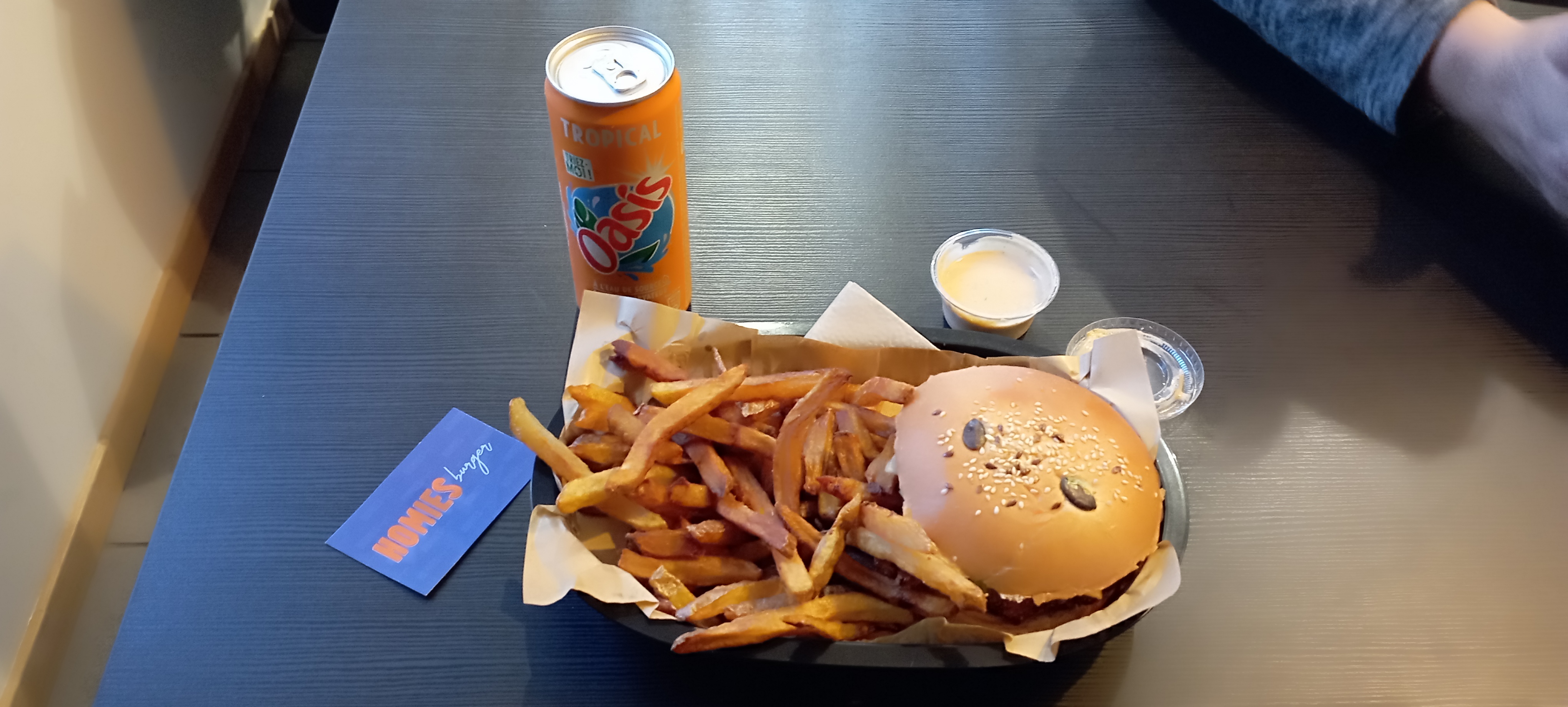 Convivialité, qualité et générosité ! C'est ce qui, selon moi, défini le mieux Homies burger ! Une bande de potes qui vous accueille comme à la maison, des frites bien croustillantes et généreuses en quantité. Le pain est fait maison et ça se sent ! Moelleux et savoureux le tout accompagné d'une association des saveurs vraiment excellente ! Allez y, vous voudrez (forcément) y retourner 😉