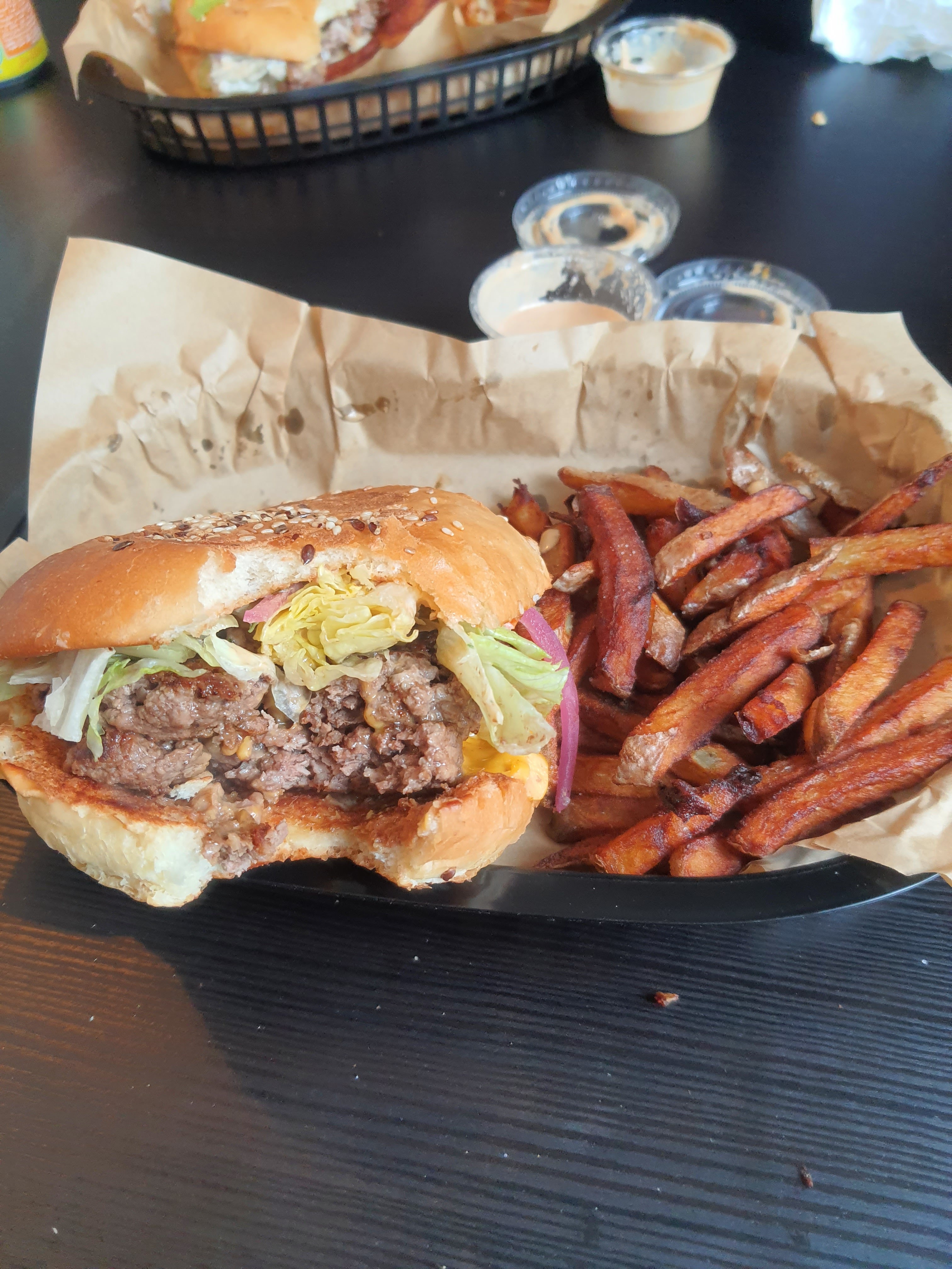Alors que dire.... Tout est très bon.. tout est maison.. L'accueil est top, les burgers sont généreux, tout comme les portions de frites. La sauce au poivre est terrible. Si vous cherchez un bon burger, n heistez plus. .... Peace les homies ♥️