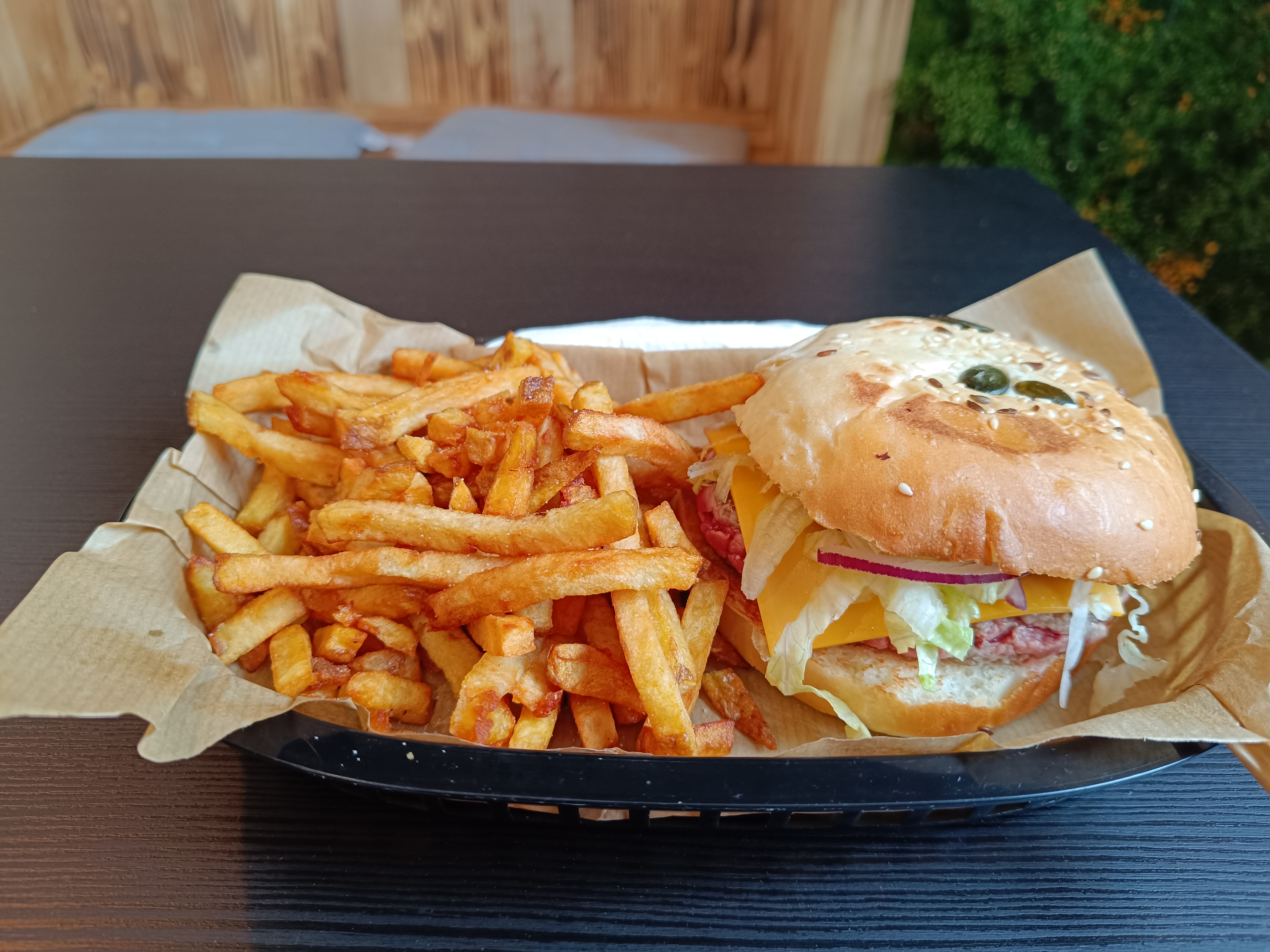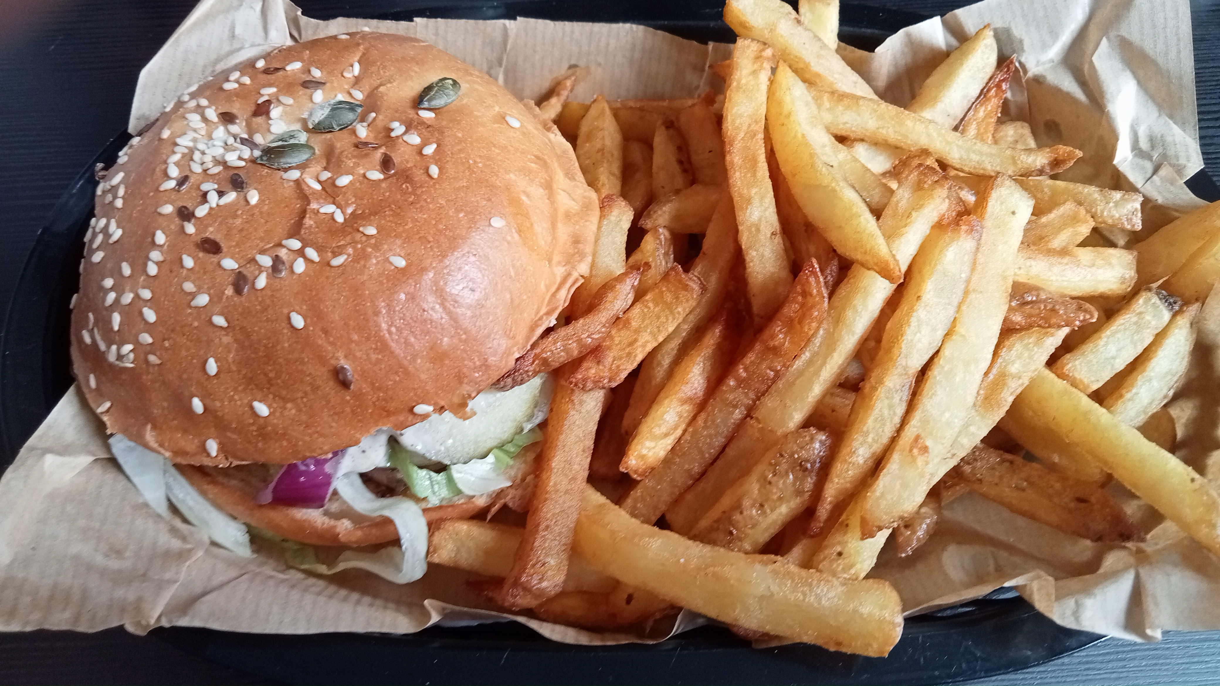 Excellent ! Le burger végé est copieux et tout les burgers peuvent l'être. Grande portion de frites, les petites bouchées au chèvre sont également excellentes. On est conquis. Les gérants sont super sympa, arrangeant et le service est rapide. On revient !