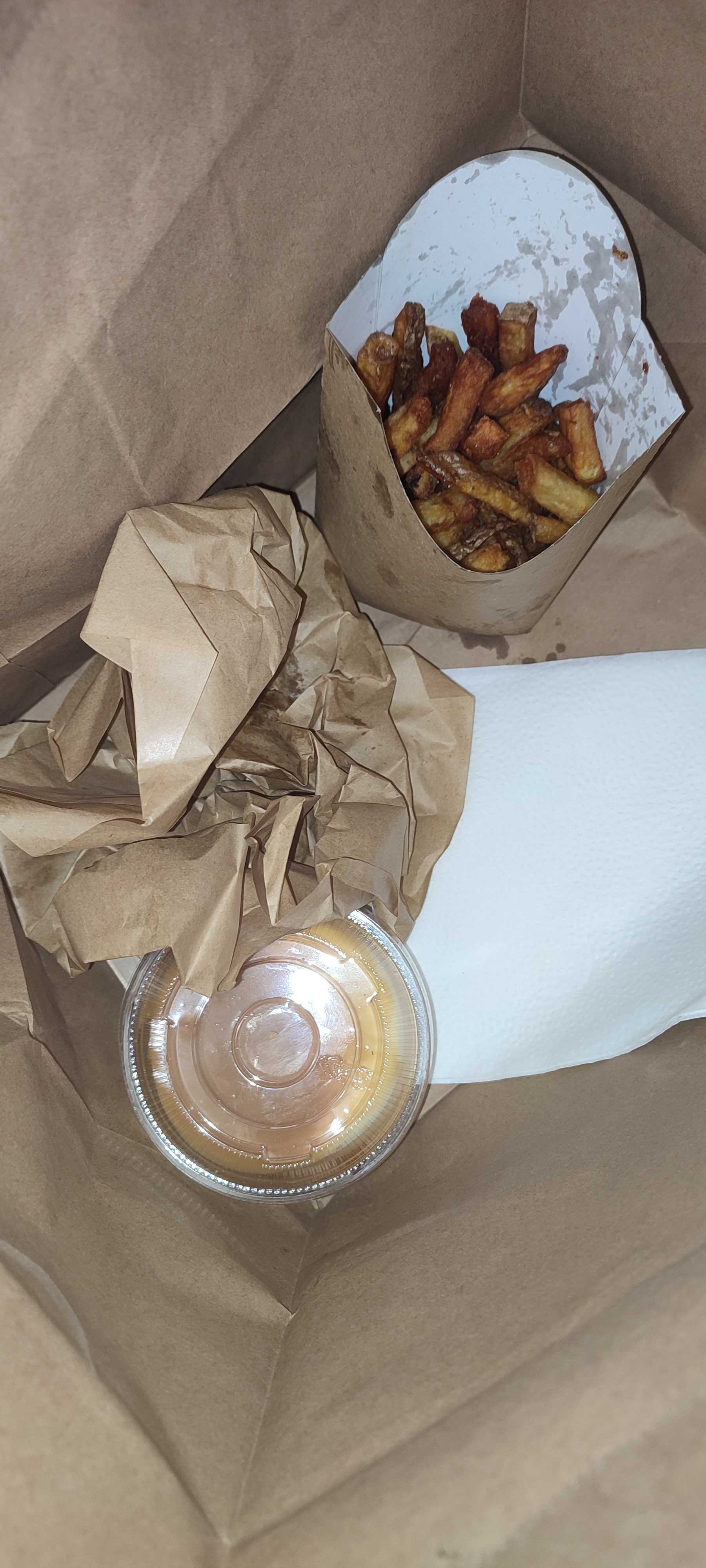 Menu homies via UberEat, cornet de frites très généreux, burger excellent et bien garnie, stick emmental pesto un peu lourd à manger même il en faut pour tous le monde, et le tout arrivé encore chaud