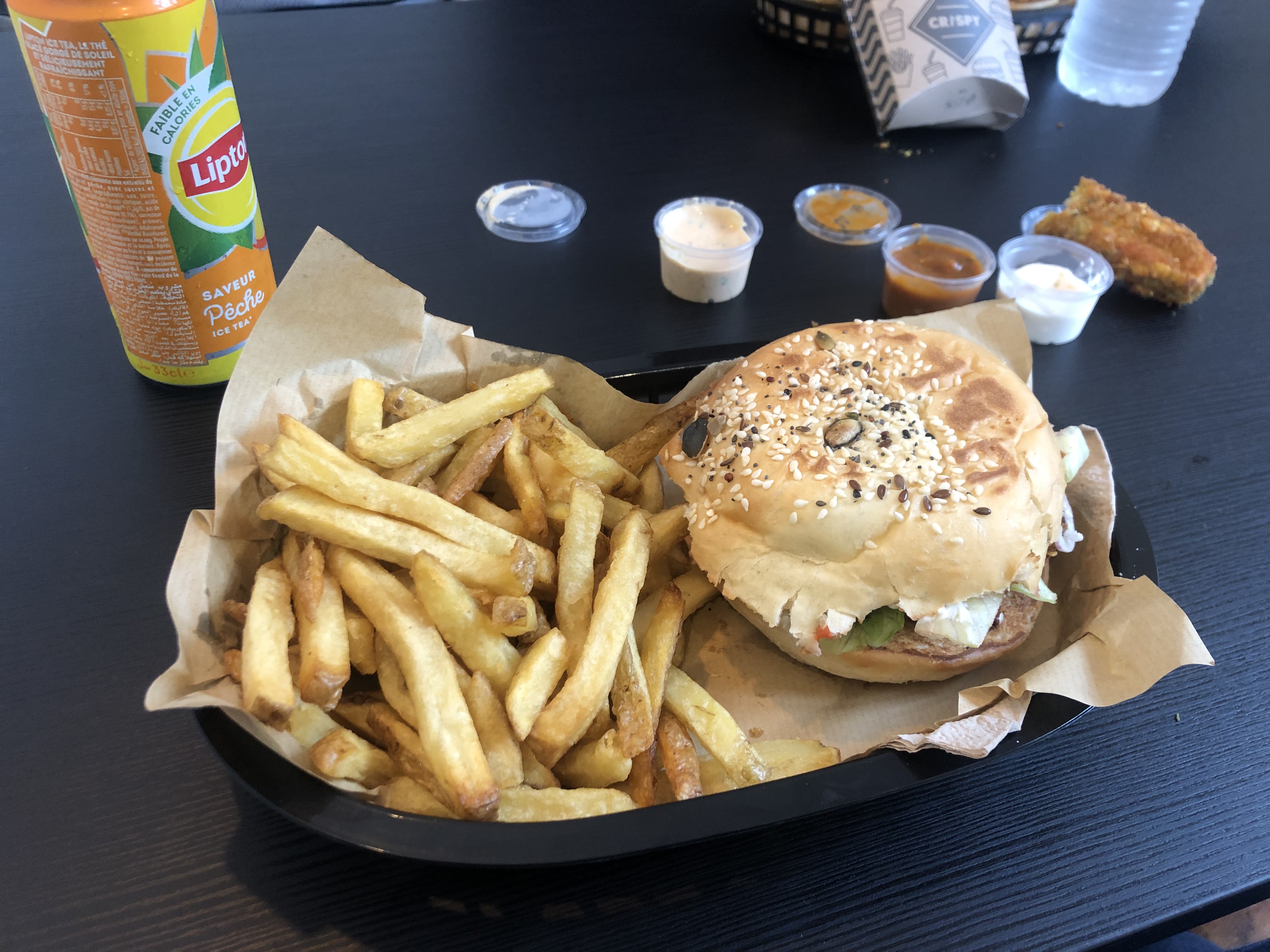 Le burguer vegie est une belle découverte. Dans ce genre de Burger on a l'habitude une galette de pomme de terre alors qu'ici c'est une mozza panée et c'est vraiment délicieux, ça vaut vraiment le coup de le tester.