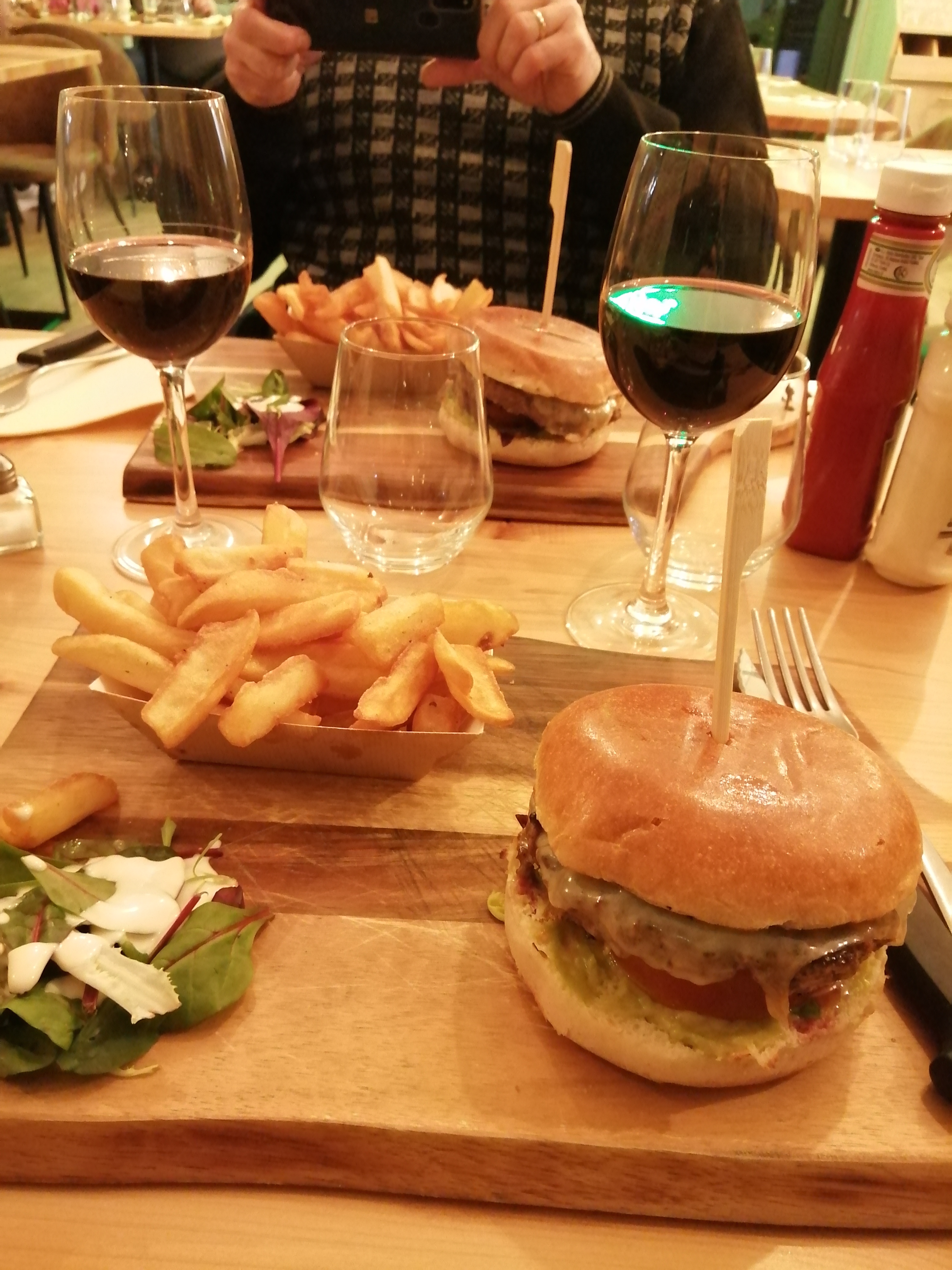 Accueil chaleureux, serveuse souriante et très aimable, d'où l'étoile. Hamburger de bonne qualité, bon mais presque froid servi avec des frites et salade (très peu). Choix de vin très limité, un seul ! Plus de dessert mais vu le froid qu'il faisait dans la salle, ça n'incite pas à rester !! Et nous qui hésitions à prendre à emporter de peur de manger froid... !