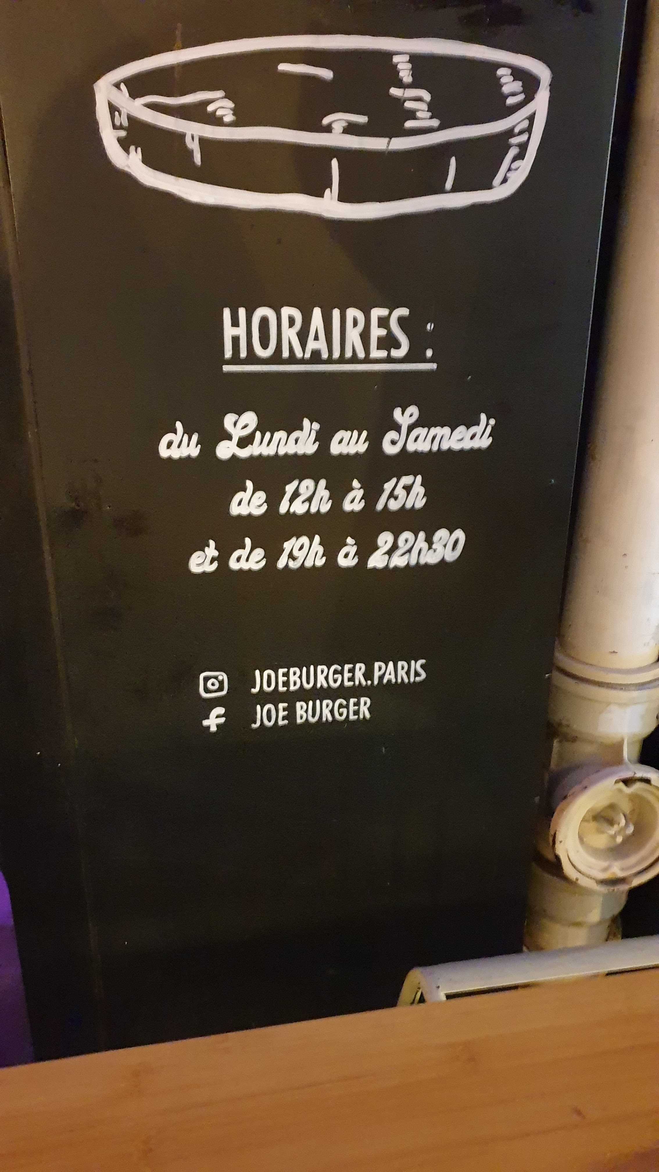 Monsieur, Je prends note de votre commentaire, parlez vous de joe burger !!! Car nos horaires sont sur la devanture et les réseaux … Parlons cuisine : pour chaque service notre pain à burger est frais ainsi que notre steak haché et tous nos légumes sont préparés sur place . Les frites sont fraîches mais apparemment pas à votre goût ! Joe Burger met à des disposition des mugs d’eau sur demande c’est notre choix de ne pas mettre de carafe. Sachez que quand vous venez chez joe burger l’hygiène est irréprochable, préparée à la minute pour un tarif burger, frites et boisson à 11,90€. Bien à vous La team Joe Burger