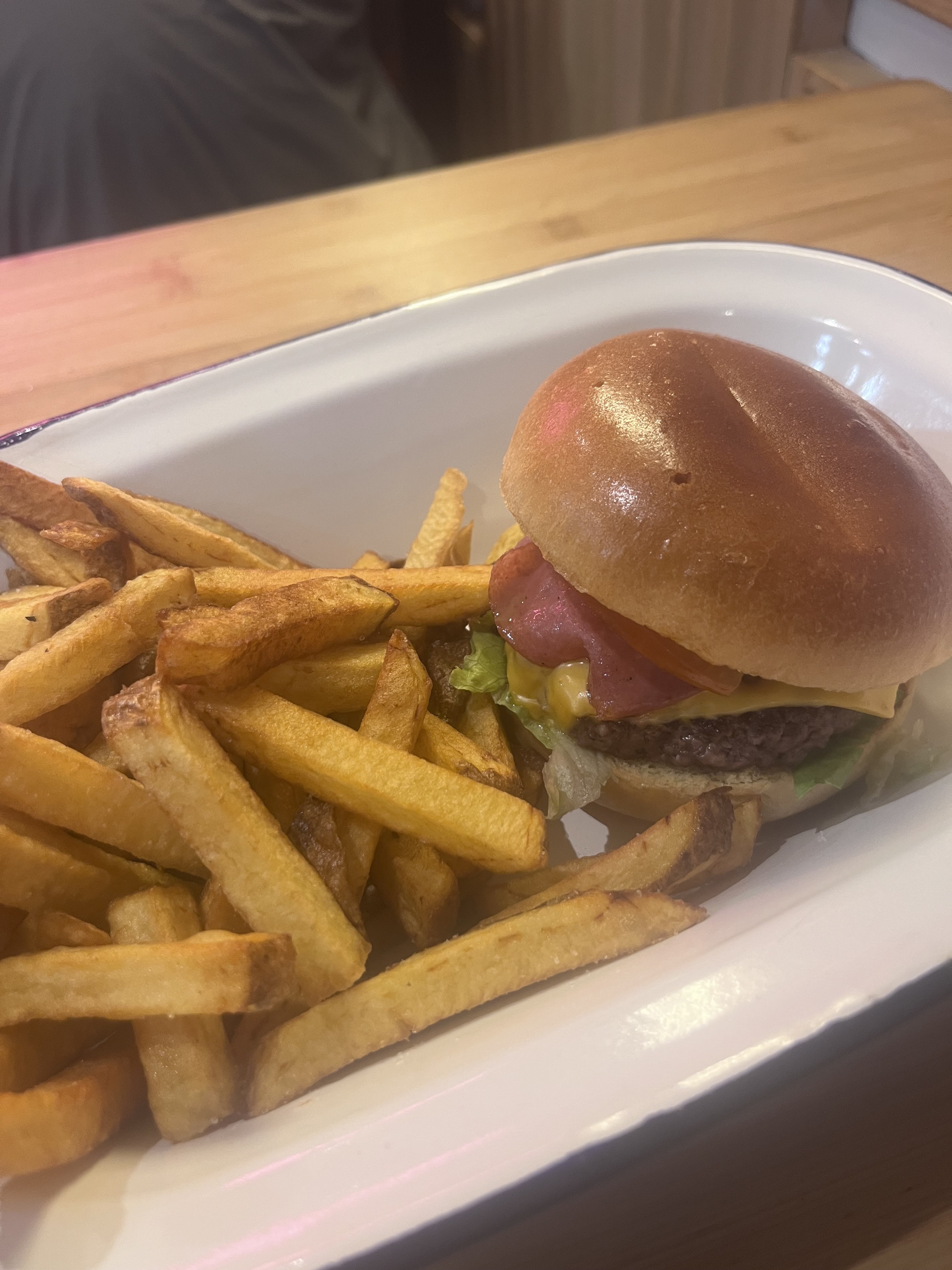 Propriétaire sympathique, frites maison et burger de qualité préparé sous nos yeux, avec choix de la cuisson pour le steak. De plus le menu étudiant est à seulement 8€. Je recommande totalement !