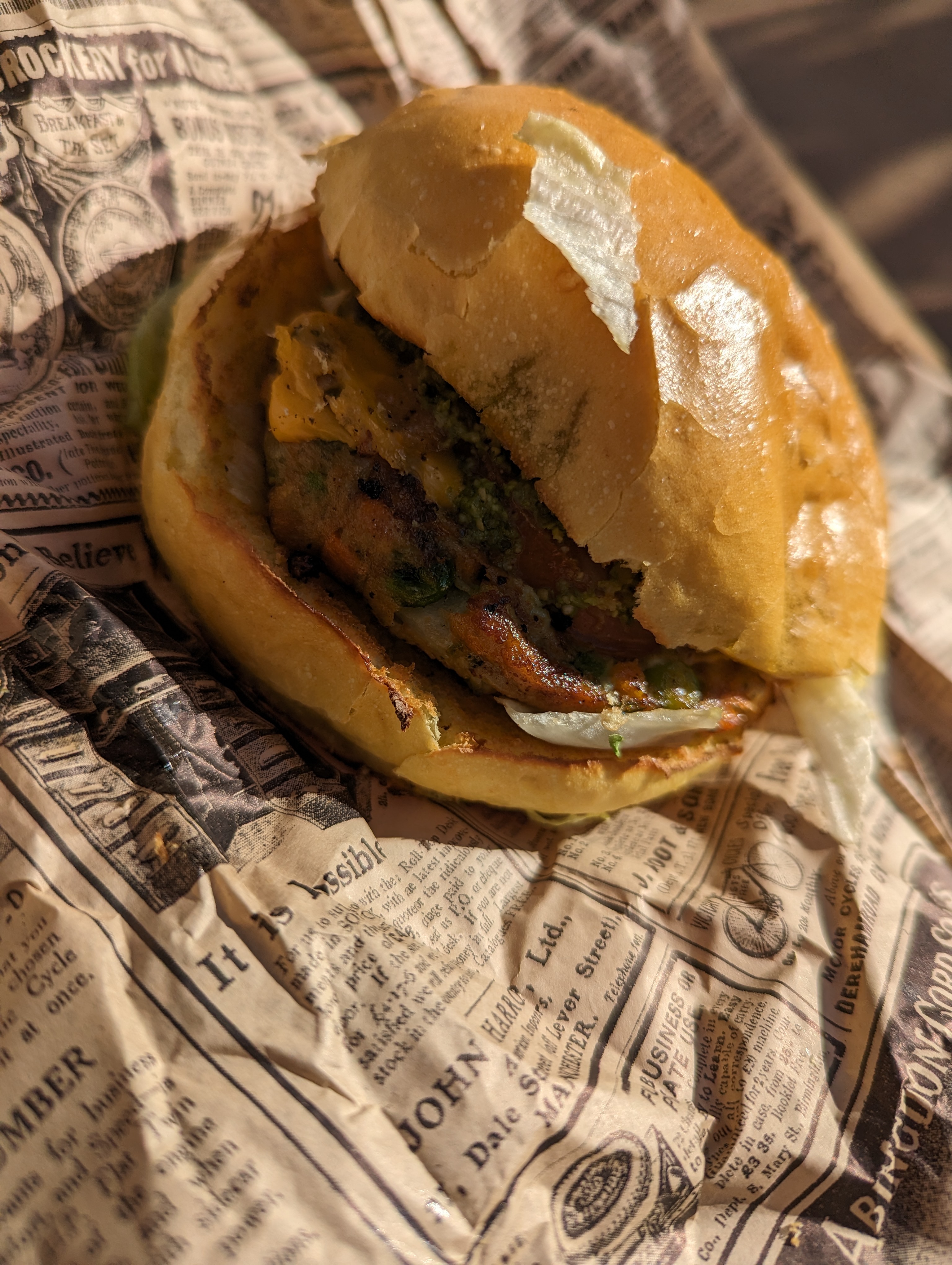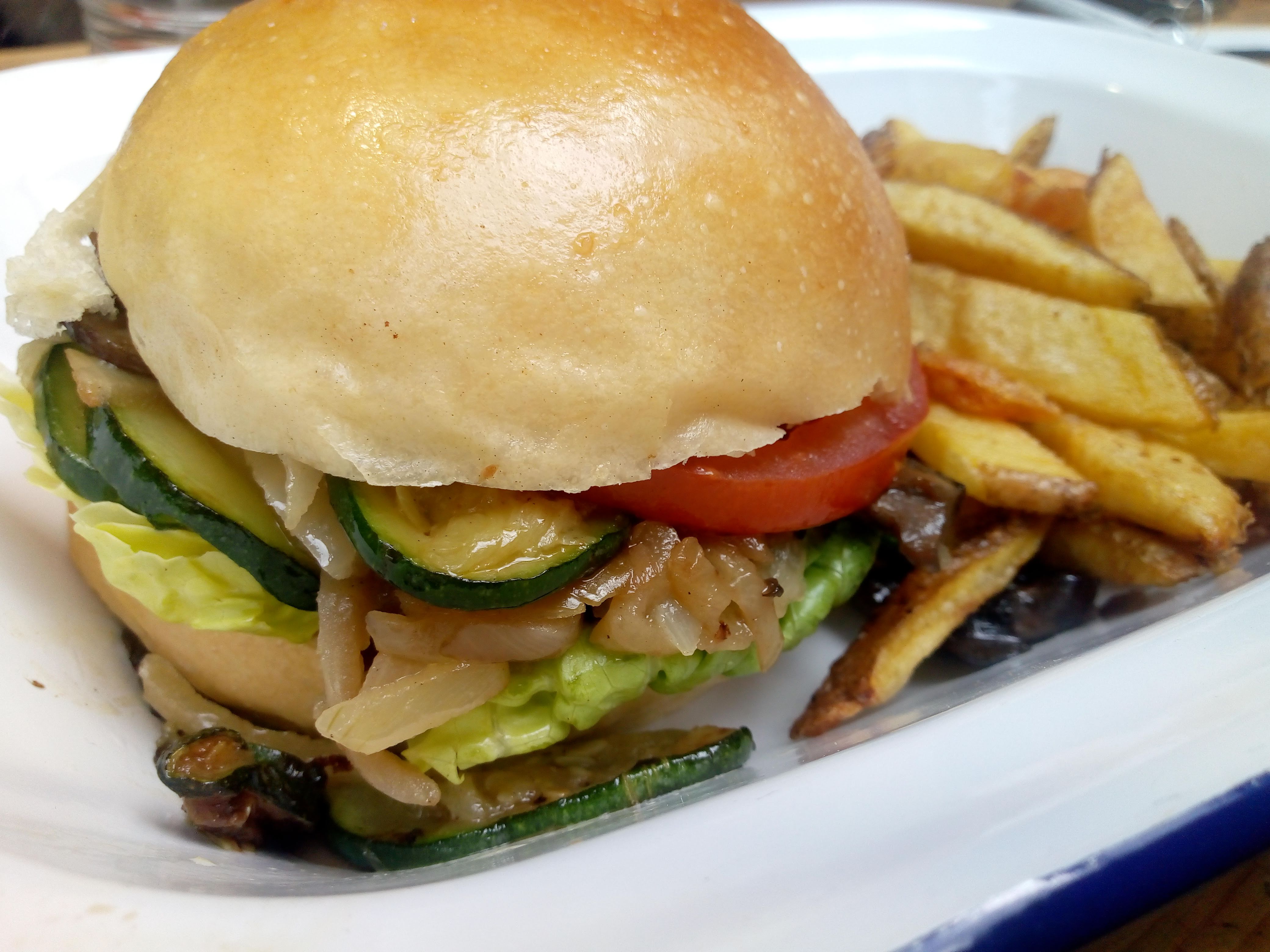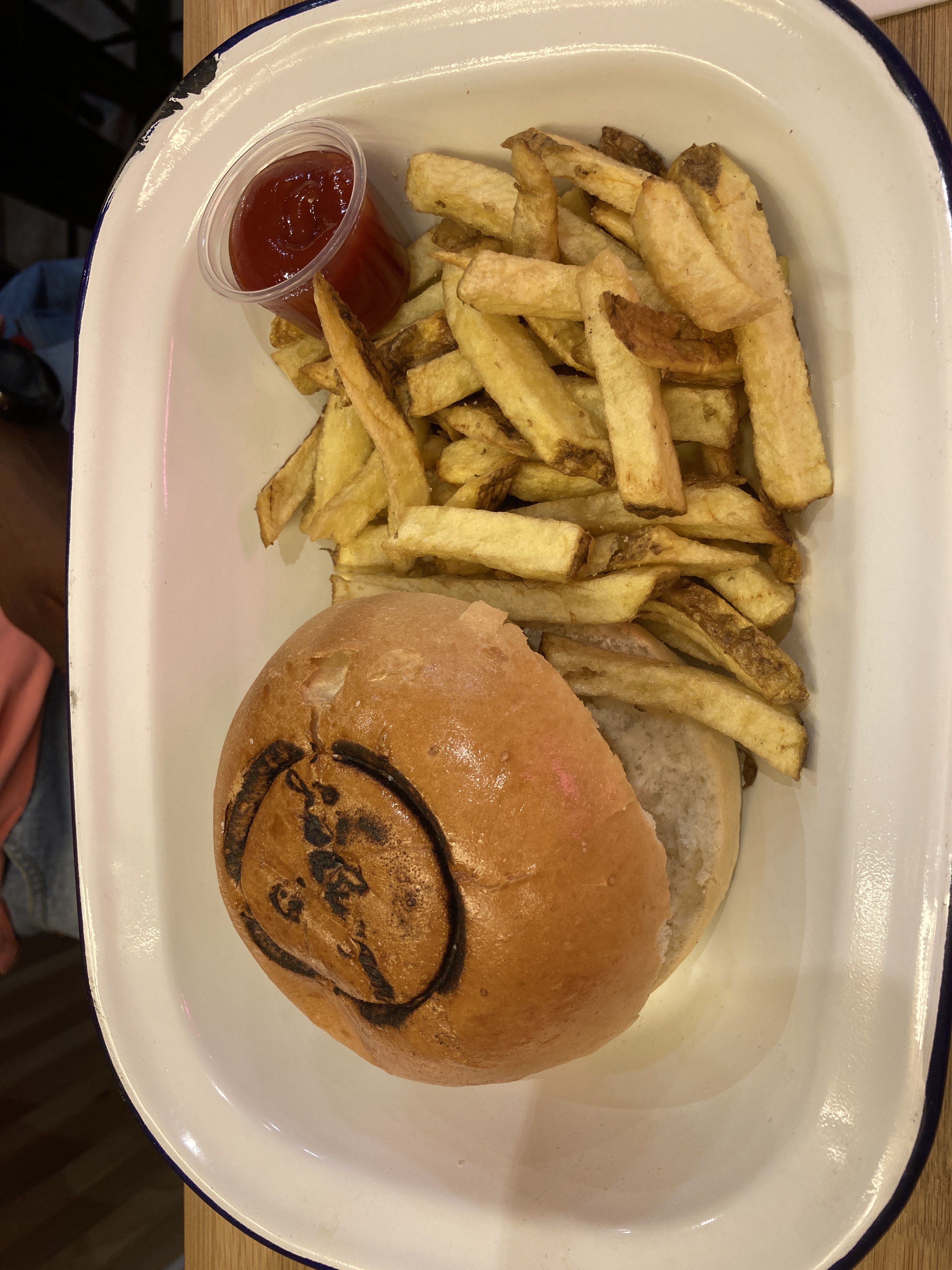 Pas mal mais honnêtement pas non plus de quoi justifier la note gmap. Le burger végétarien est sympa mais on reste sur sa faim, pas assez d’umami, manque de mâche. Dommage. Les frites sont bonnes.