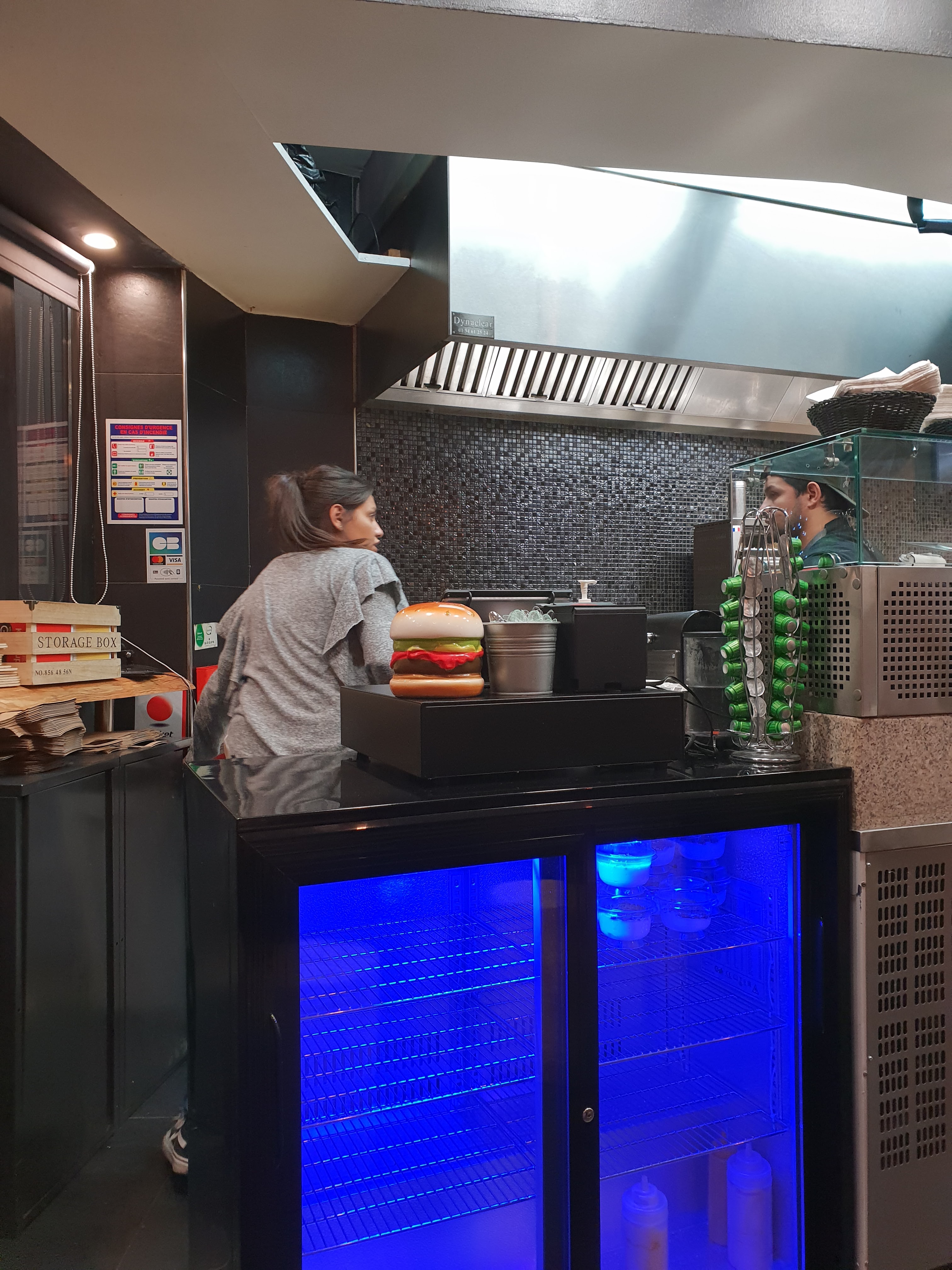 Restaurant assez petit avec 18 places assises maximum à l'intérieur. Le rapport qualité-prix est imbattable bien que des meilleurs burger existent dans la capitale. Petit bémol, le temps sur place est assez limité du a étroitesse des lieux et le besoin de rotation de tables vu la bonne fréquentation.