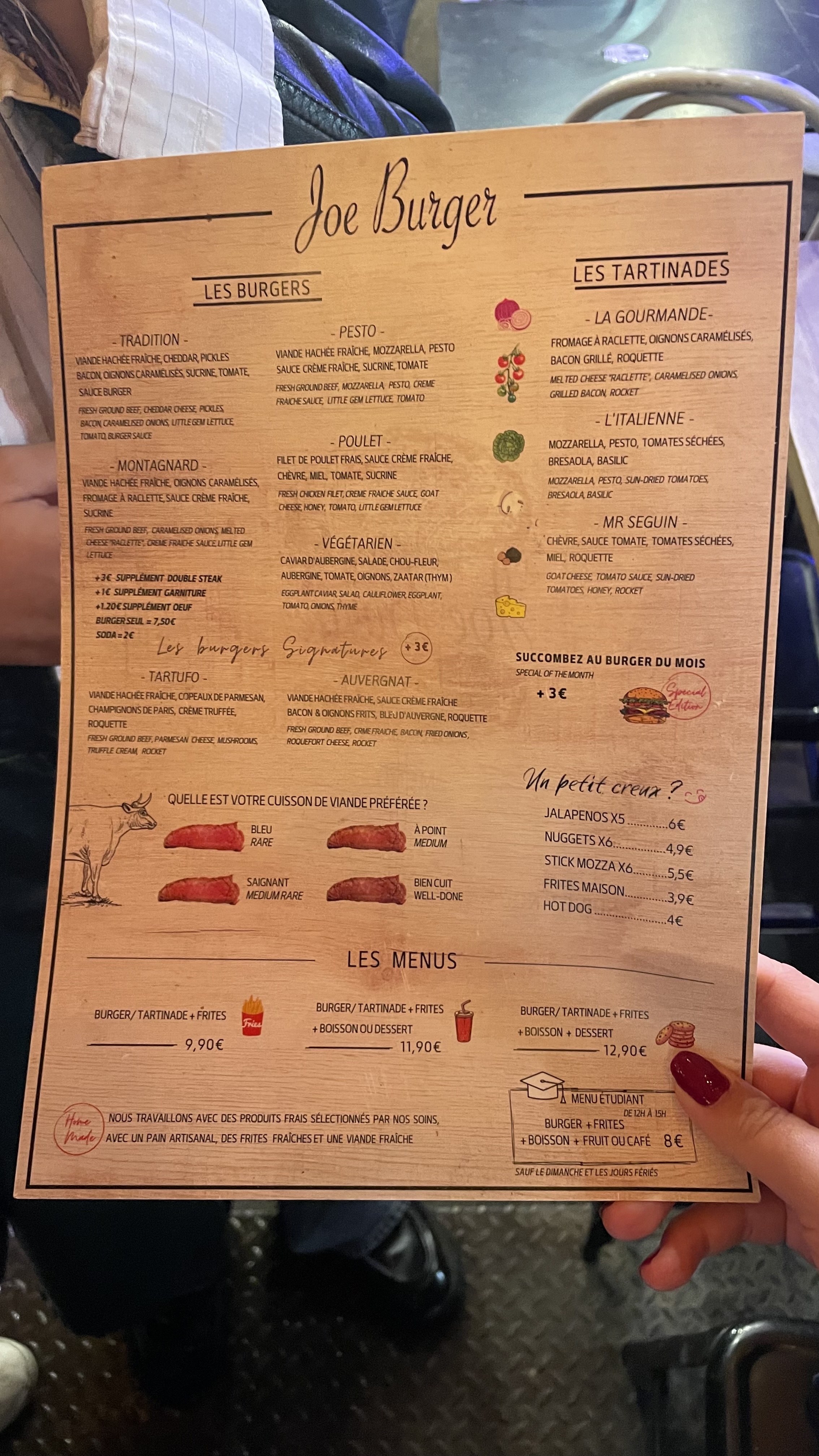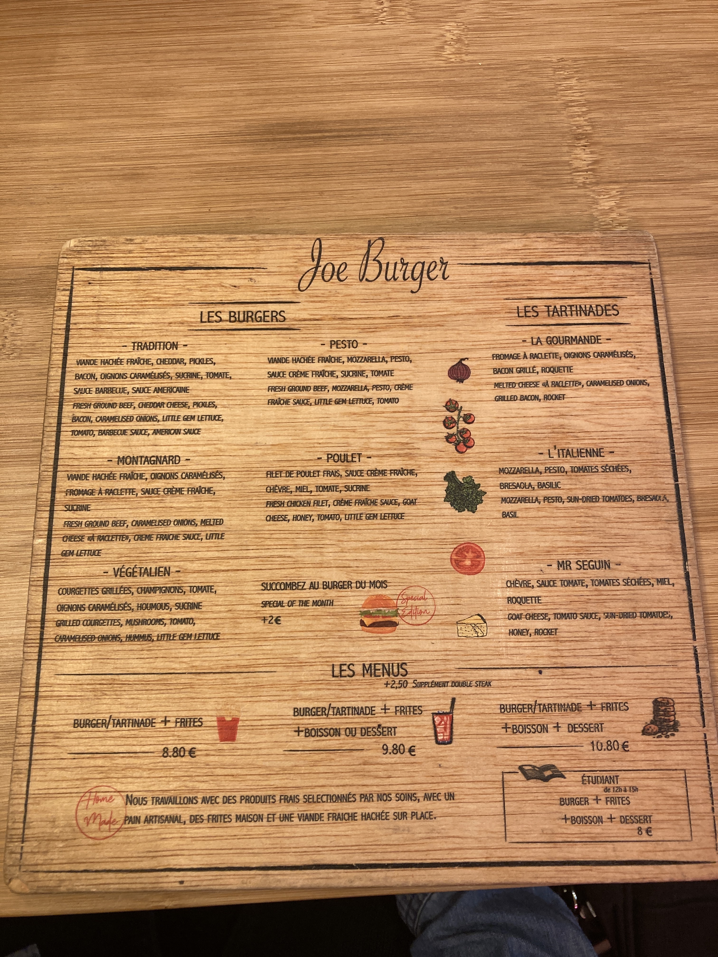Super service et burgers de qualité, j'y retournerai sans hésiter ! Encore merci pour le tiramisù offert !! Au top Joe burger 👍