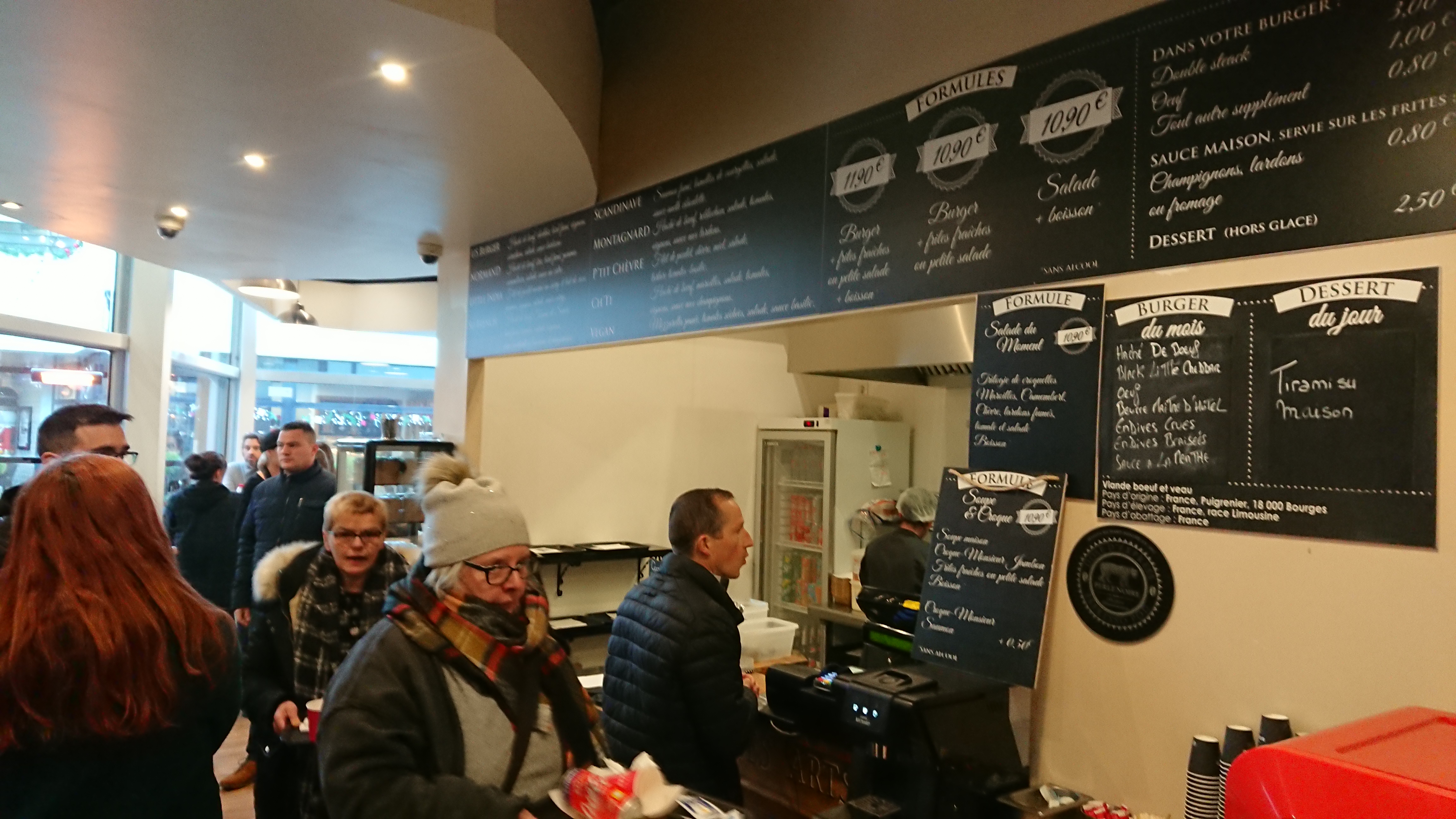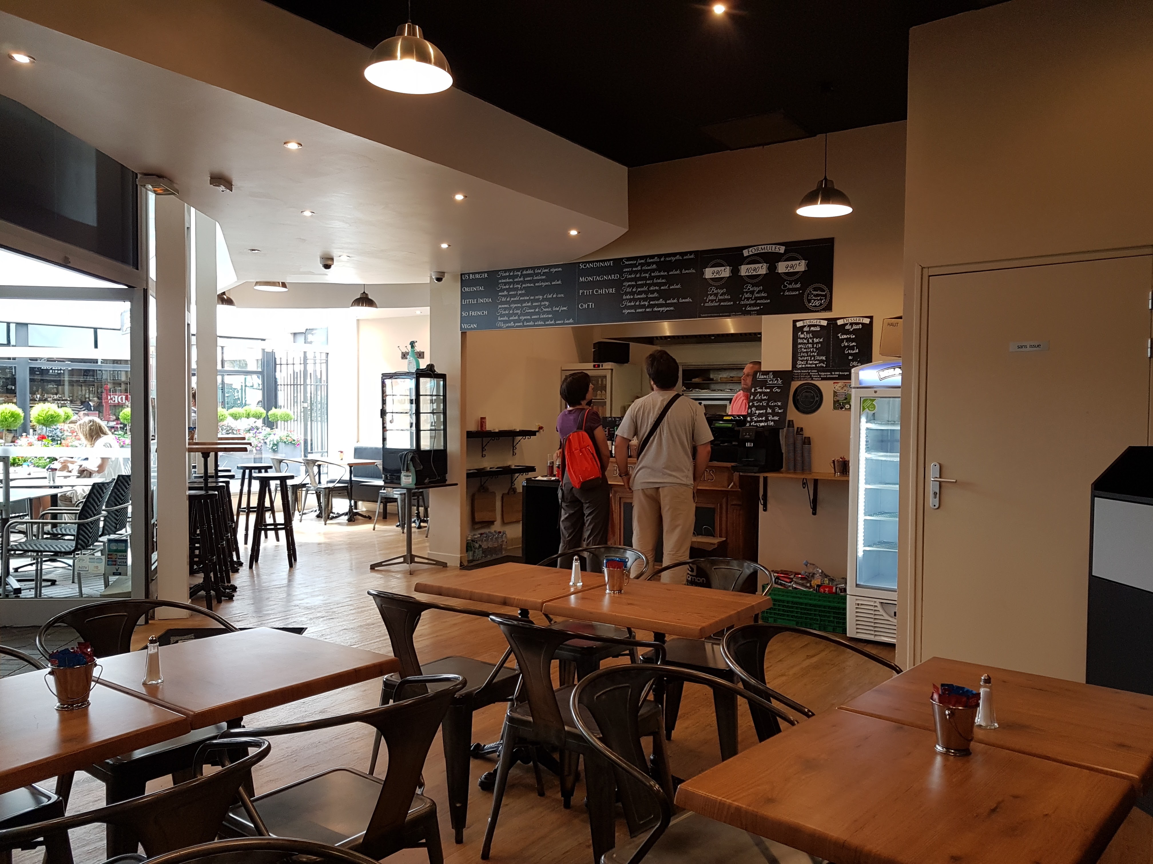 Nous avions été à 3 avec notre fils de 5 ans pendant les soldes, il y avait du monde mais nous avons trouvé une place, La commande a été servi très rapidement, nous avions pris une formule avec soupe , croque saumon et frites + boissons, le tout pour 11 € je crois, franchement c'était super bon, la soupe aux courgettes était délicieuse, notre fils avait prix nuggets frites, a cet age... difficile !! nous avons féliciter le patron car pour le prix c'était super, le patron nous a dit que tout était frais et franchement ça se sentait, rapport qualité prix au top !!! les burgers ont l'air pas mal aussi, a tester pour al prochaine fois, merci.