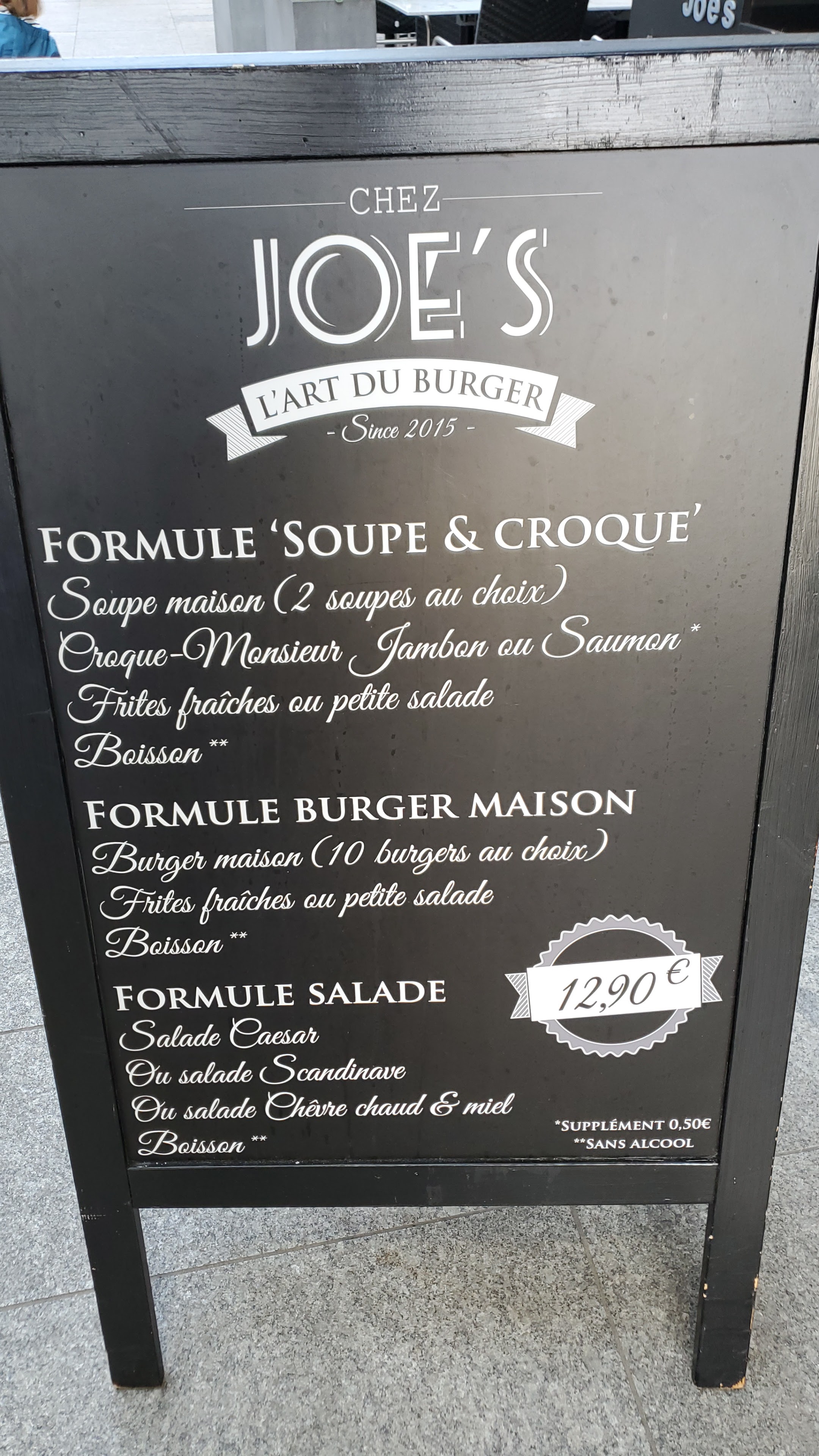 Les amateurs de bons burgers et de frites se régaleront forcément chez Joe's ! Les plats du jour régulièrement renouvelés sont juste excellents ! Je recommande à 100%
