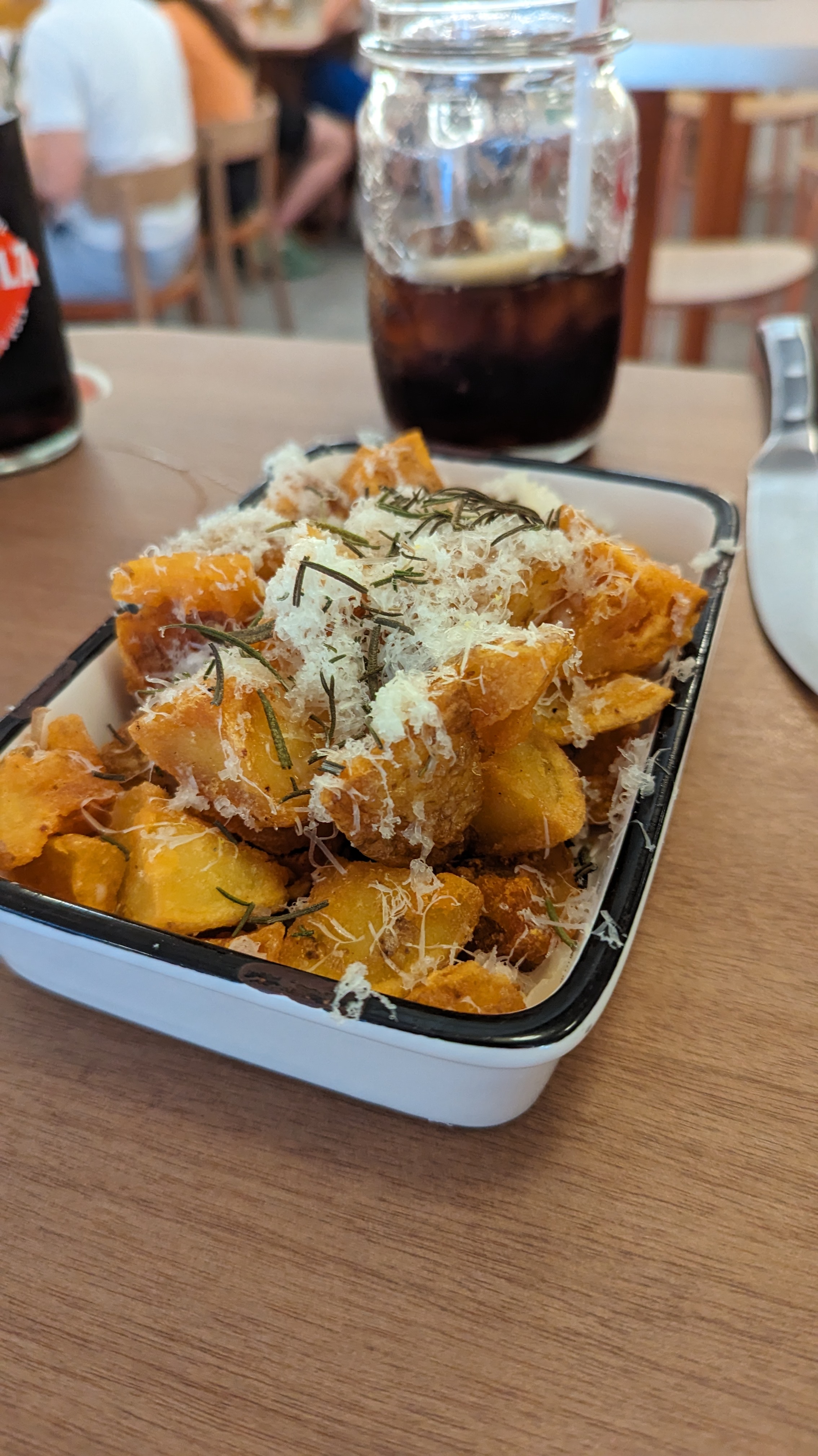 L’expérience Joia Bun peut se résumer en trois mots : bon mais cher. En plein mois de juillet, le restaurant est quasiment désert à notre grand étonnement. On se fait accueillir par une charmante serveuse, très souriante. La carte donne l’eau à la bouche, et le résultat est totalement conforme à nos attentes : généreux, avec du goût et des associations étonnantes. Là où ça devient plus compliqué, c’est au moment de payer : 6€ les pommes de terre (pour accompagner un burger à 18€…) Le coup de massue vient avec le dessert, un cookie à 3,5€ tout ce qu’il y a de plus banal. Ça fait mal au cœur, mais il est meilleur au wagon bar du TGV…