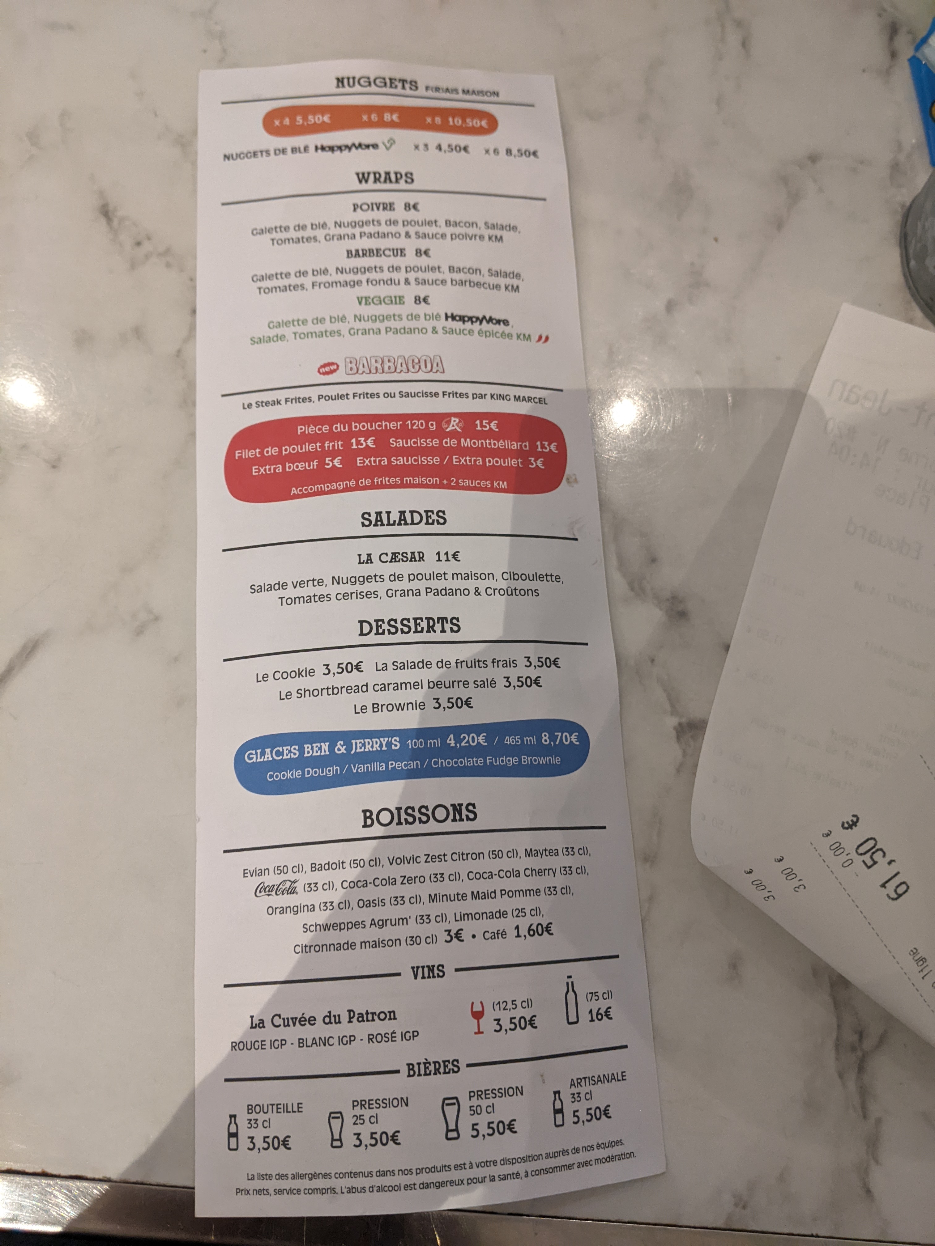 Bonjour Léa , nous sommes navrés que votre menu n'est pas été à la hauteur de vos attentes ! Le prix se justifie par la qualité de nos produits, uniquement frais : pain d’un boulanger cuit quotidiennement, viande de bœuf de race limousine, fromages de nos régions, sauces cuisinées maison et frites fraîches. Marcel