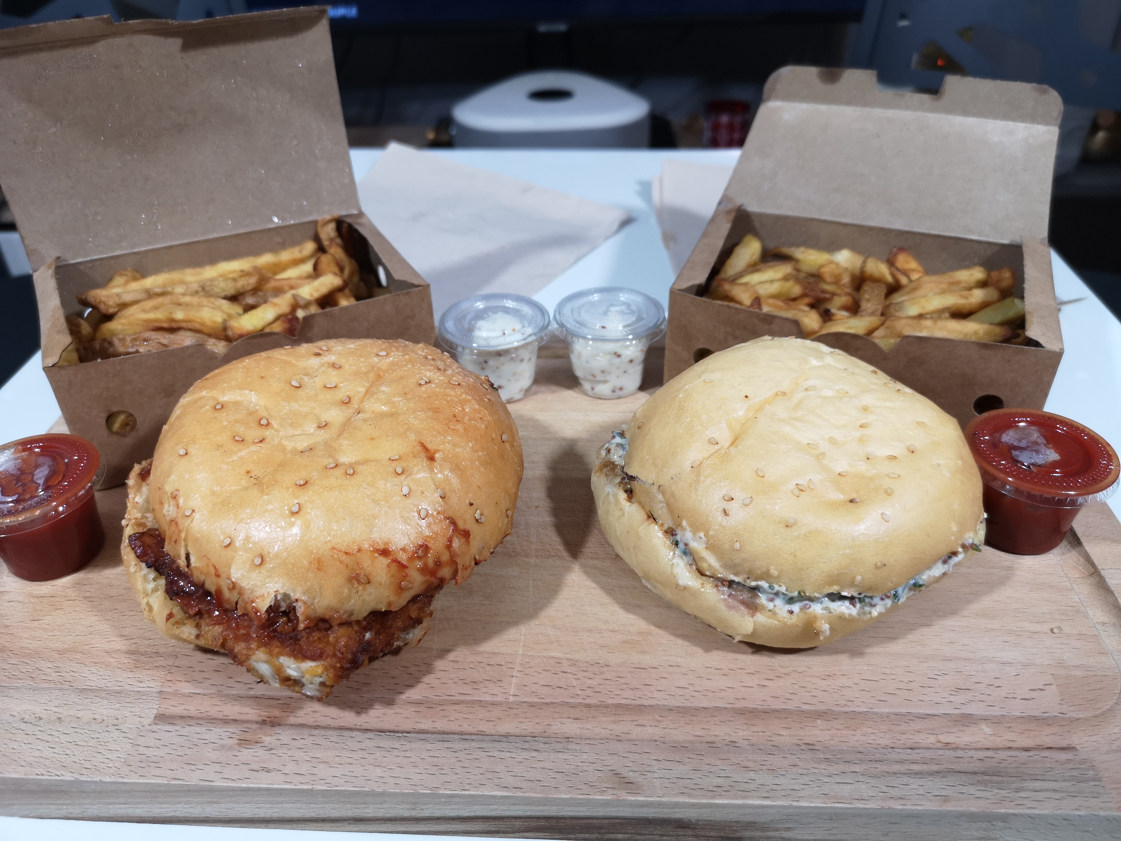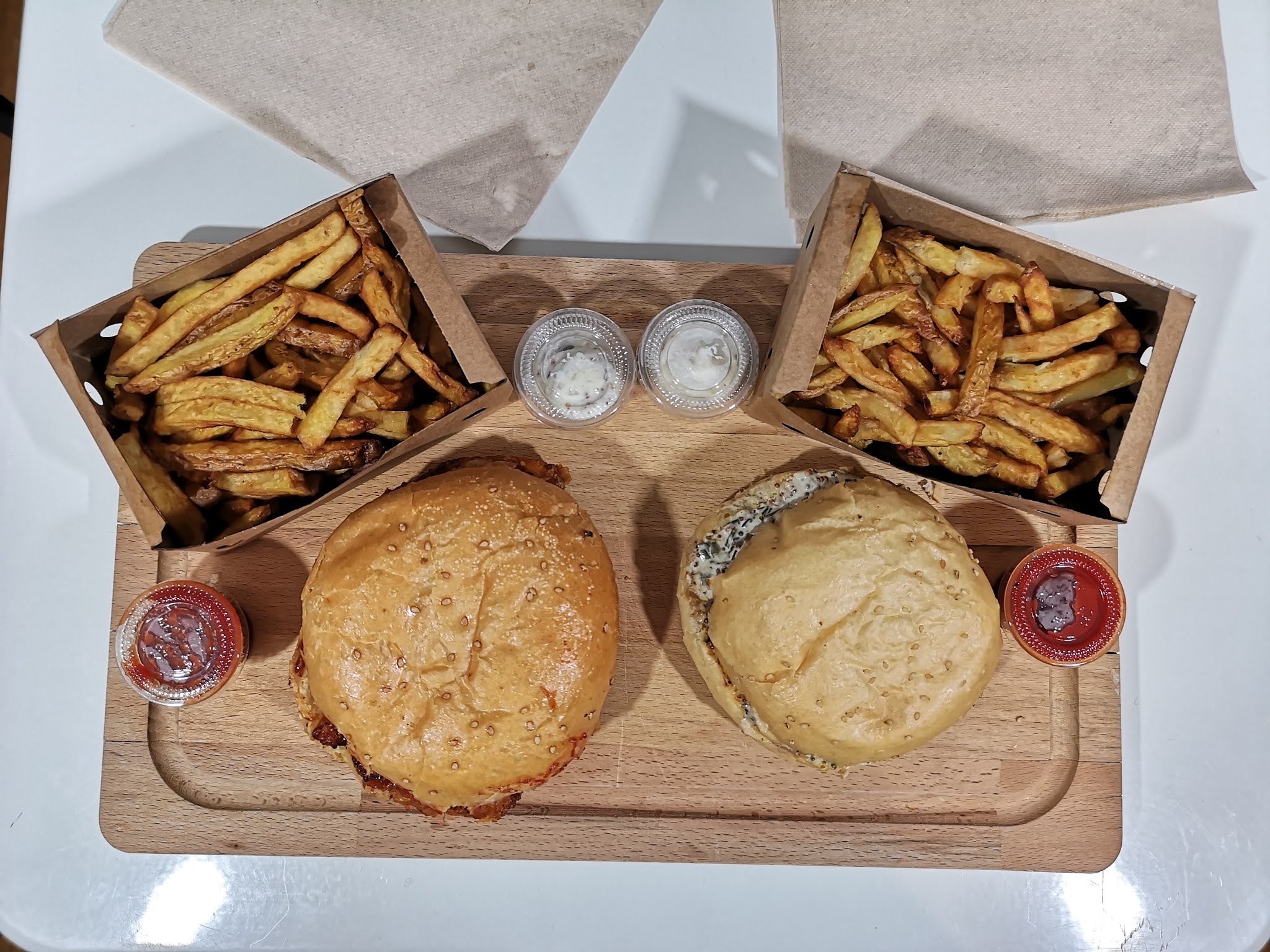Trop cher pour la qualité des produits, les burgers végé sont ultra sec . Les frites ne sont pas croustillantes. Et ont a oublié de nous mettre les sauces pour une commande à 44€ ça pique.