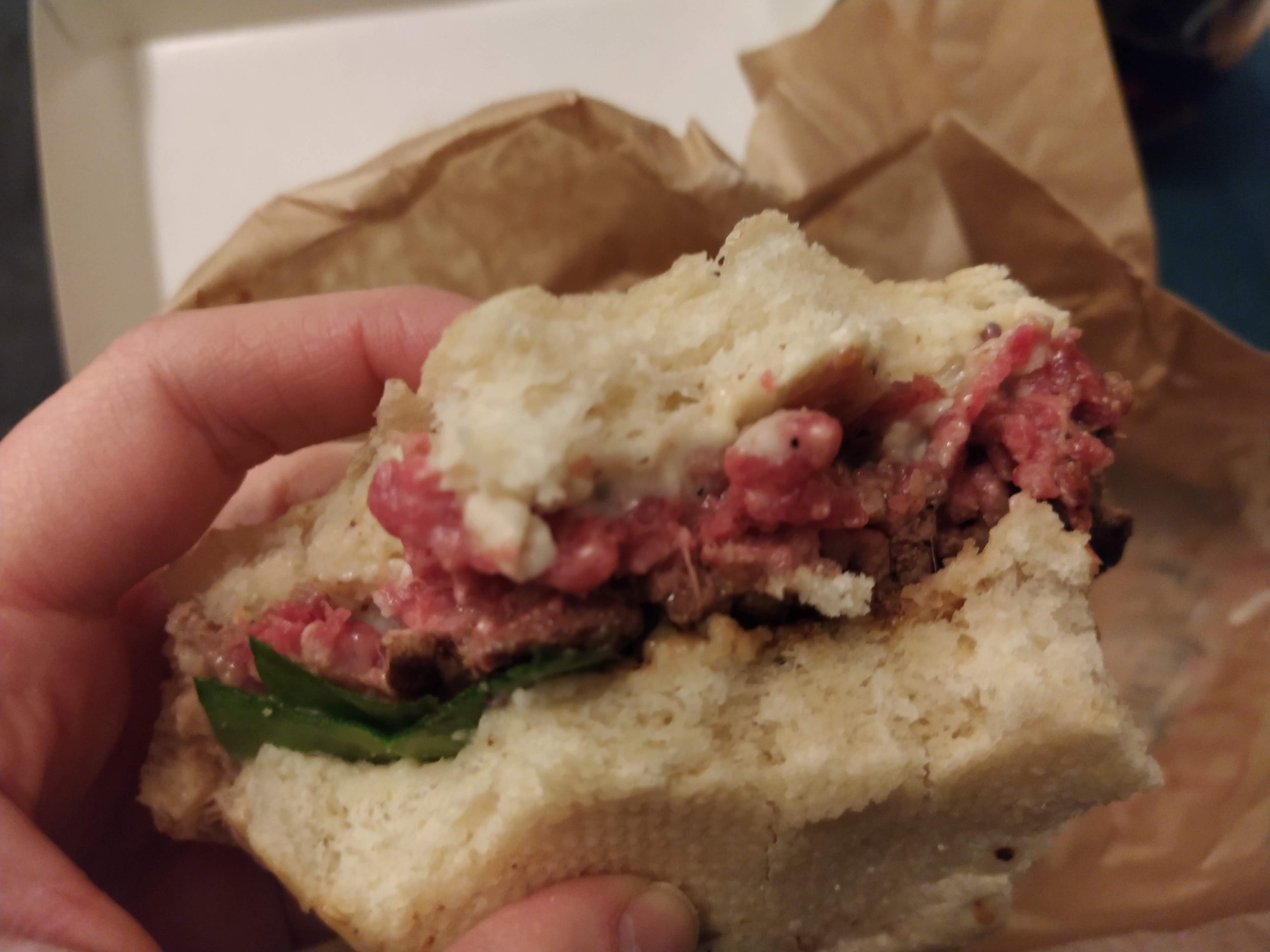 On vient de commander 2 burgers en précisant que l'on voulait les steaks cramé pour l'un et bien cuit pour l'autre. 2 burgers sanguinolants sont arrivés. Impossible de renvoyer quand on commande, on ne refera pas