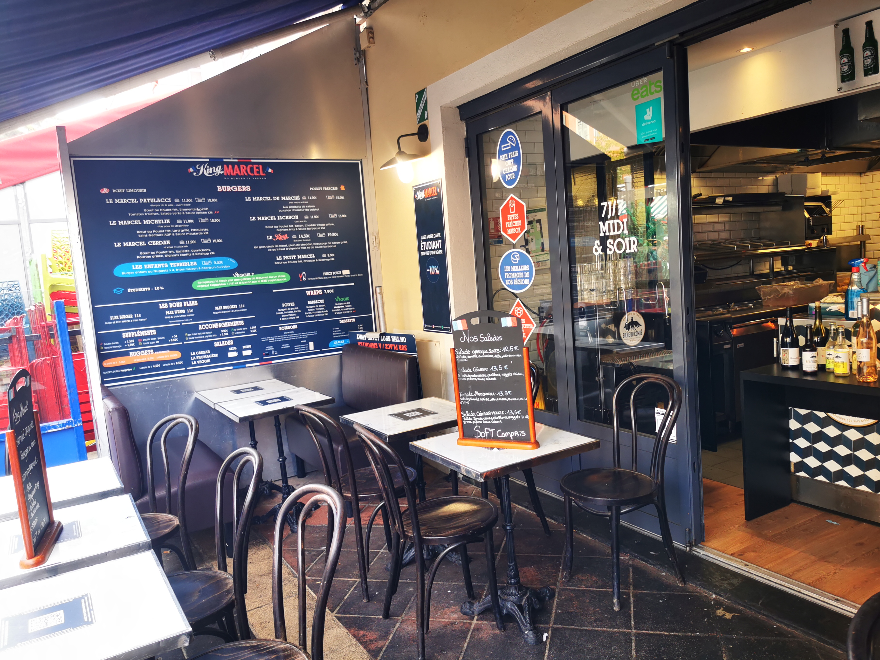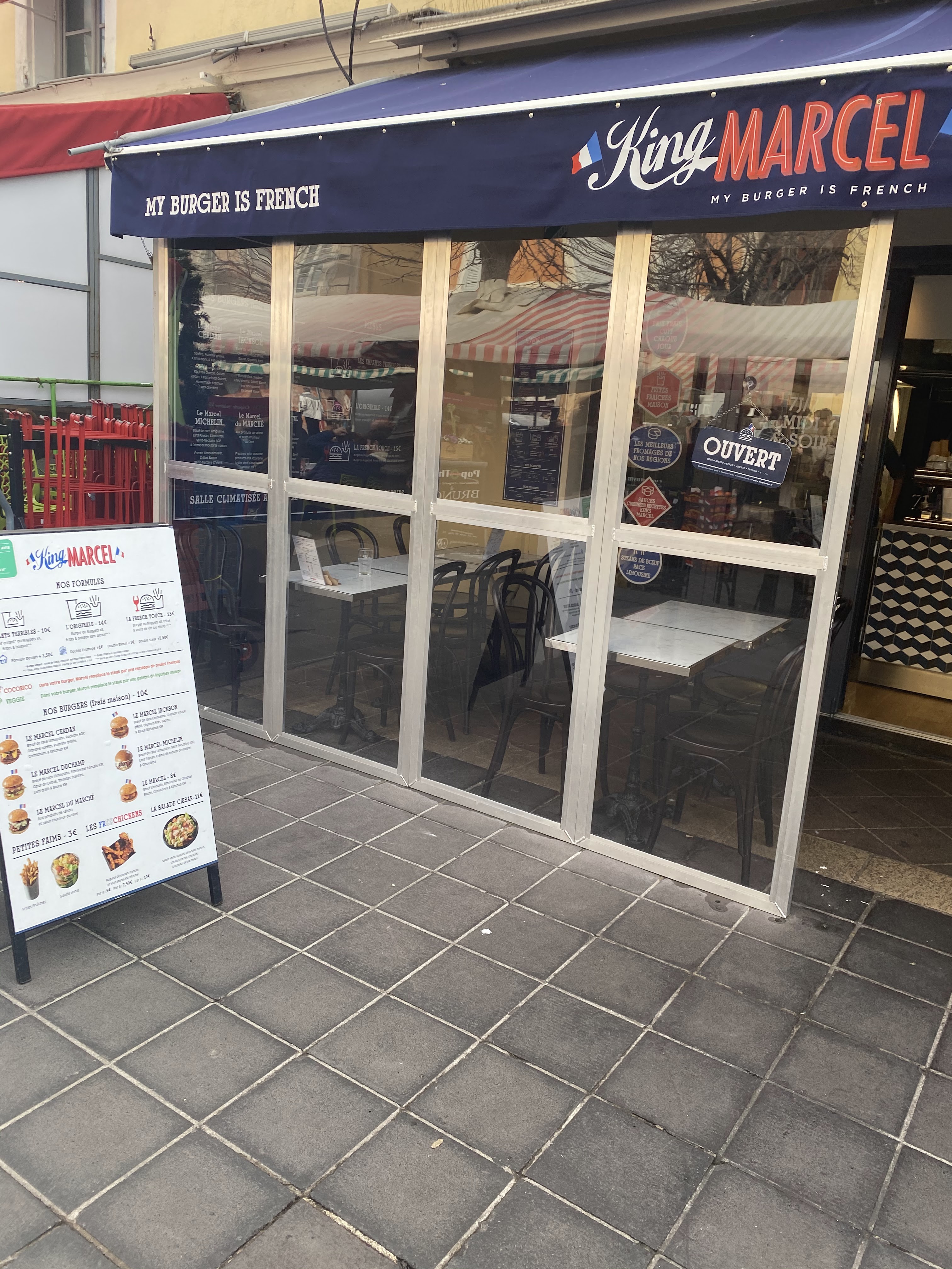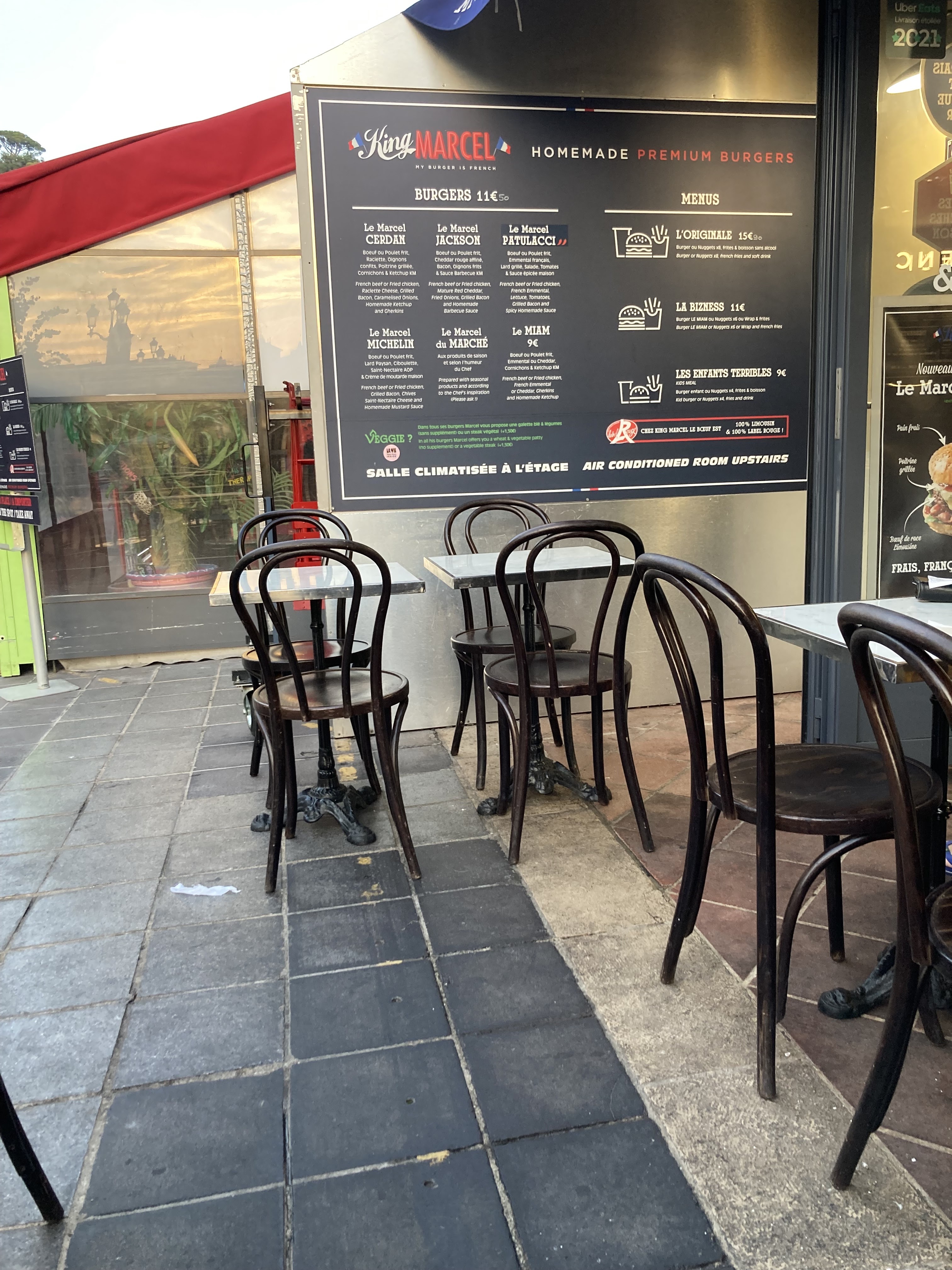 Je recommande se resto pour ces Hamburger a tomber par terre fait maison, a chaque fois que je longe la côte d'antibes a nice en VTT, j'essaye de m'arrêter pour déjeuner et là KING MARCEL vraiment essayé le, en terme de prix moi sa me convient des fromage de France avec des produits français, vraiment génial mieux et mille fois mieux que Mac Do, donc dejeuner sur la vue de la méditerranée.