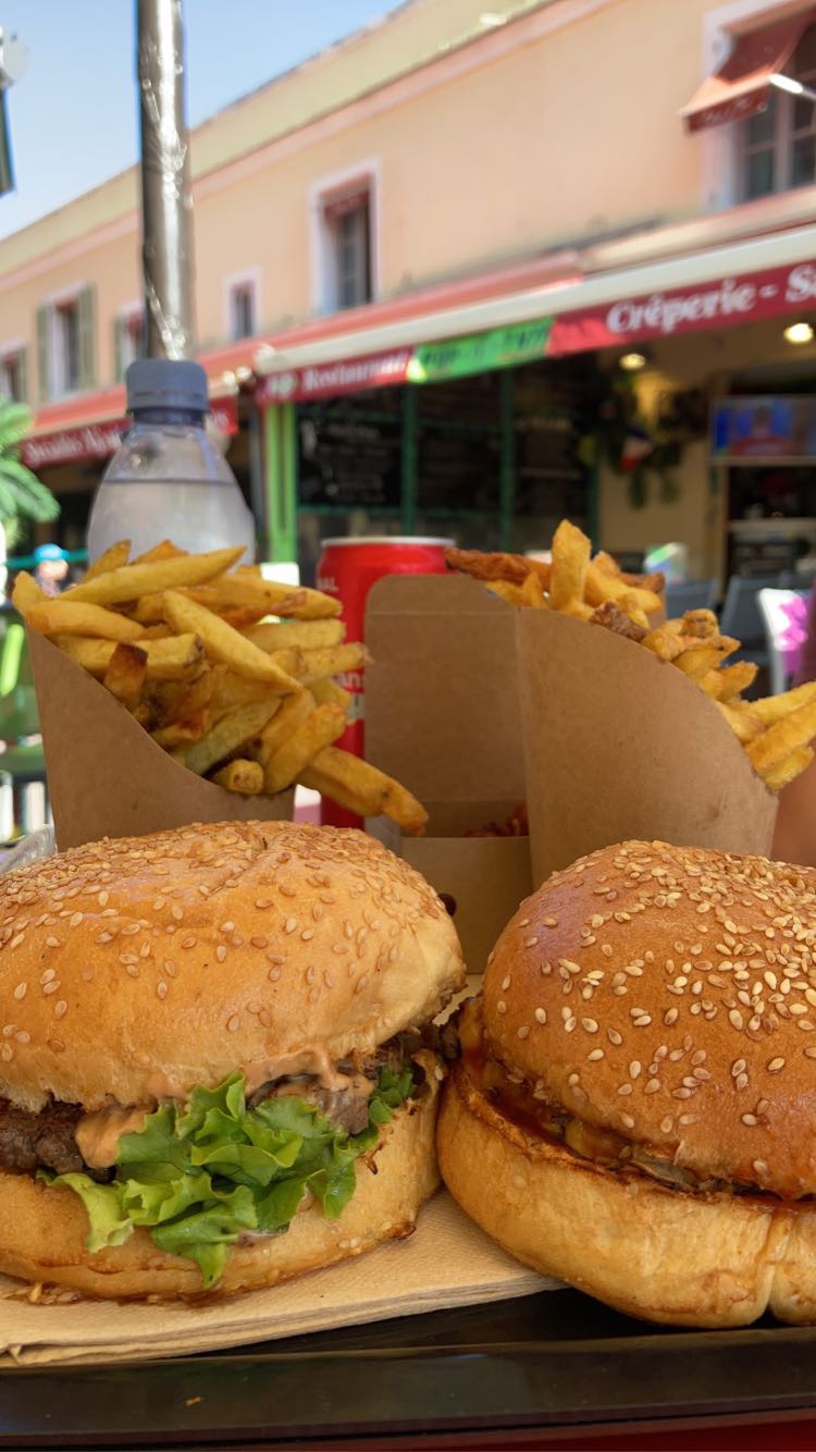 Burgers honnêtes, sans être inoubliables, très bonnes frites un peu trop salées hélas. Cadre sympa donnant sur le cours saleya. Service très bien.