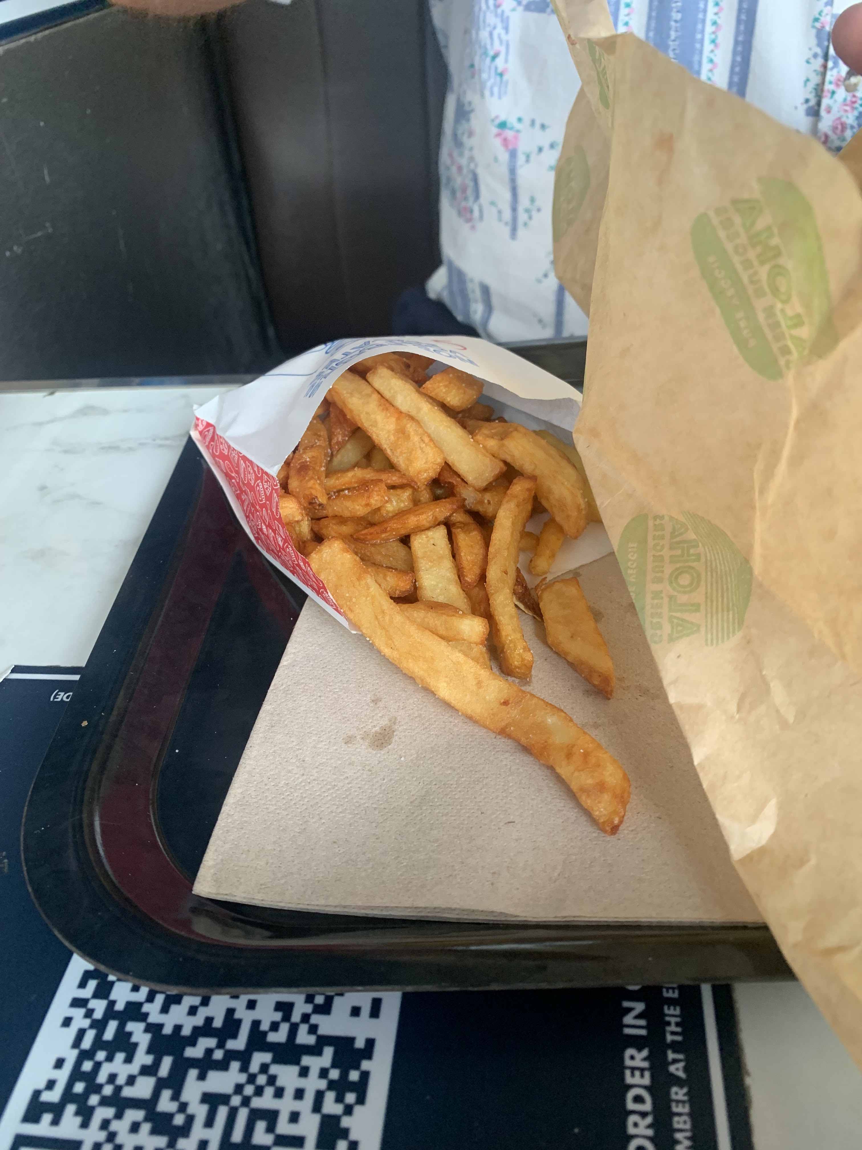 Je n'ai goûté que les frites et elles sont vraiment délicieuses.