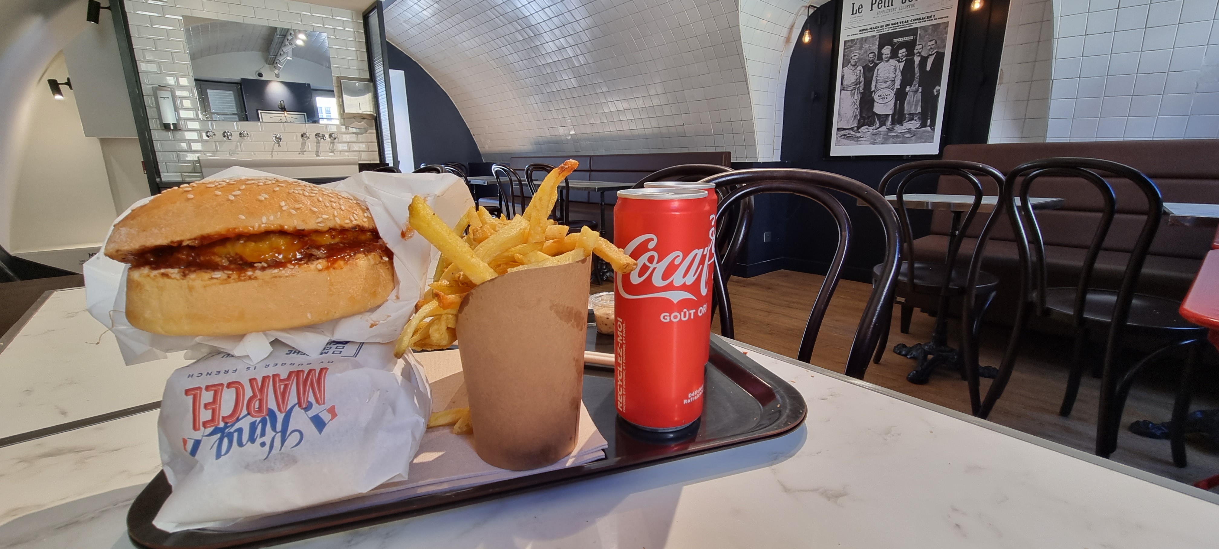 Nous sommes allés ce samedi en fin de service , un menu Marcel Jackson et King en commande , un burger frais et de qualité , avec ketchup et frites maison . Un serveur et cuisinier très sympa avec conseil et sourire compris dans le service ce qui est très agréable et appréciable , n hésitez pas pour y manger et passer un bon moment