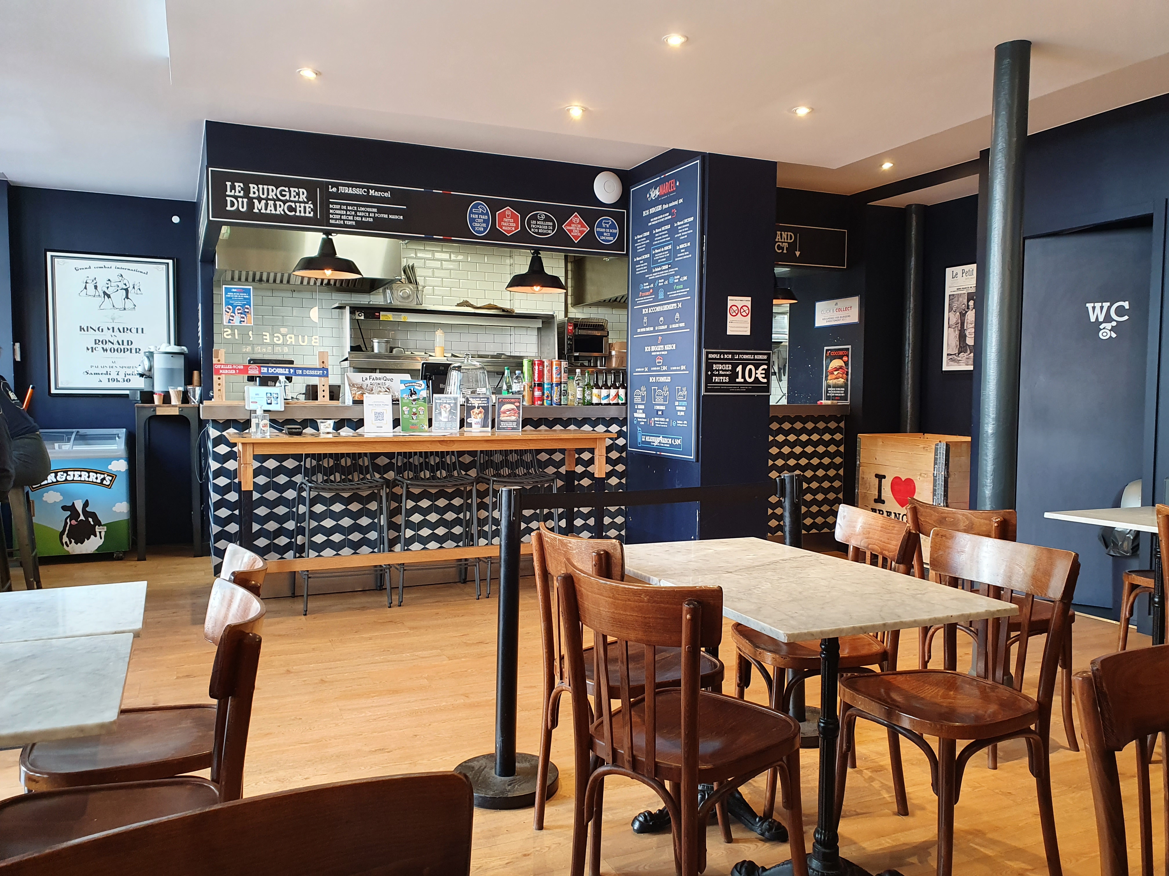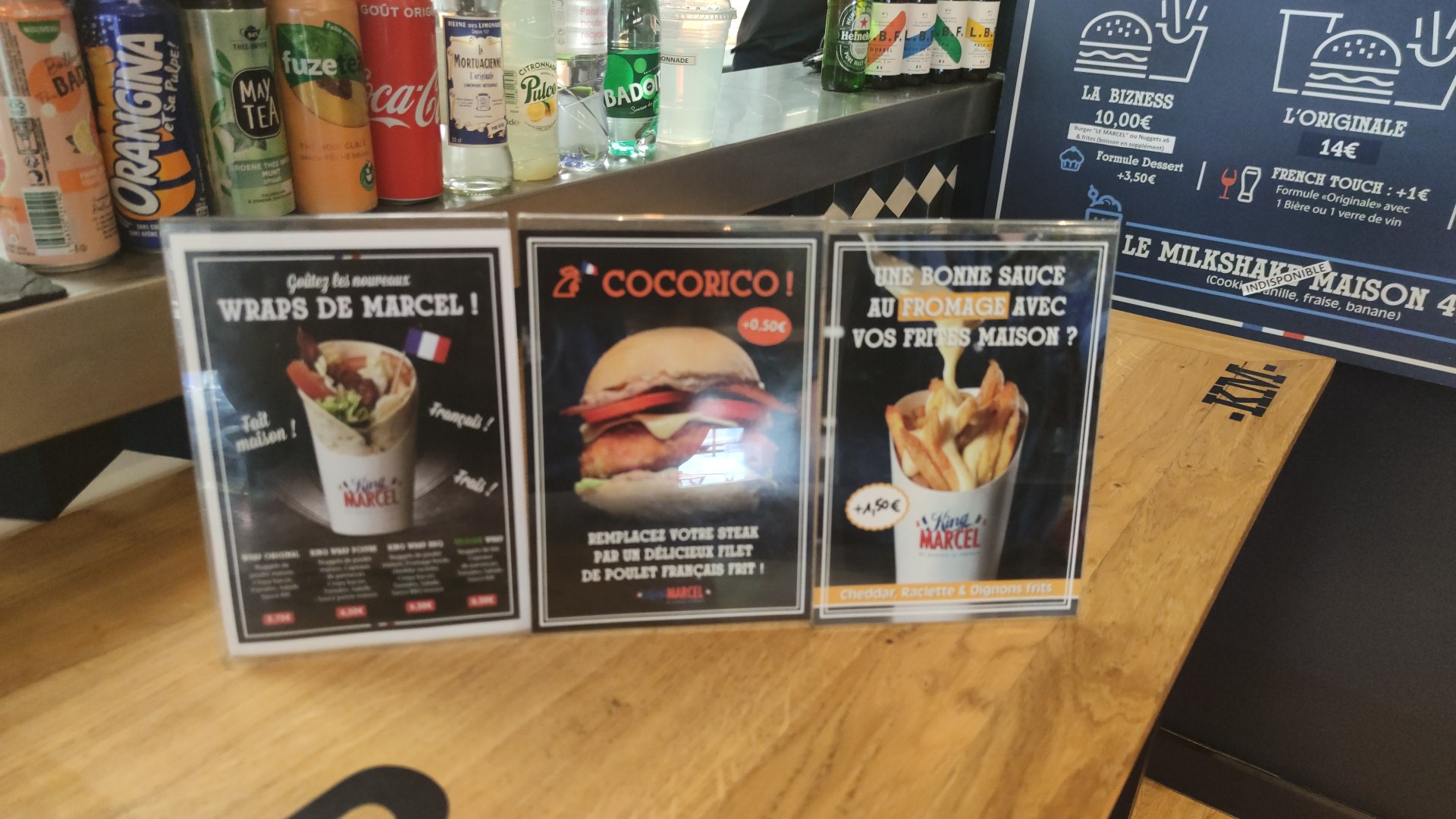 Mes enfants adorent venir au King Marcel plutôt qu'au McDonald's Les burgers sont faits sur place avec des produits de très bonne qualité. Les wraps sont excellents, les salades sont très bonnes . Un peu plus cher qu'un macdo mais pour une meilleure qualité je trouve. Toujours servis avec le sourire. Tables conviviales, terrasse satisfaisante