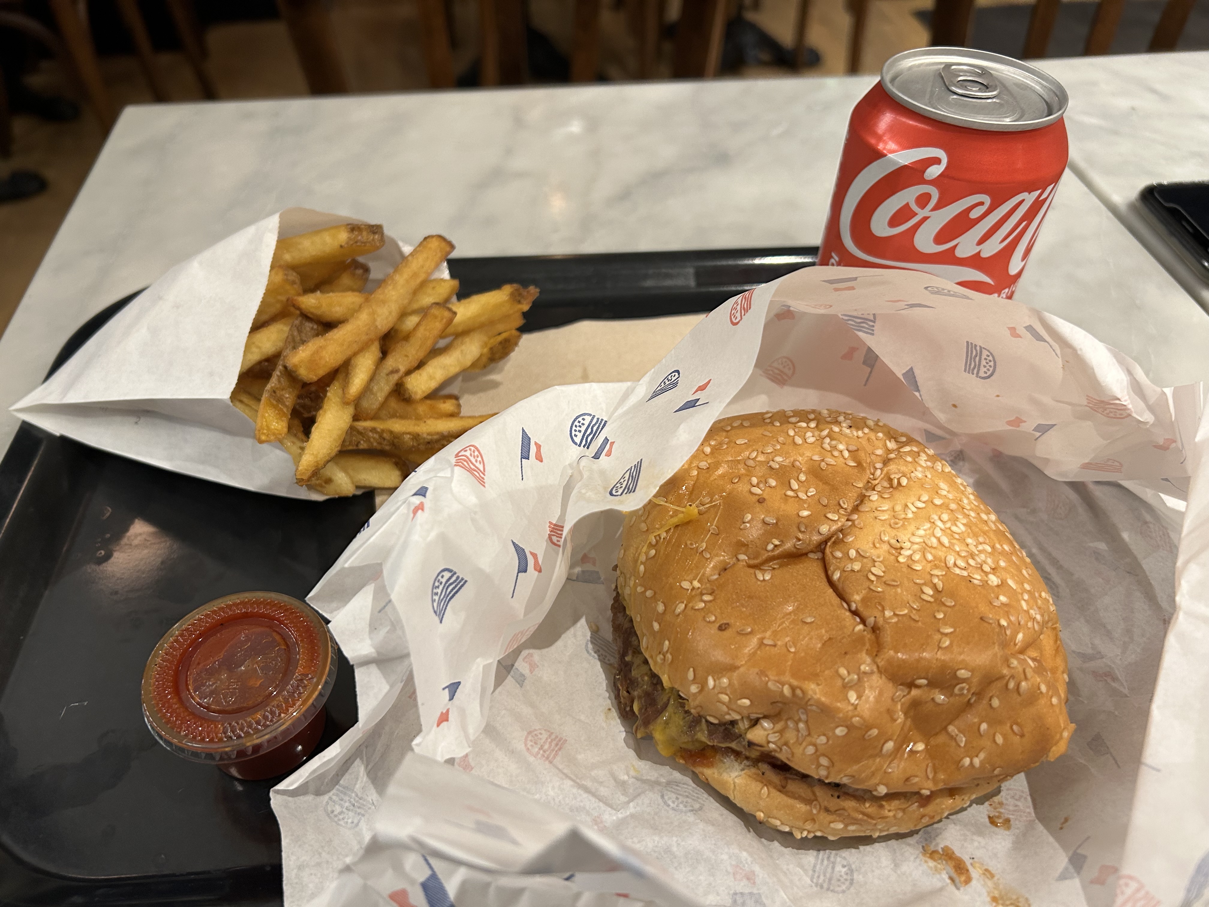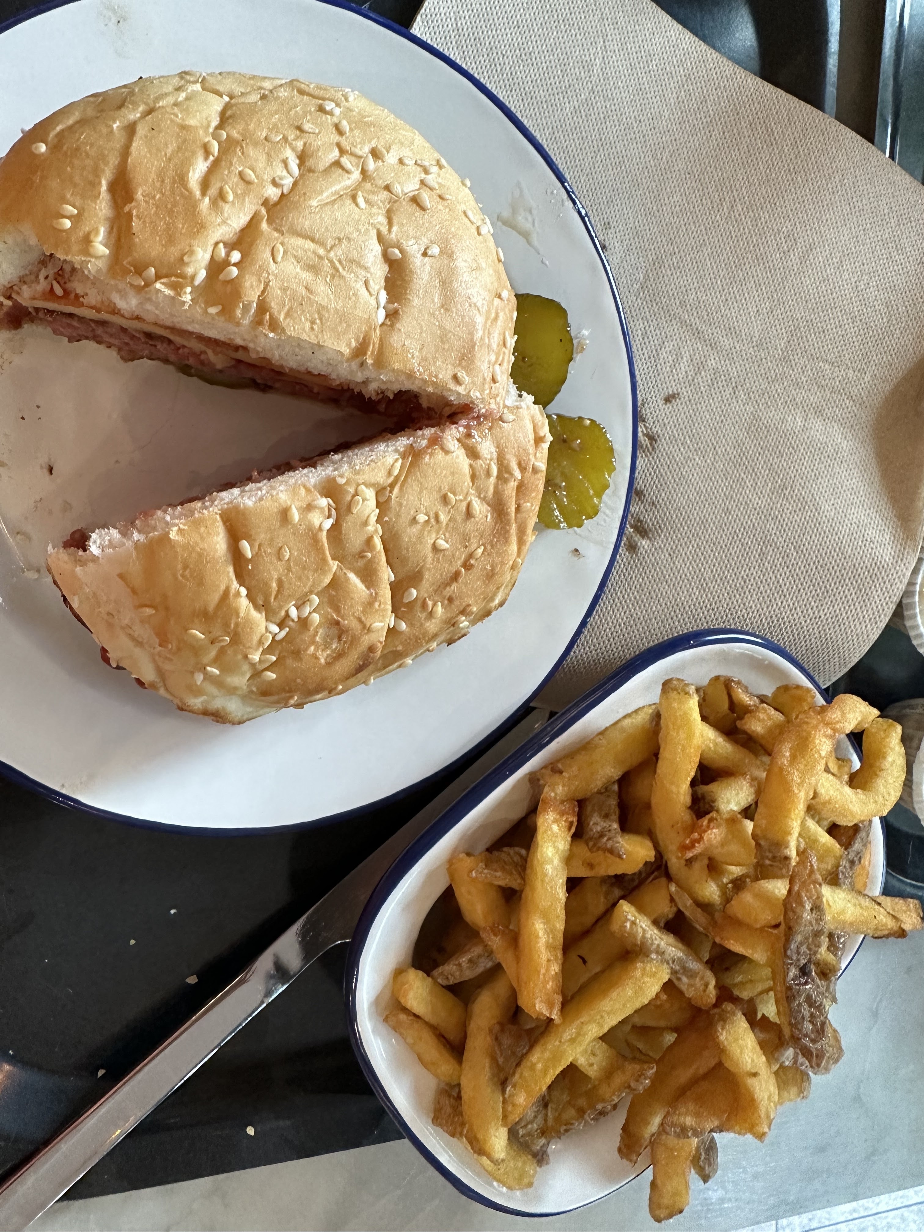 Burger très correct au bon fromage français! En tant que gros mangeur, j'ai trouvé que ça manquait de quantité mais la qualité était au rdv !