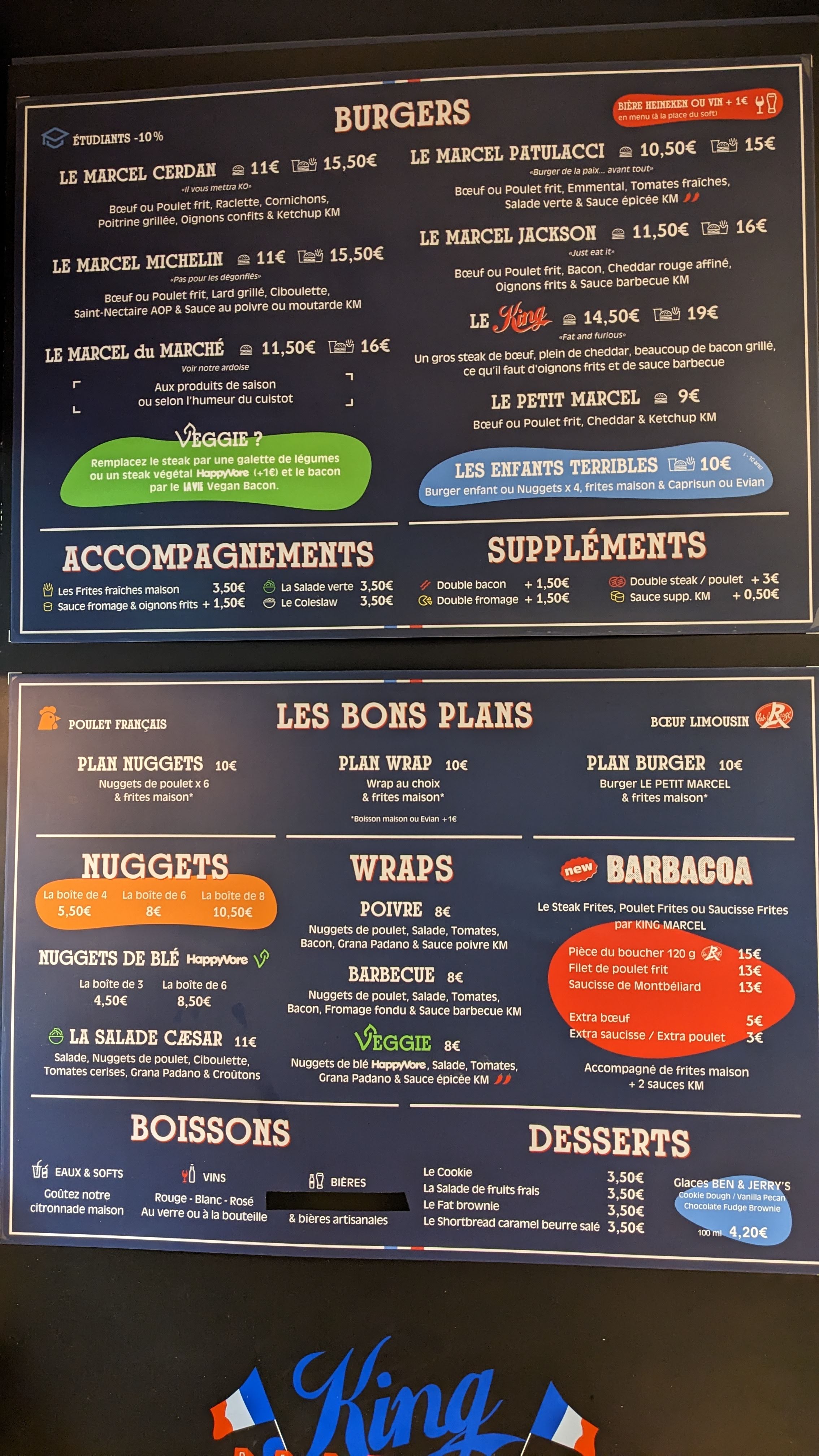 Bonjour Tomy, au top votre commentaire, merci ! Nous sommes ravis que nos burgers frais, français et faits maison vous aient plu. A bientôt chez King Marcel. Marcel 🇫🇷