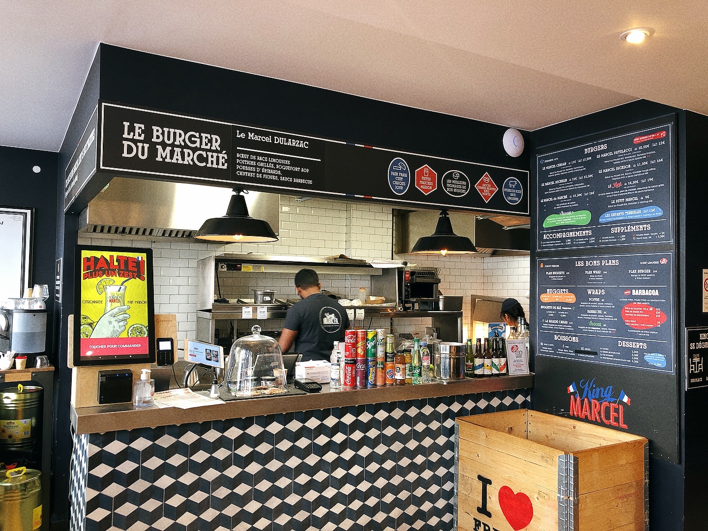 King Marcel est un restaurant de très bons Burgers 🍔 Les commandes se font sur une borne, sur laquelle on peut personnaliser et choisir la cuisson des steaks 🥩 Ensuite, le plateau est livré à table, prêt à déguster 😋