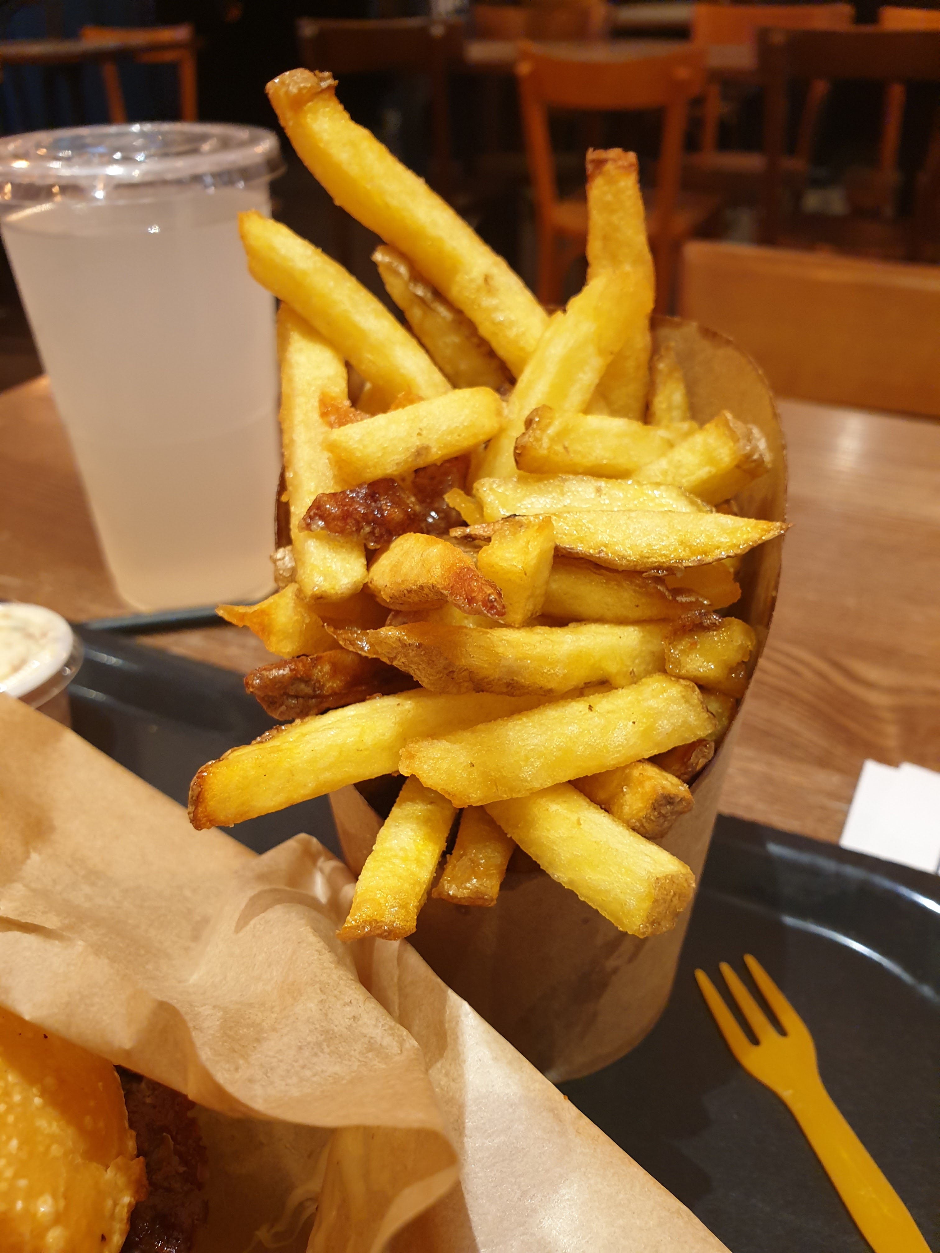 Dans l ensemble c est mi bon mi décevant. Point positif : service rapide, la décoration est agréable, c est propre, le burger tient bien (la sauce, la viande ne part en vrille), possibilité d avoir une salade (de qualité moyenne) au lieu de frites Point négatif : le service n est pas sympathique à la limite du désagréable, le burger est moyen avec une sauce trop sucrée pas assez de bacon et une viande un peu petite pour le prix. Le format grande frite ne porte pas bien son titre... Si vous avez vraiment faim, pourquoi pas mais il y a mieux en matière de burger, je reste déçu