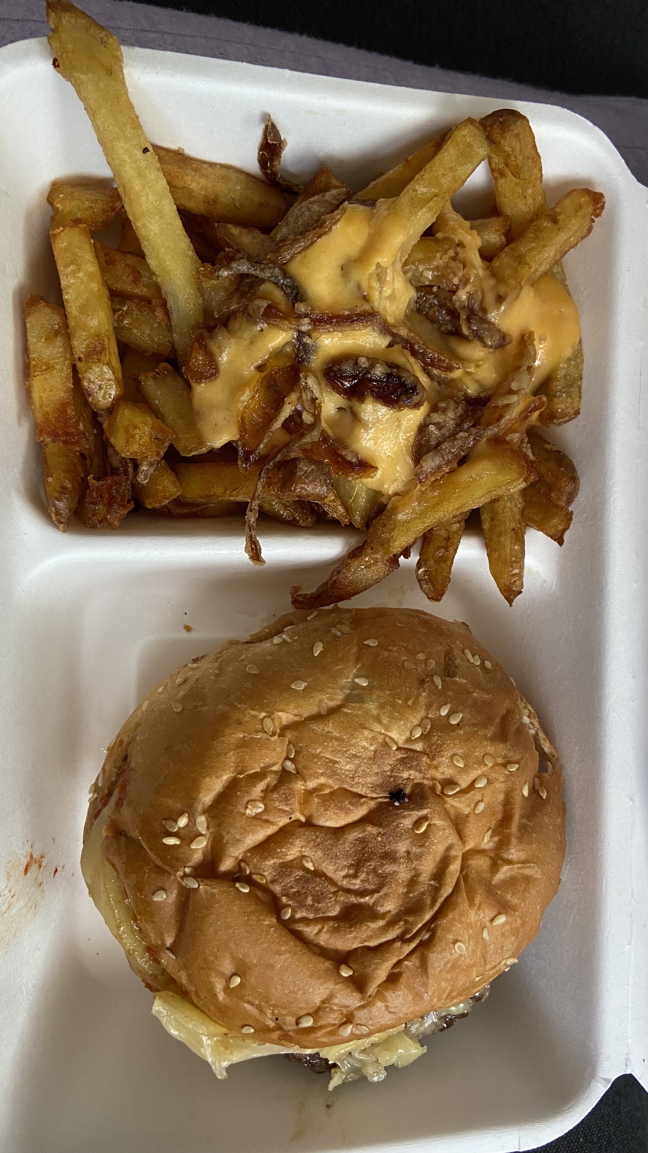 La quantité est encore petite et ça ne paye pas de mine comme ça mais c'était délicieux je me suis régalée ! juste il n'y a pas de raclette dans les frites comme décrit sur ubereats mais je recommanderais sans problème et le cheddar utilisé pour les frites est de qualité il est excellent tout comme le burger délicieux à la raclette