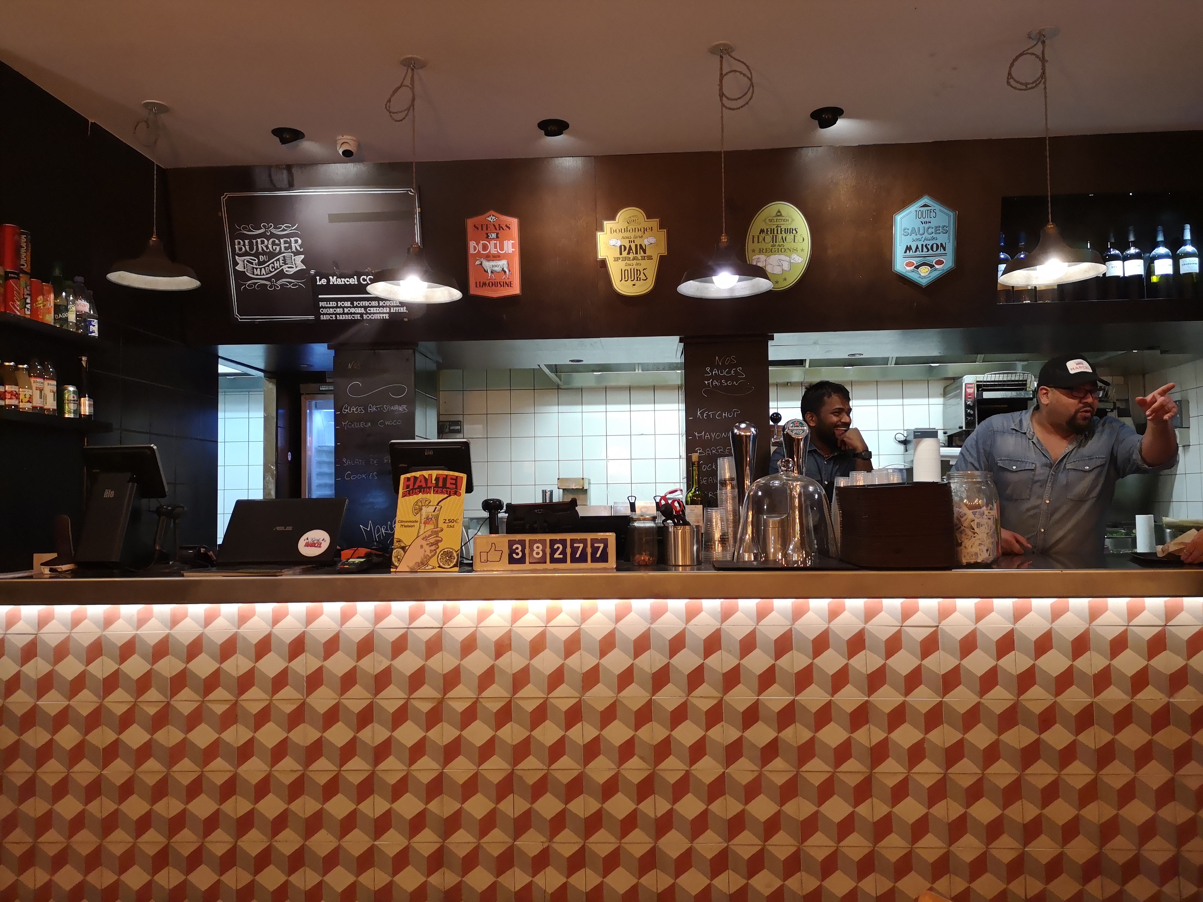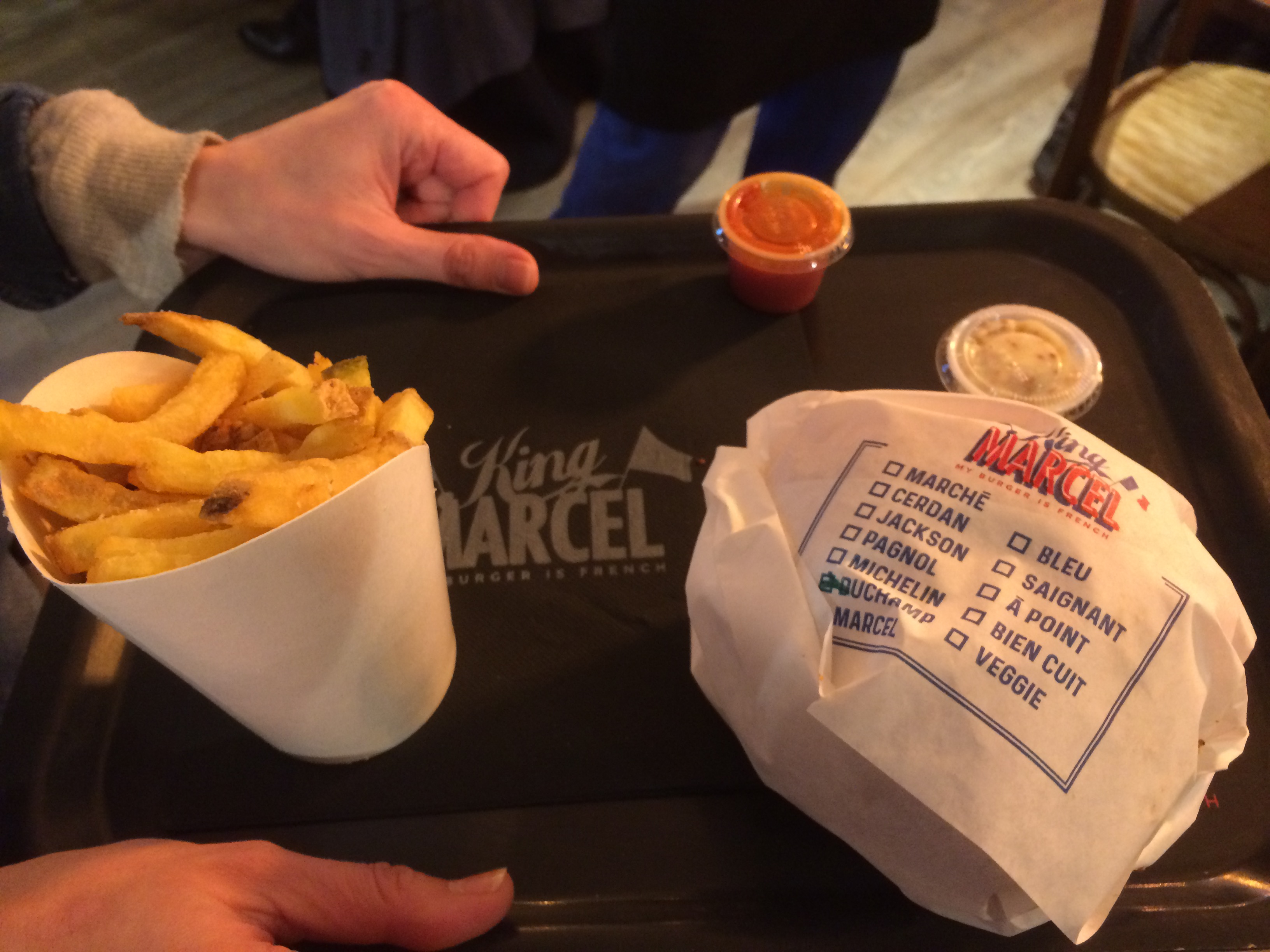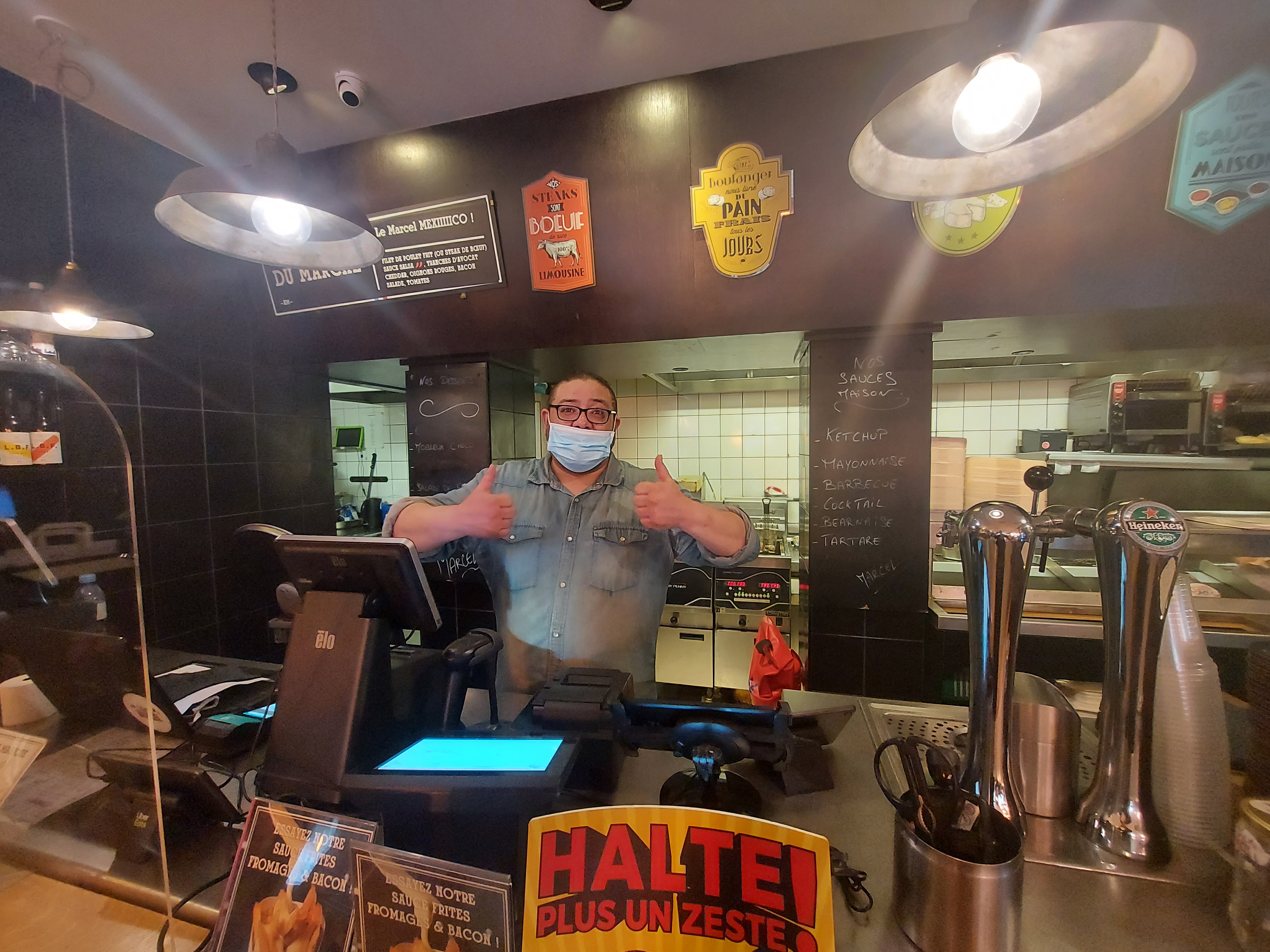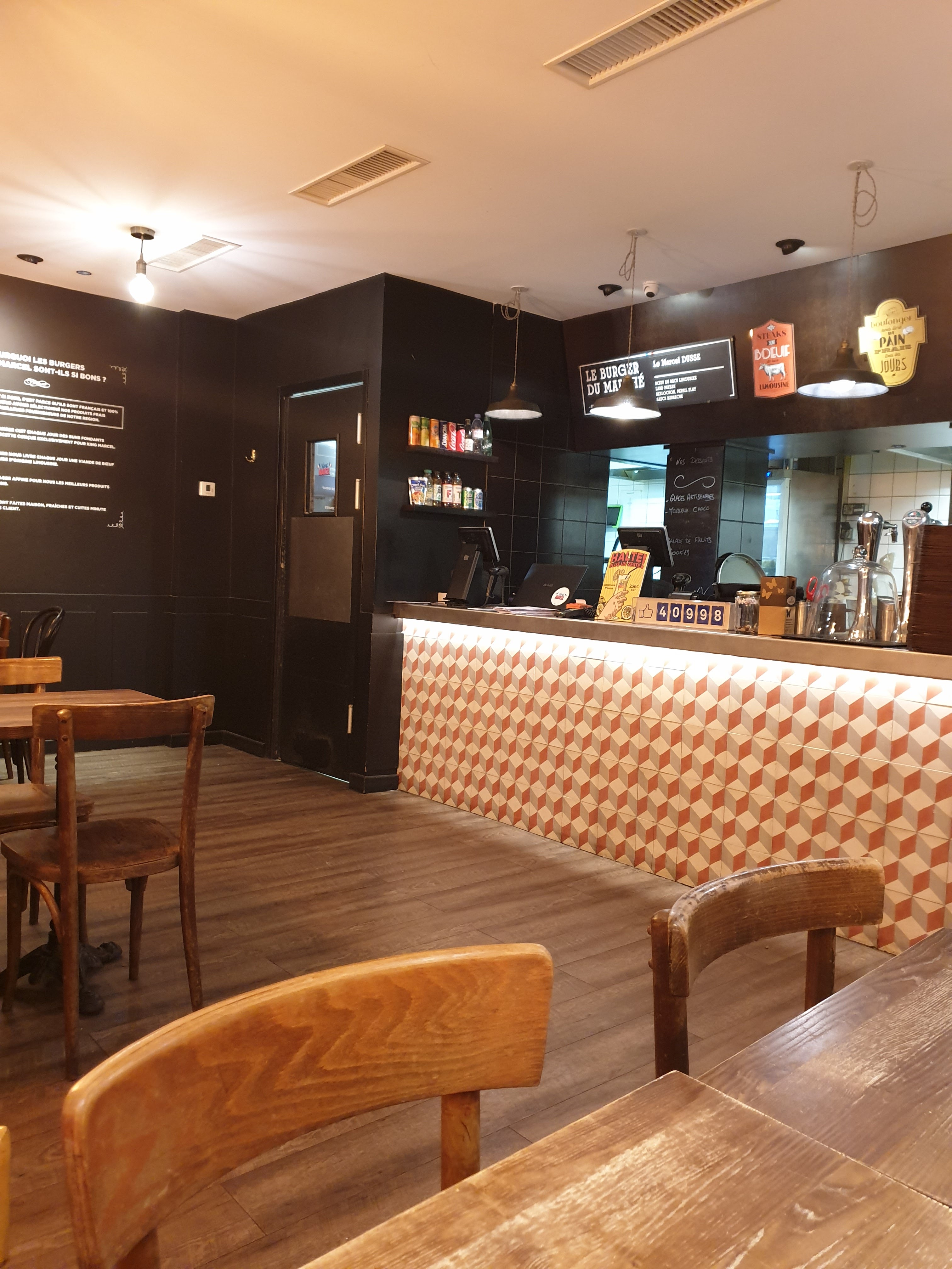 Le cher monsieur qui prend votre commande est un homme extraordinairement sympa : je reviendrai chez King Marcel rien que pour le voir! D'ailleurs, les burgers sont réellement excellents. Petite mention spéciale au Marcel qui en plus d'être très bon, n'est vraiment pas cher.