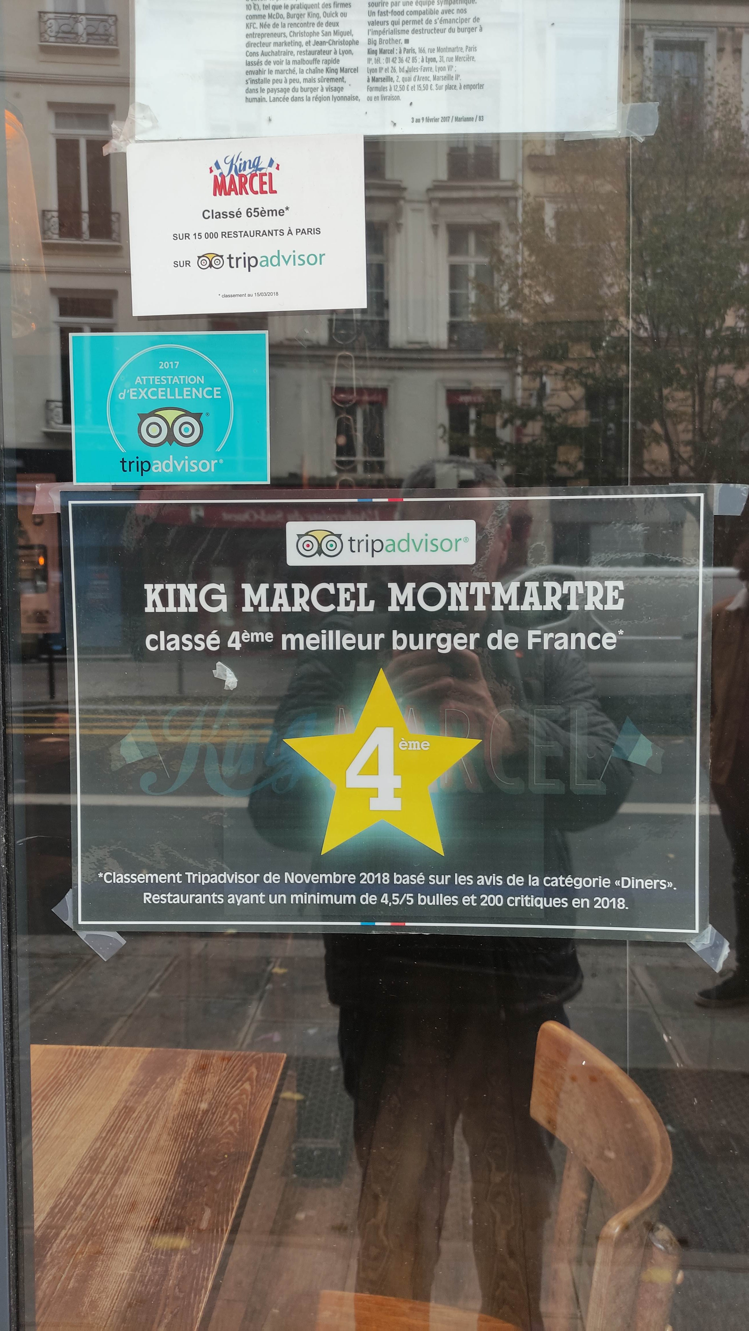 Cher BM, Un grand merci pour votre avis 4*. Nous sommes ravis que vous ayez aimé nos burgers 100% français et la qualité de nos produits ainsi que notre accueil chaleureux À bientôt chez King Marcel Montmartre! Marcel