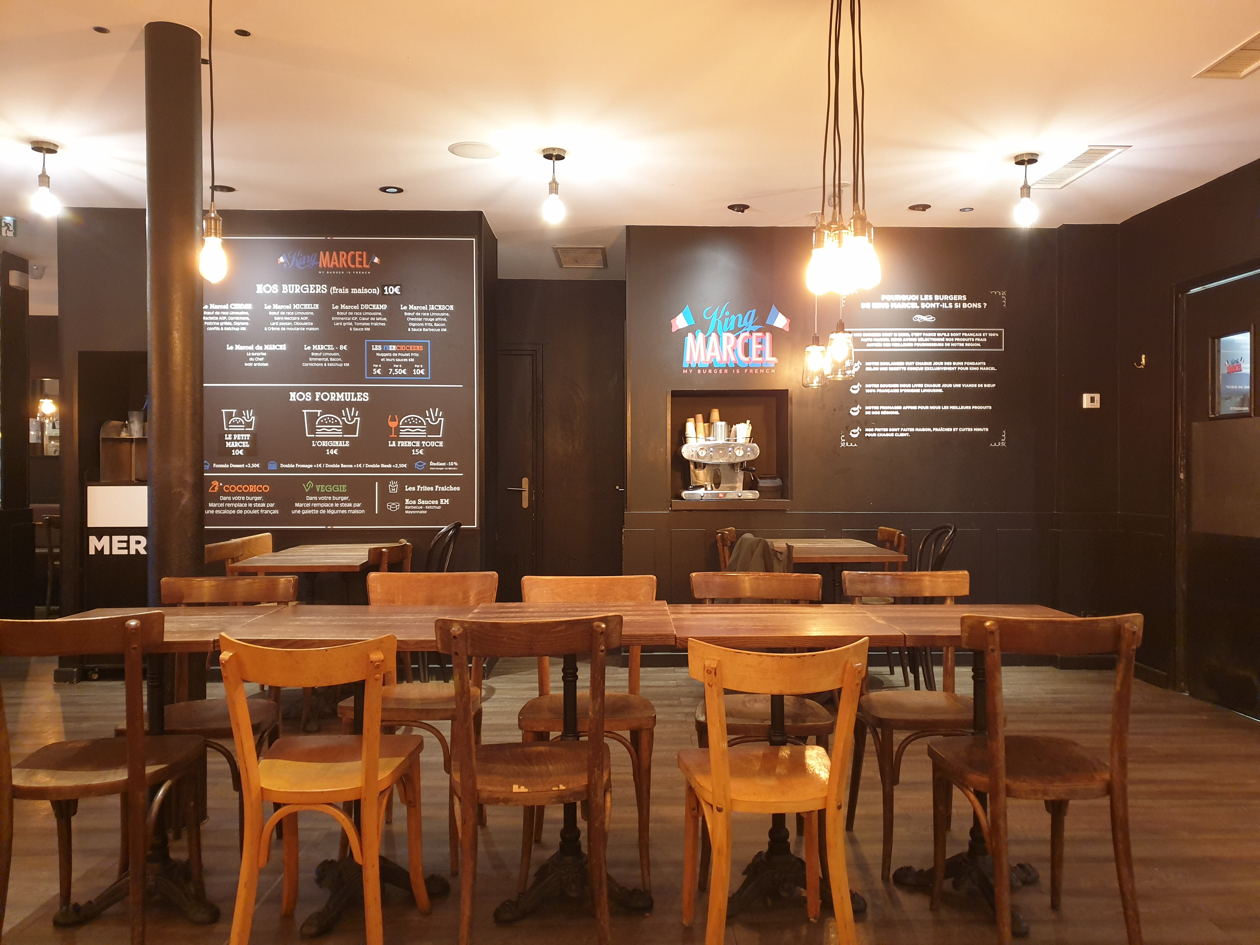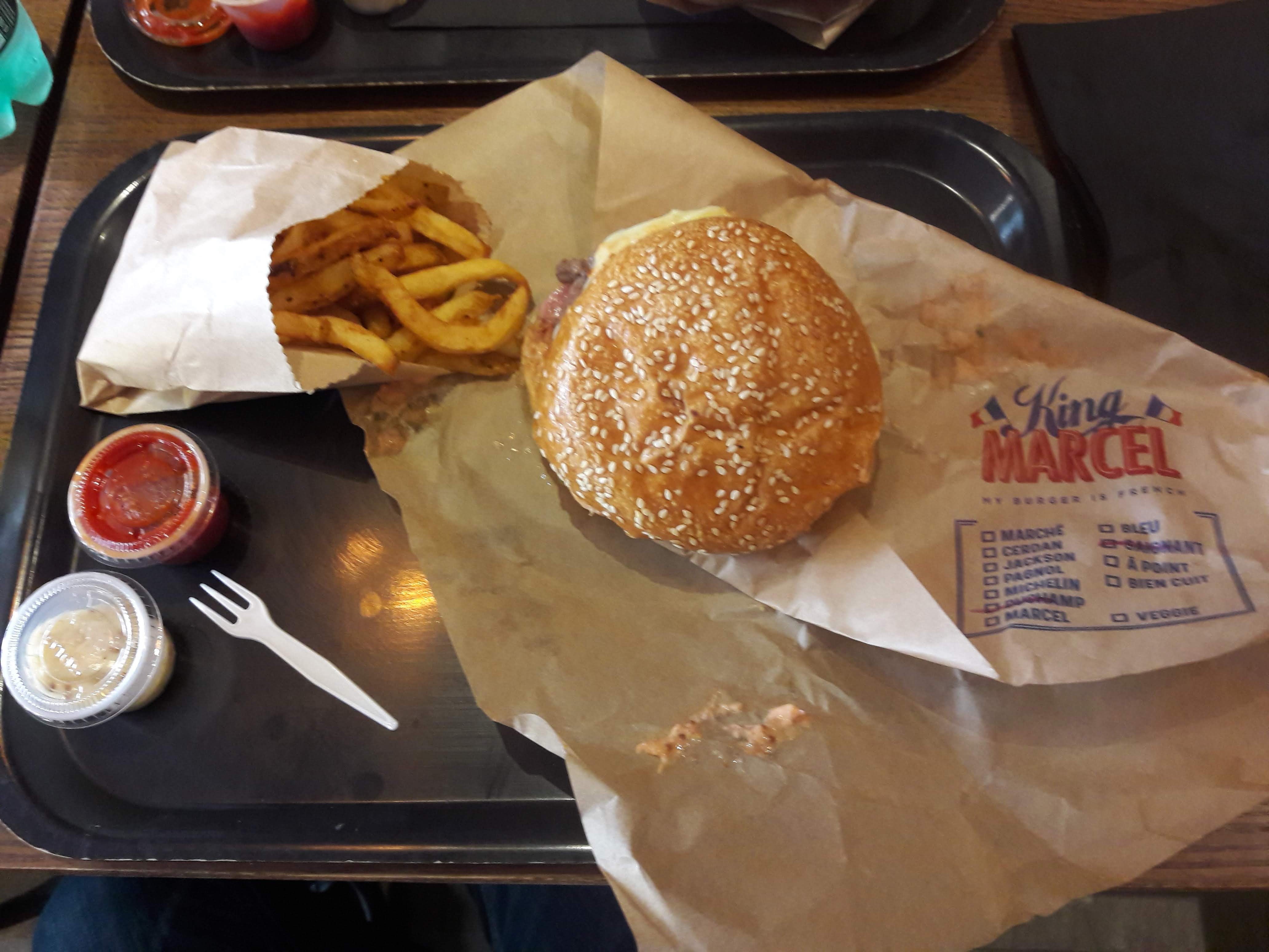 L'enseigne King Marcel propose d'excellent burgers. De plus, l'accueil est sympathique. Un de mes amis et moi avions pris un Marcel Marcel et un Cerdan. J'ai demandé un steak saignant et la cuisson était bien respecter. La qualité des ingrédients était au rendez vous. Les frites était excellente et très bon point pour les sauces. En effet, c'est rare de trouver dans un fast food des sauces fait maison. Enfin le prix est raisonnable au vue de la qualité. Compté 10 euro pour le menu Marcel Marcel et 11,50 euro pour les autres burgers. En résumé, foncez manger les burgers de King Marcel 😀